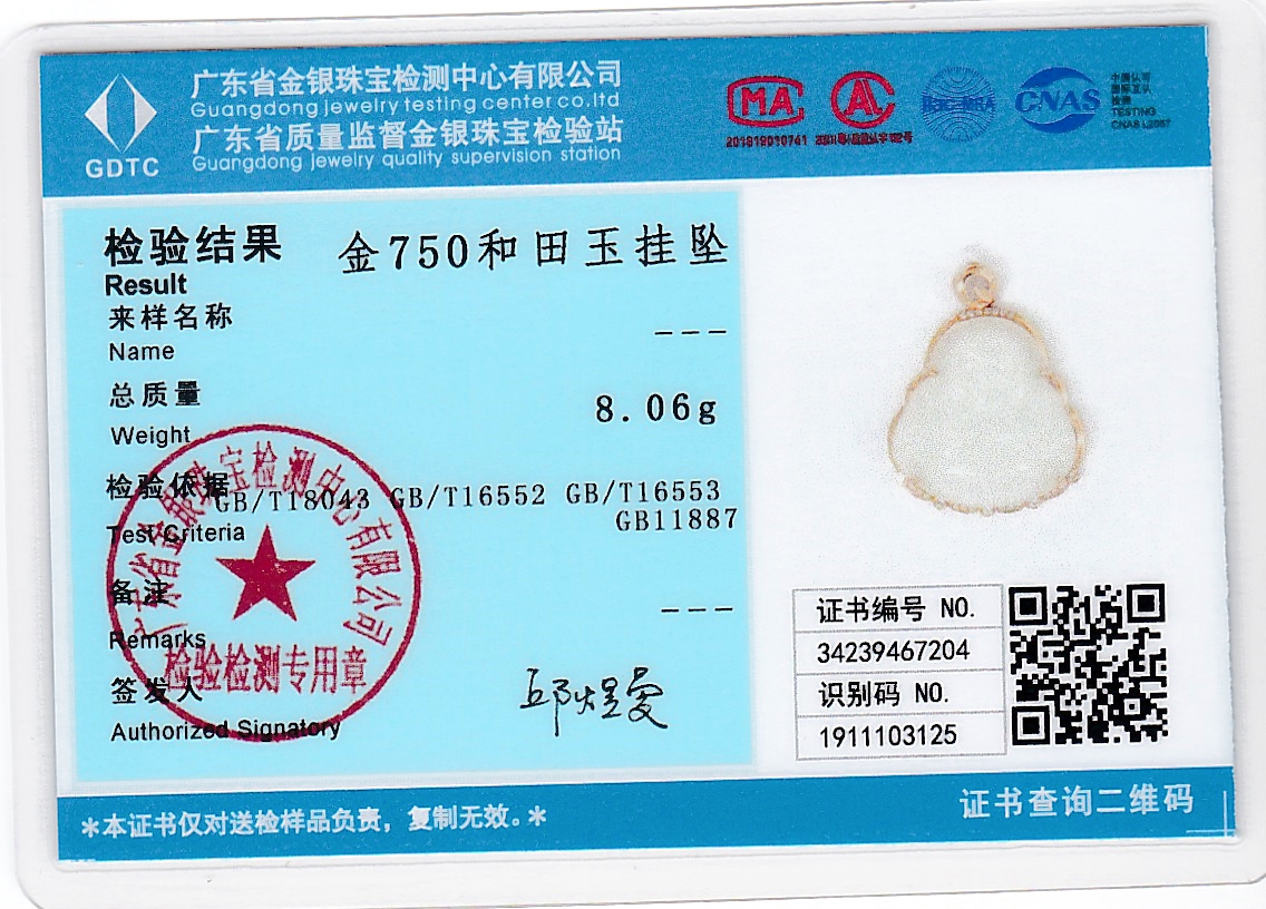 18k玫瑰金和田玉(白玉)镶钻吊坠