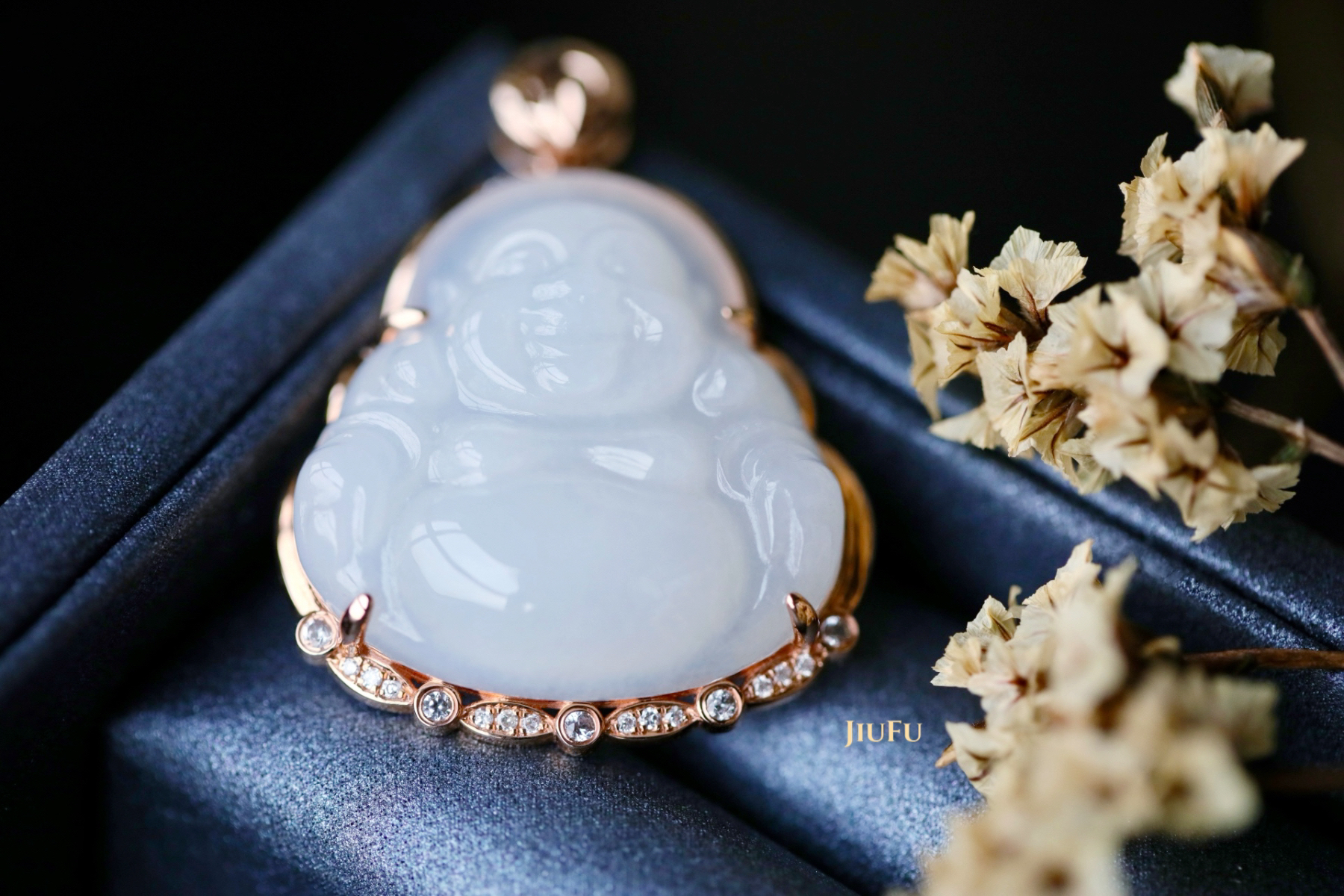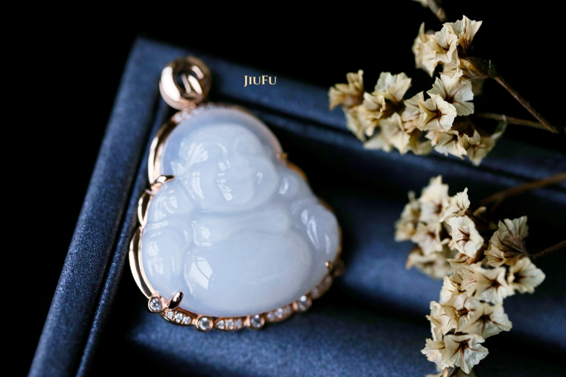 玉石尺寸:佛公25*26mm 配镶:钻石、白蓝宝