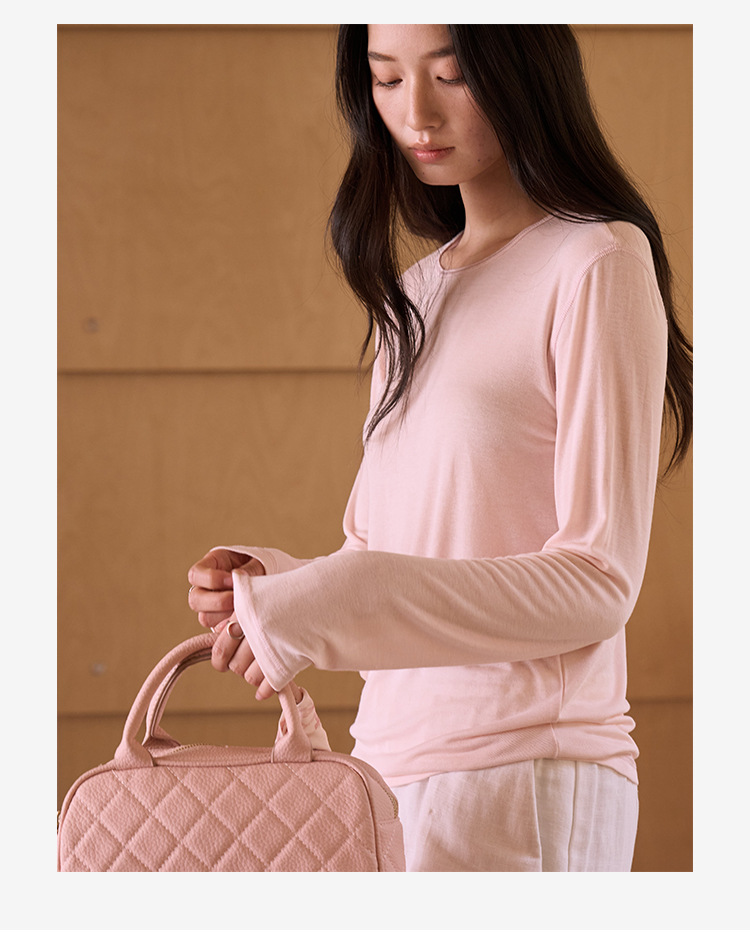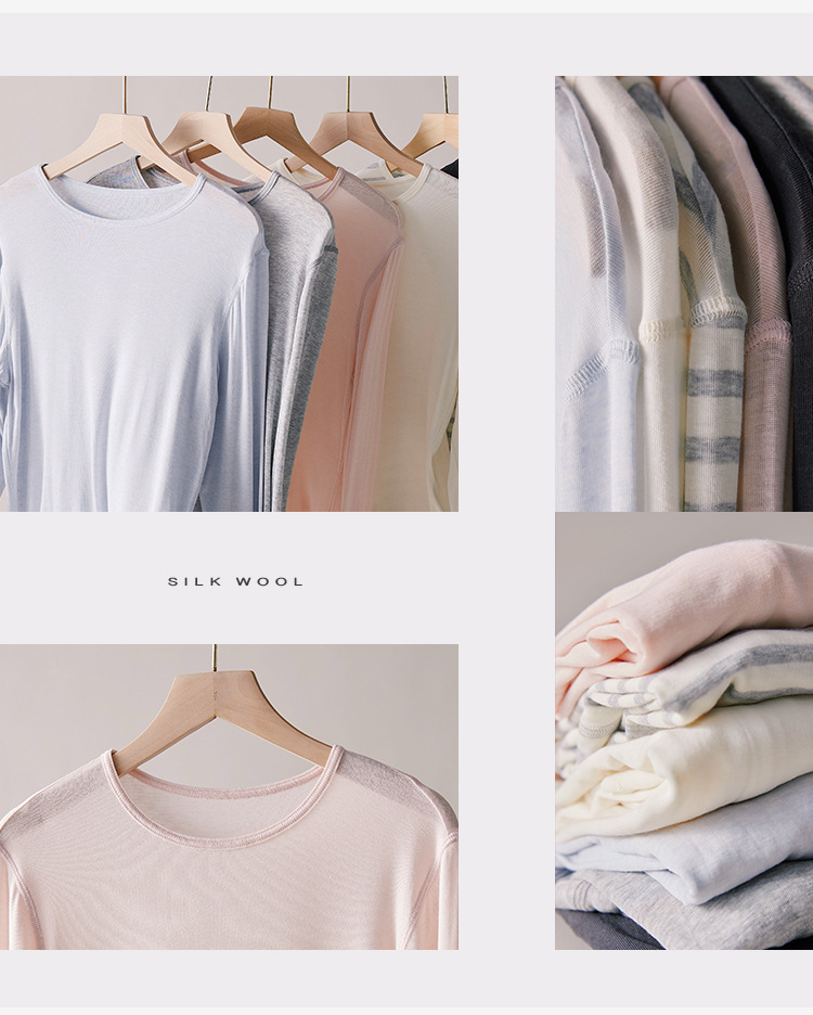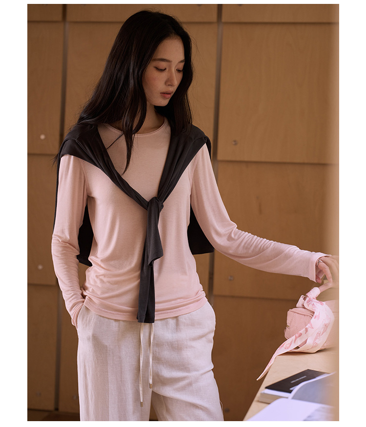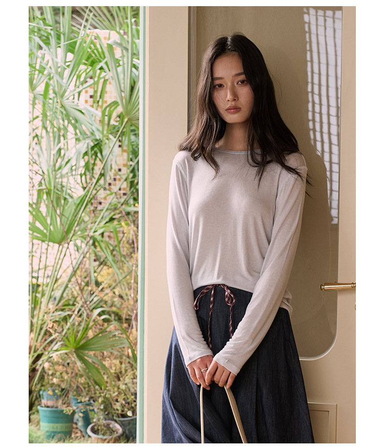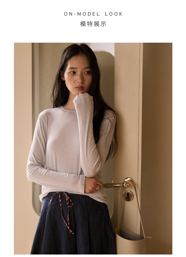 【2026春季新品】蚕丝羊毛・韩系经典打底衫 天丝莫代尔 桑蚕丝羊毛 简约圆领上衣轻薄微透罩衫长袖T恤