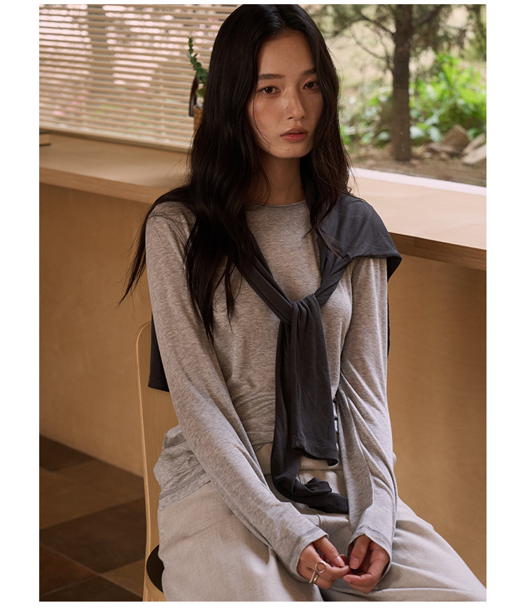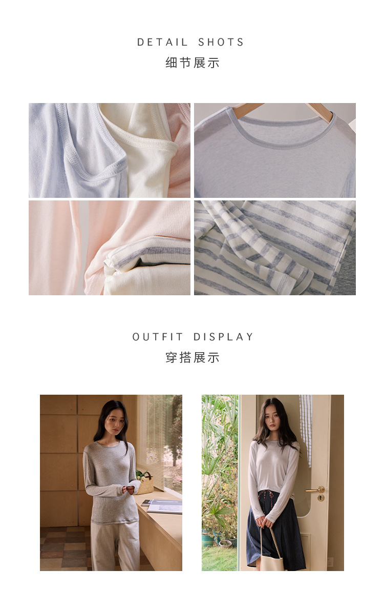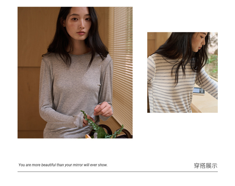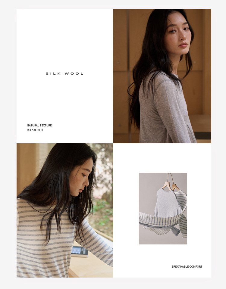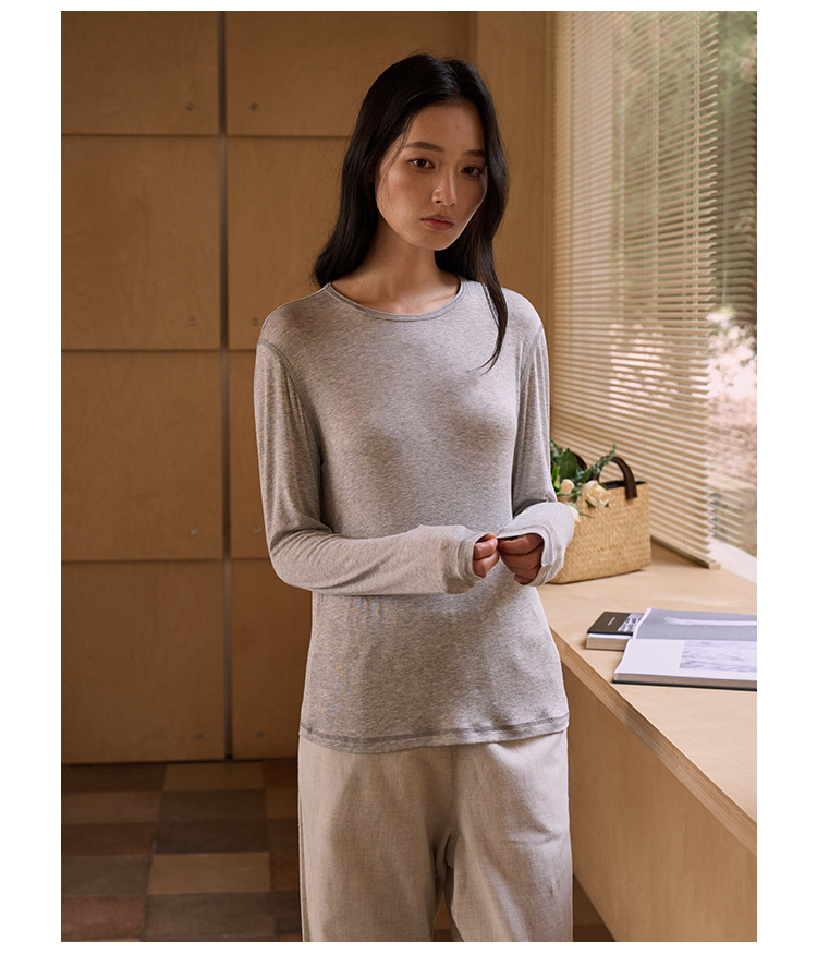 【2026春季新品】蚕丝羊毛・韩系经典打底衫 天丝莫代尔 桑蚕丝羊毛 简约圆领上衣轻薄微透罩衫长袖T恤