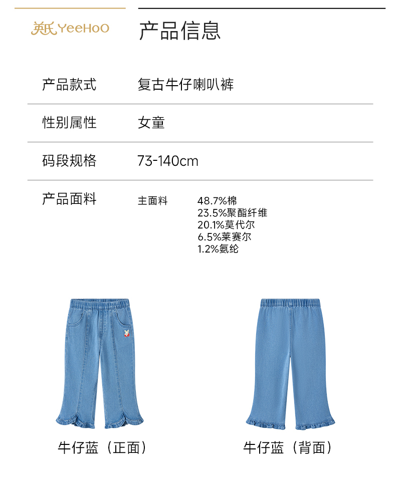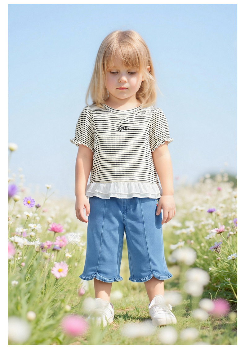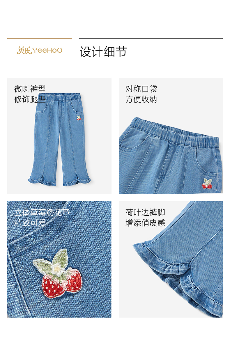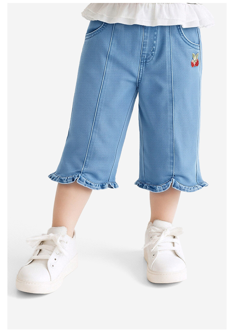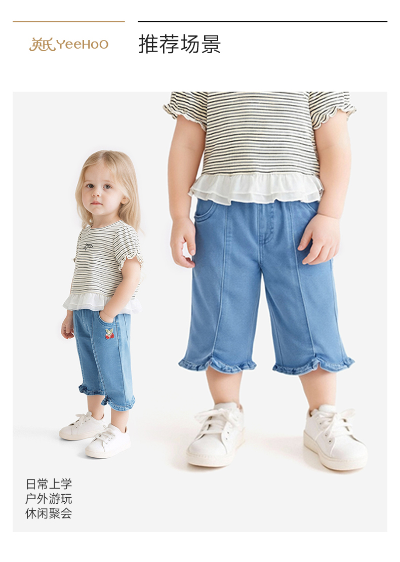 【商场同款】英氏女童中裤夏新款休闲五分裤牛仔蓝薄款裤子