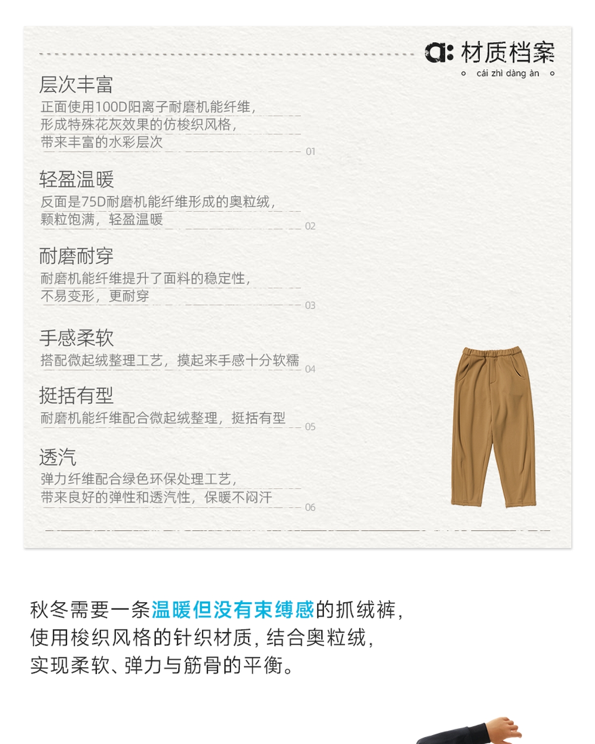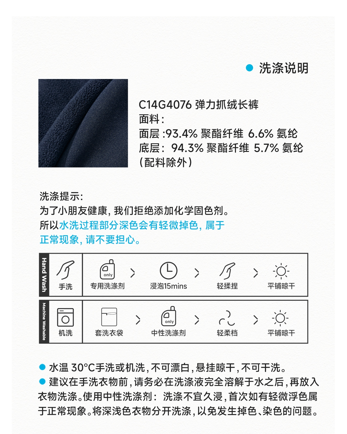 幼岚【弹力抓绒长裤】儿童机能长裤A类25秋新款亲肤保暖