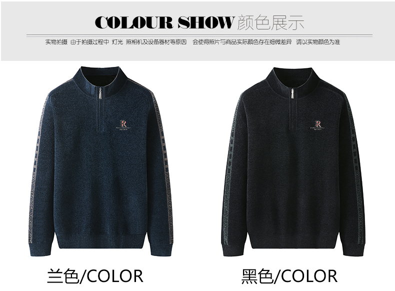【雪尼尔】【新款DWP】大依优型大码加绒雪尼尔针织衫毛衫立领长袖T恤男装加肥加大体恤大号上衣胖子打底