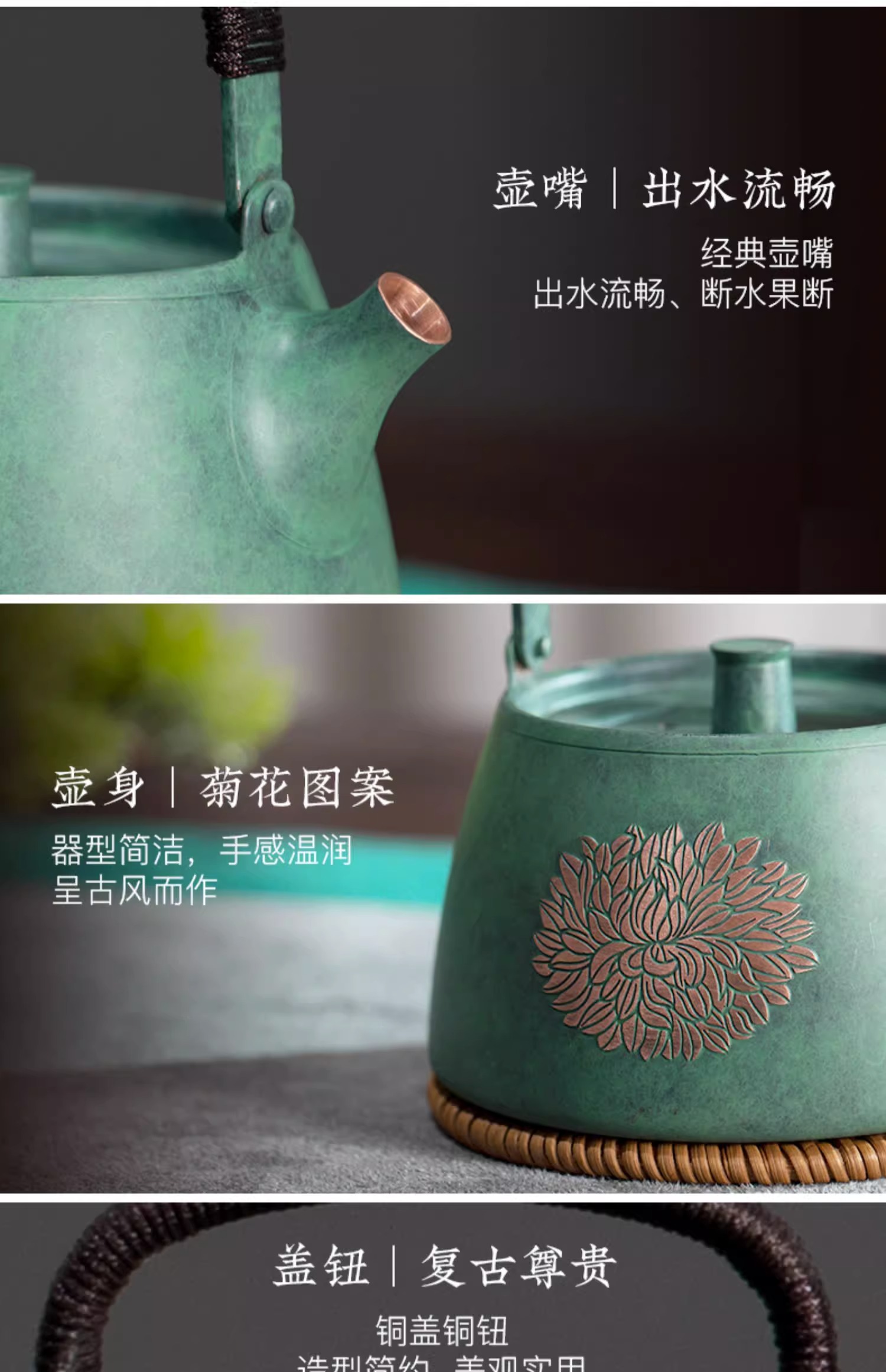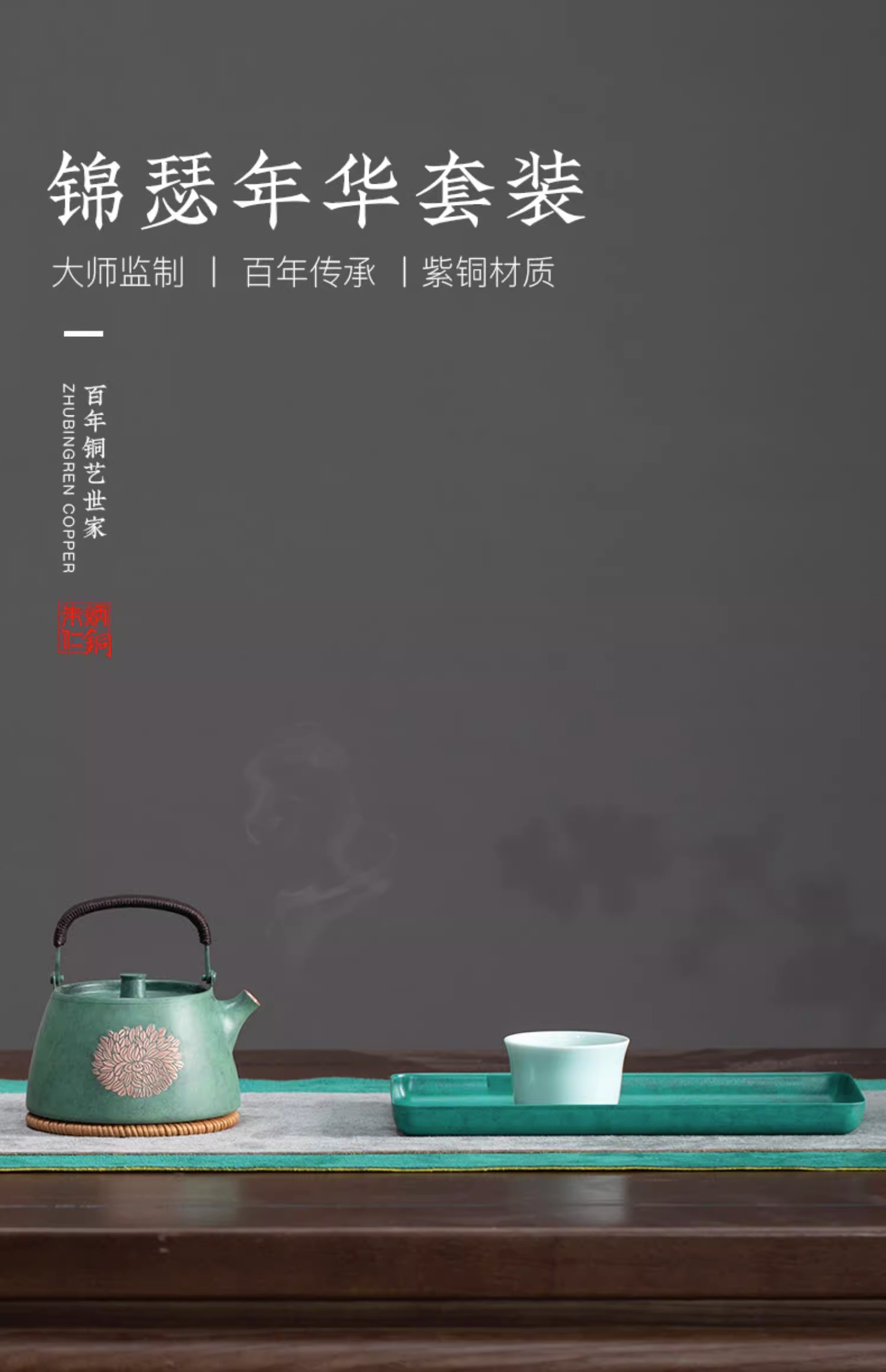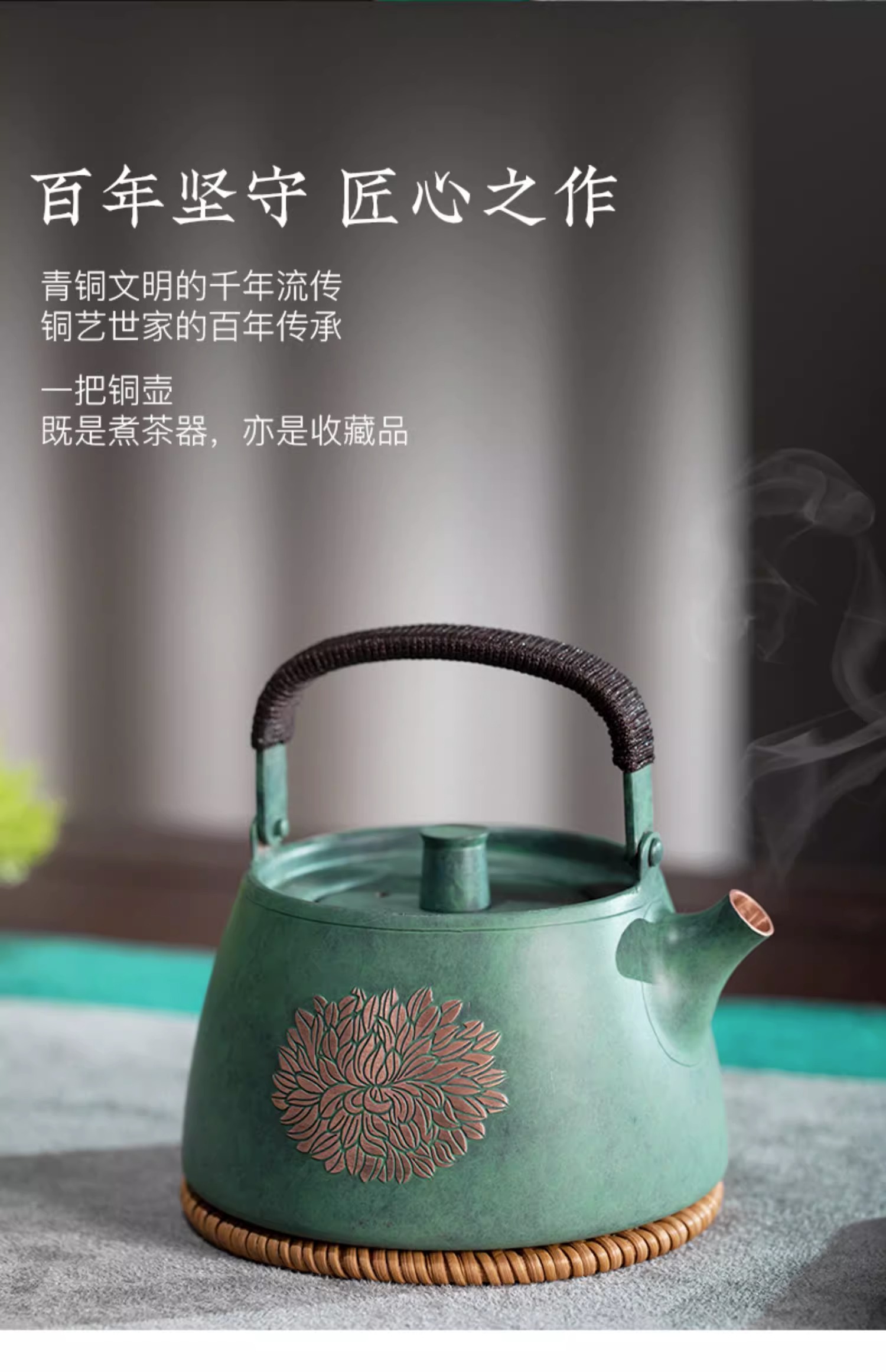 朱炳仁铜 泡茶烧水壶养身小茶壶便携单壶锦瑟年华套装小菊花