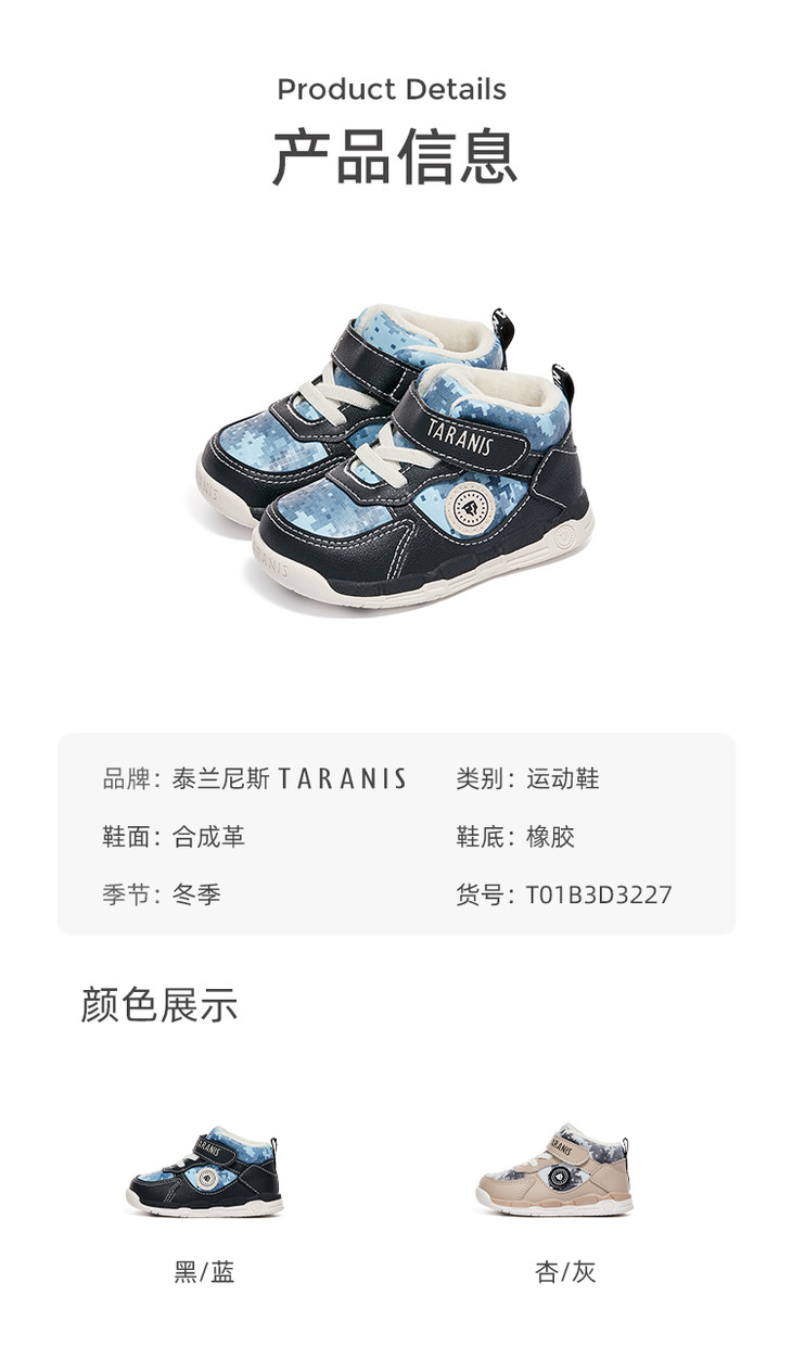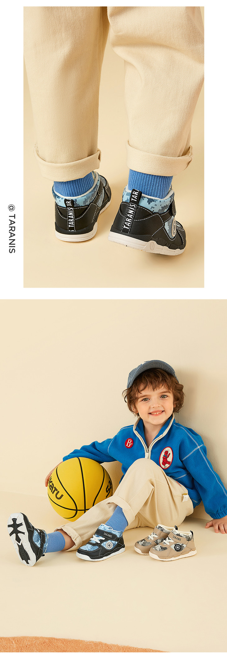 【泰兰尼斯】冬款婴童段加绒加厚高帮学步鞋T01B3D3227