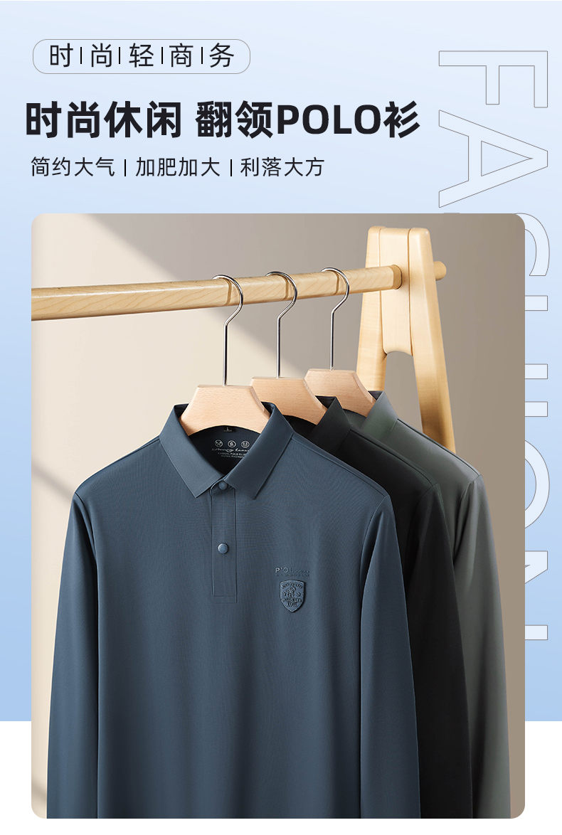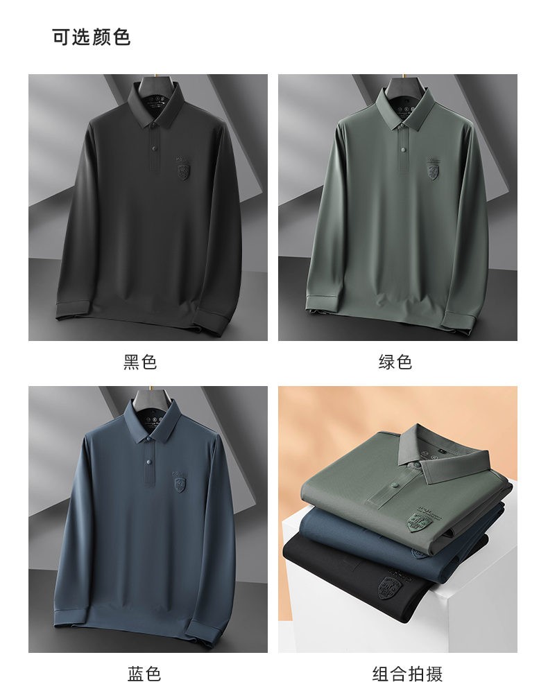 【新款DDP】大依优型大码弹力长袖Polo衫翻领男装加肥加大体恤大号上衣胖子弹力休闲商务
