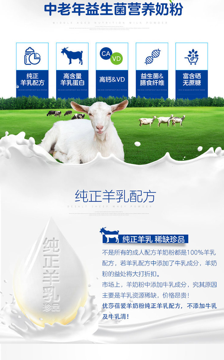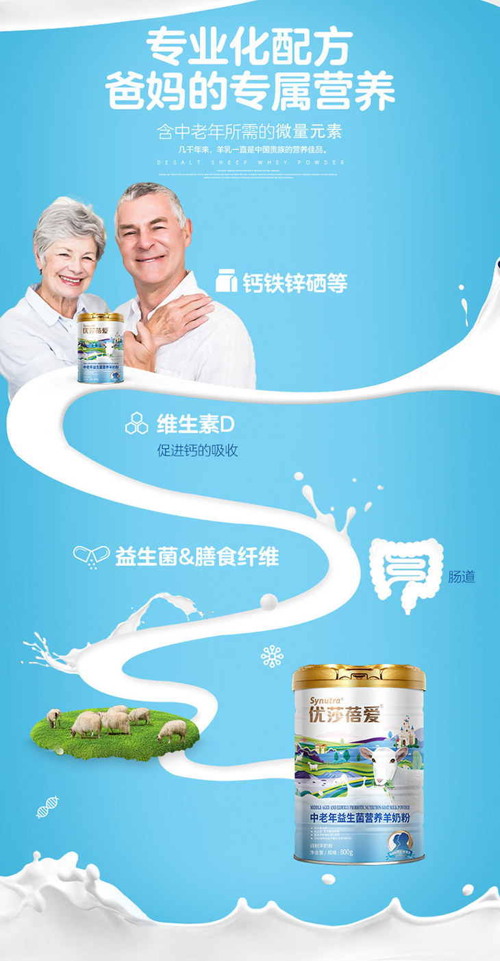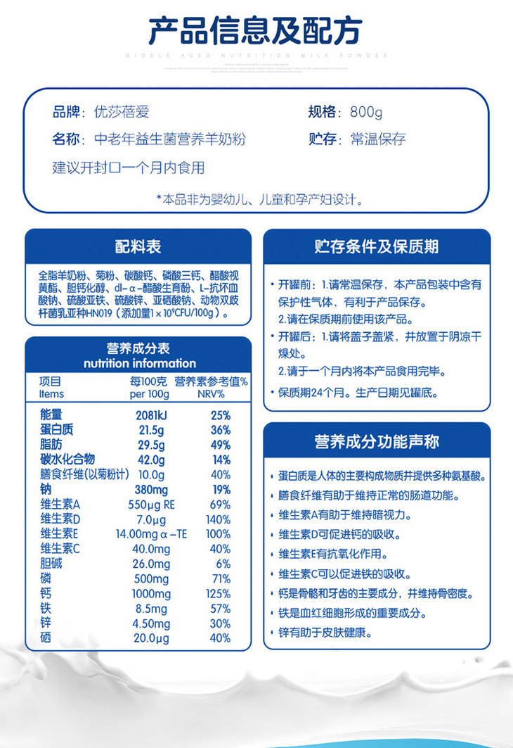 优莎蓓爱中老年益生菌营养羊奶粉800g听【25年11月产】