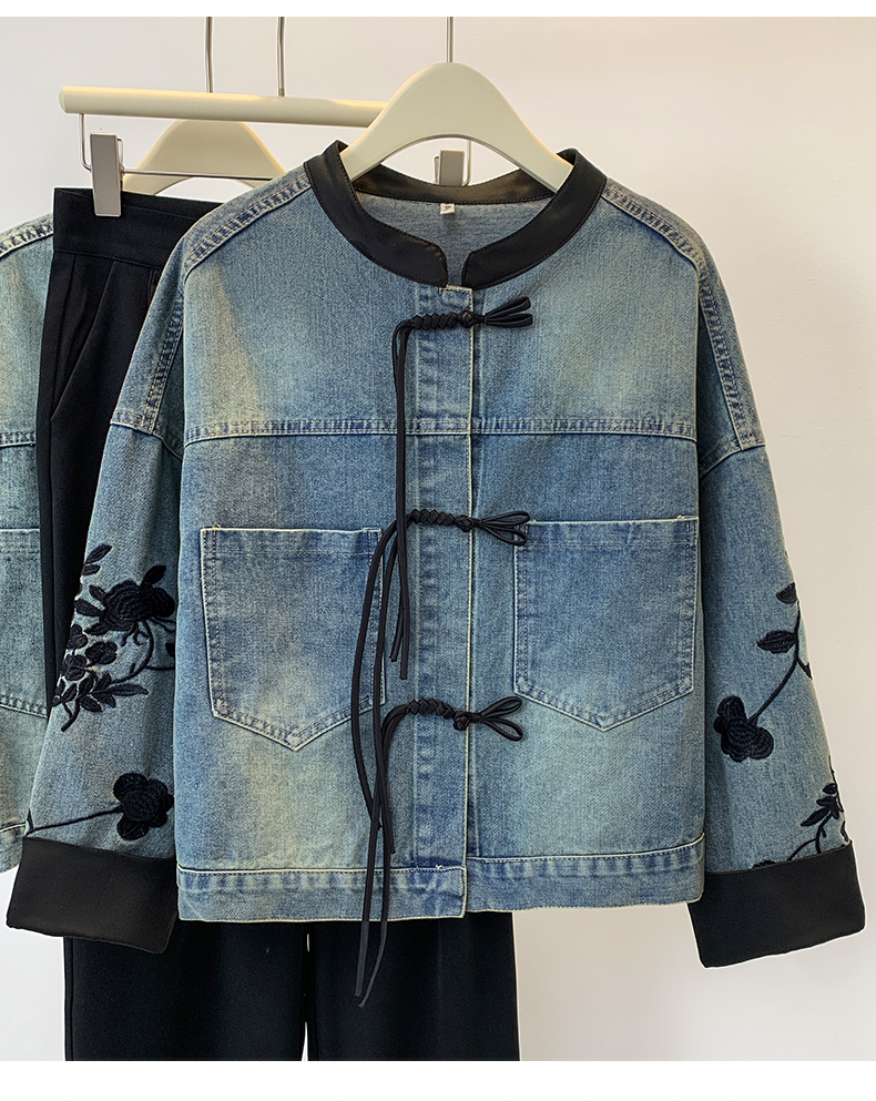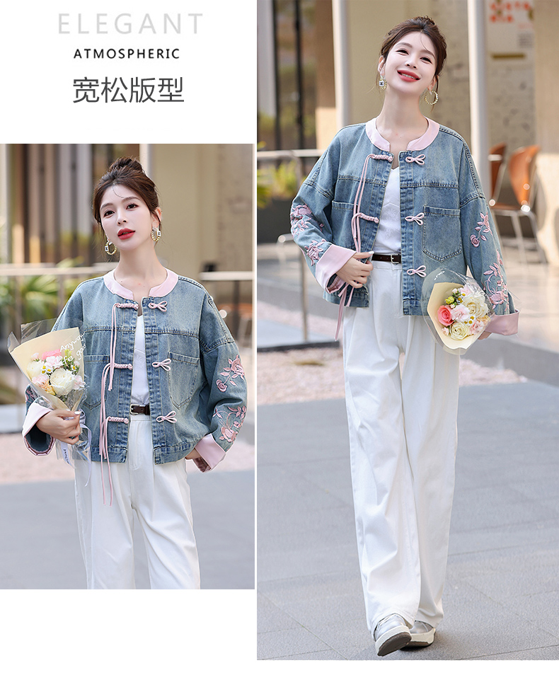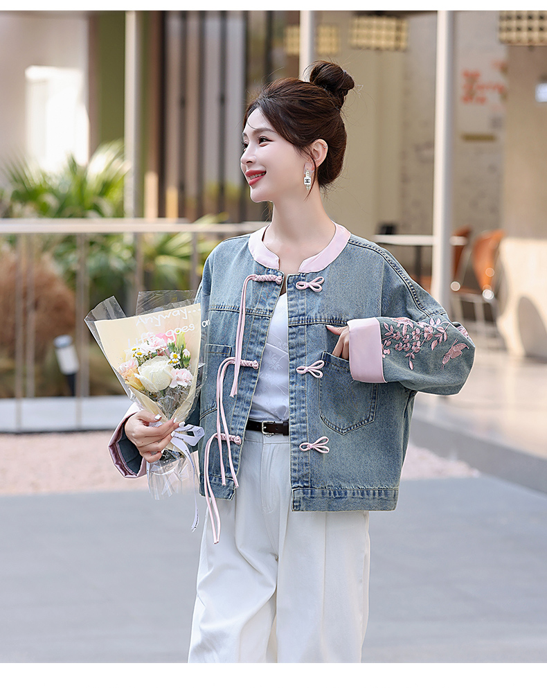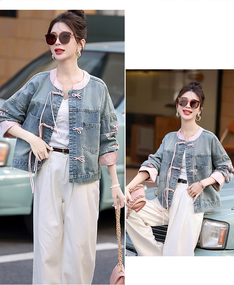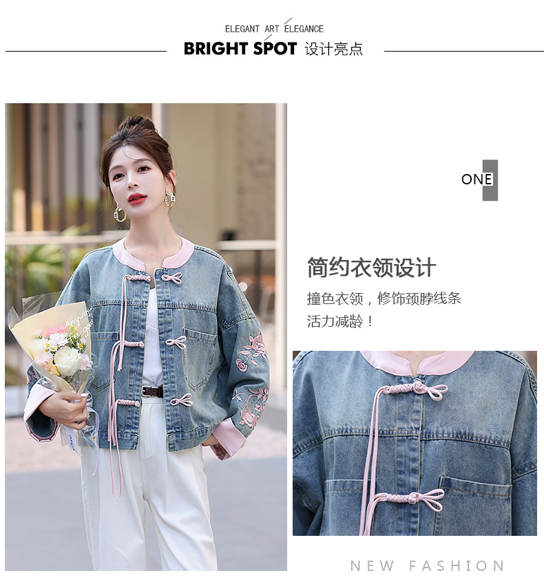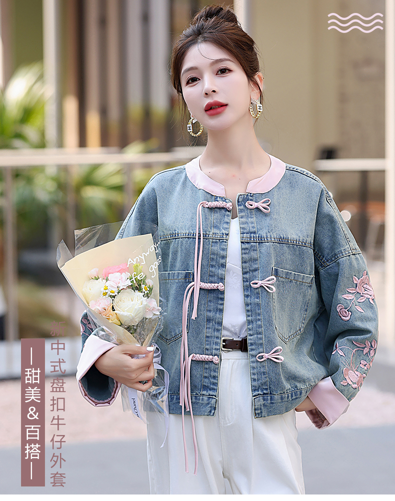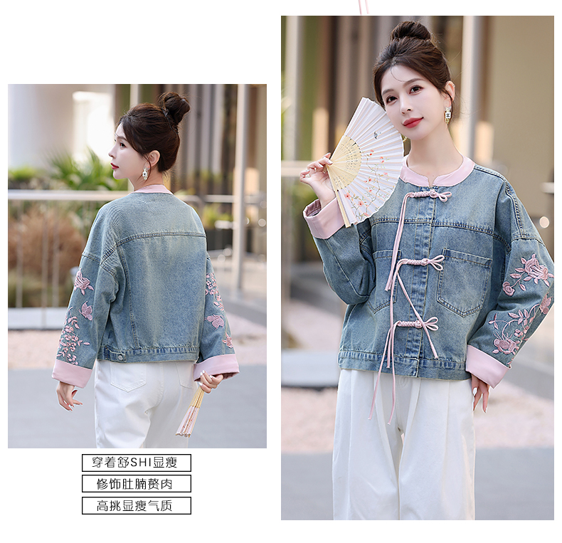 新中式盘扣设计感,刺绣长袖休闲牛仔外套HR-XYFS6779