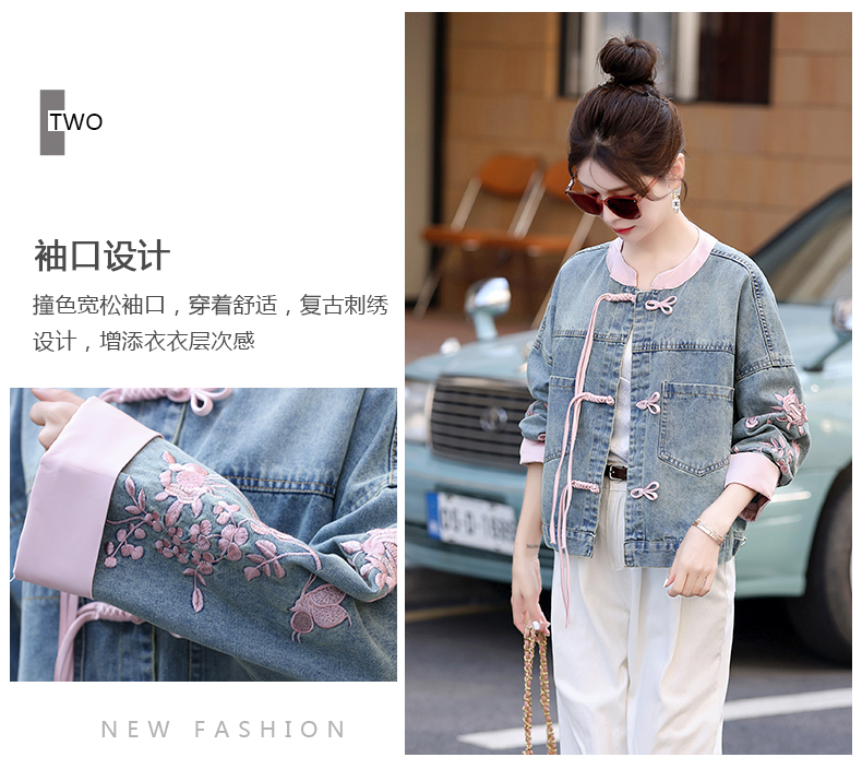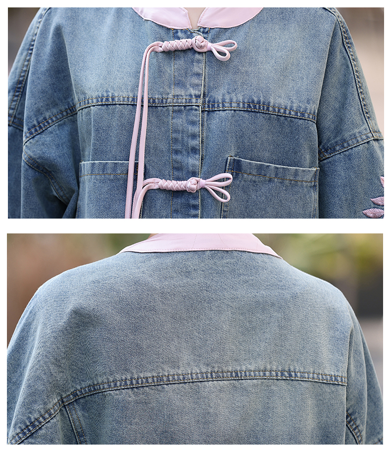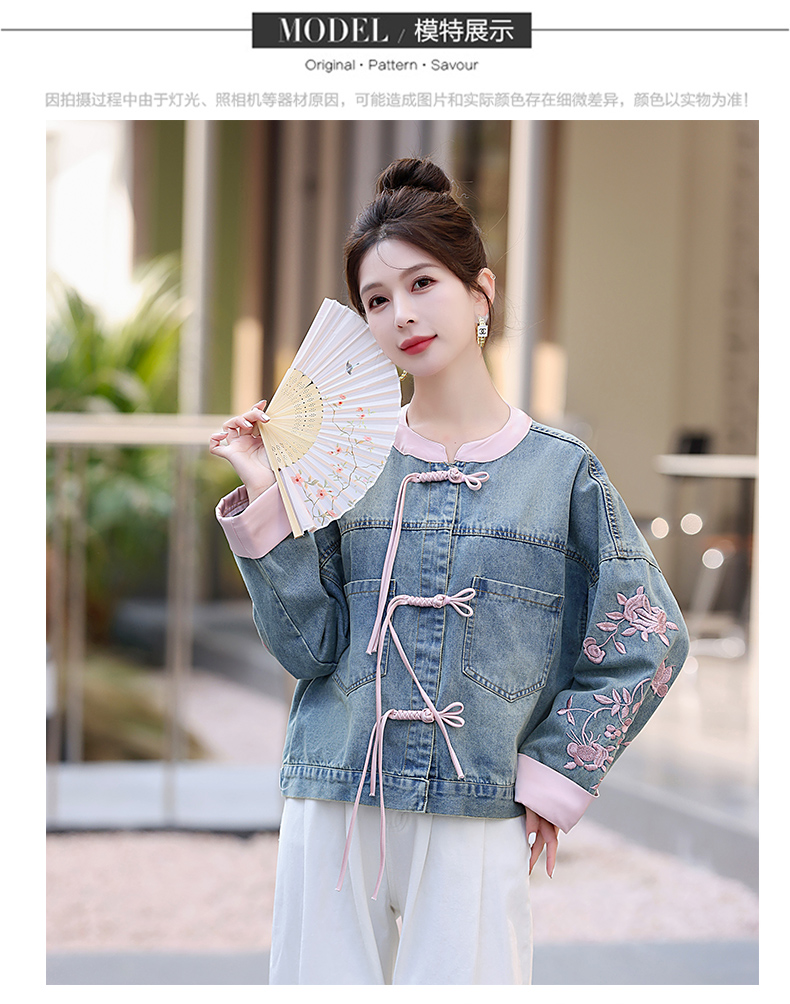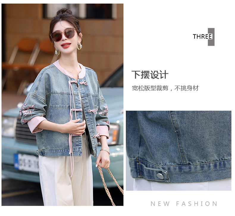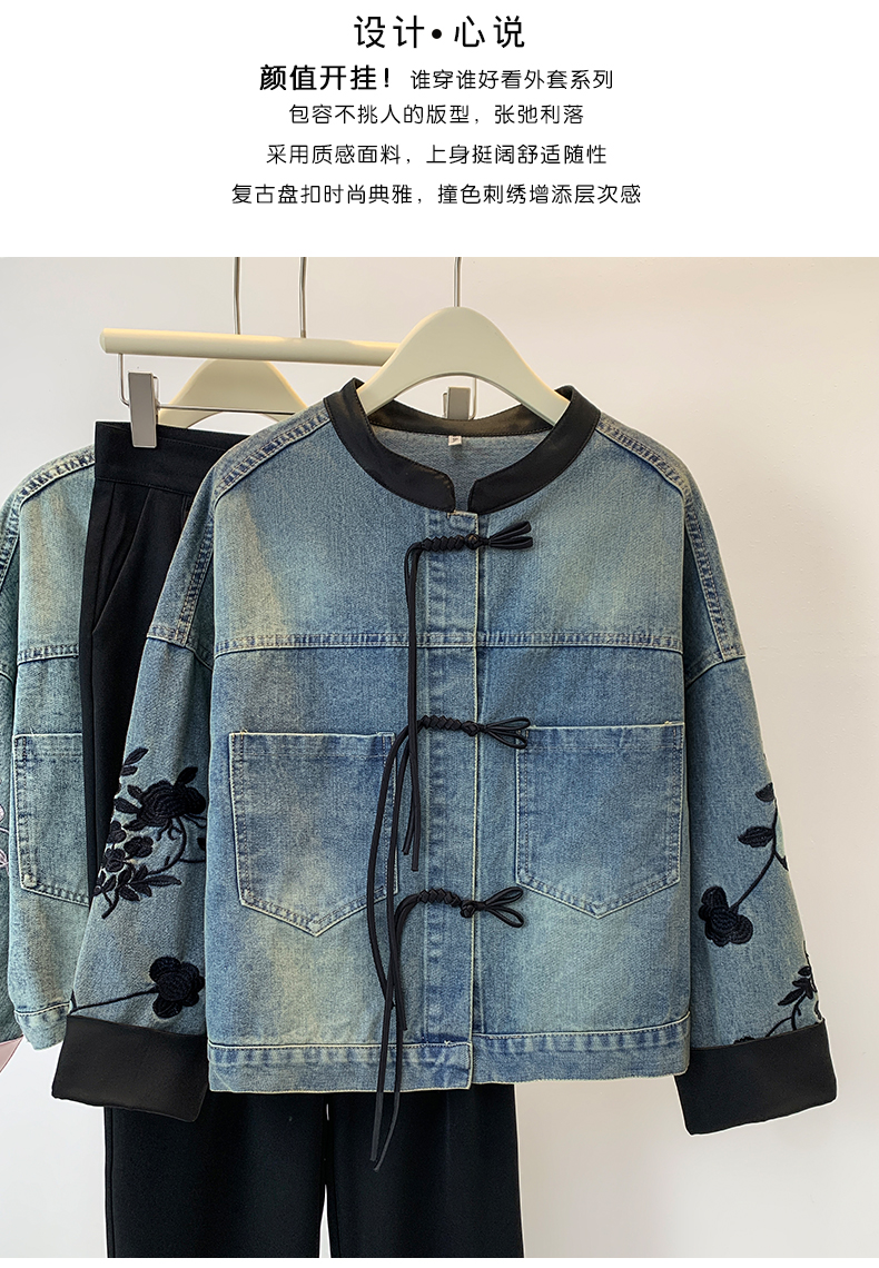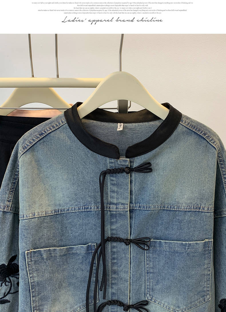 新中式盘扣设计感,刺绣长袖休闲牛仔外套HR-XYFS6779