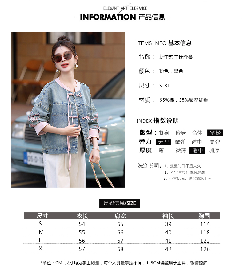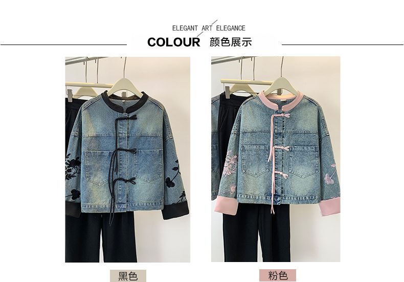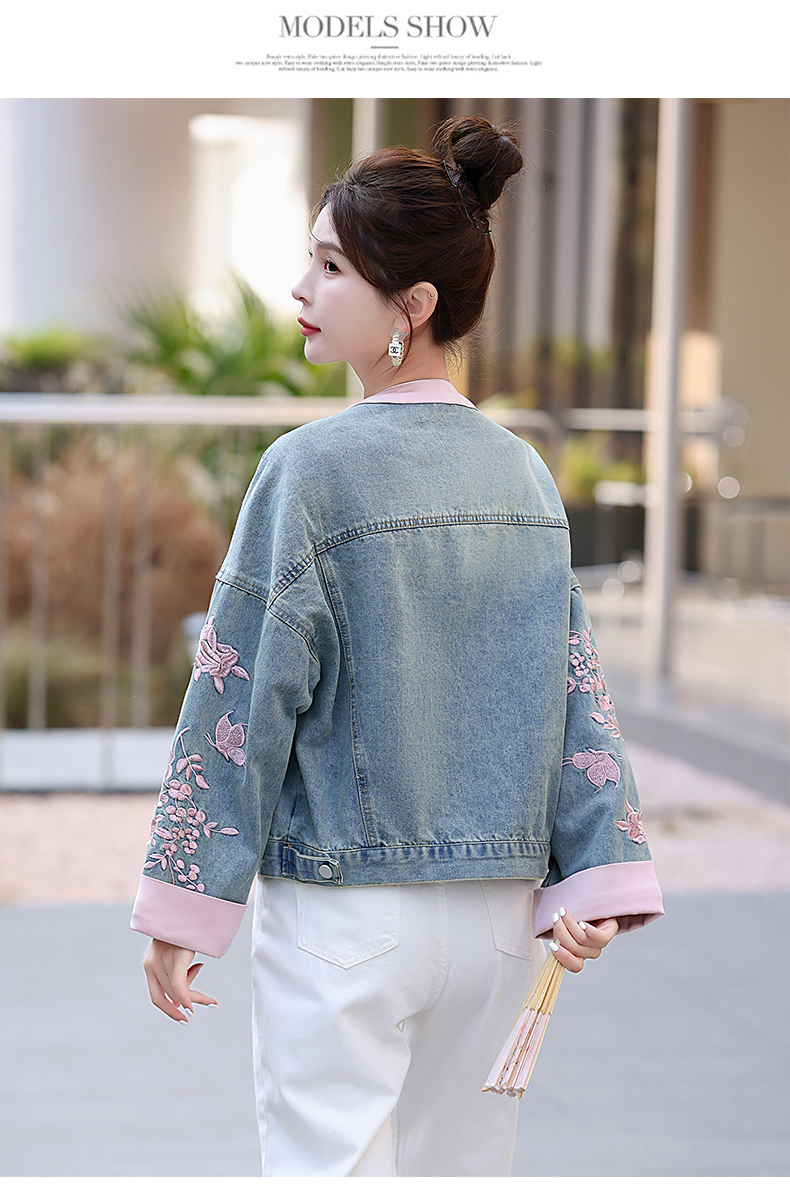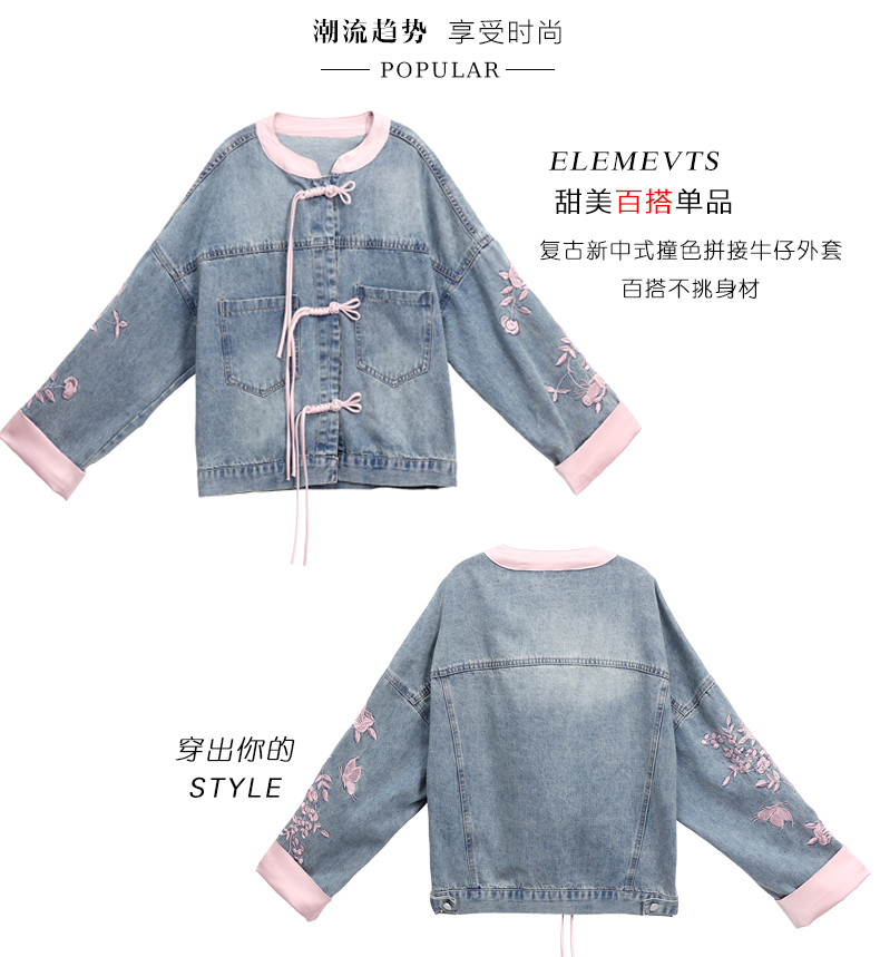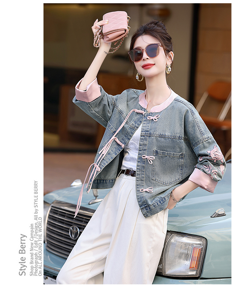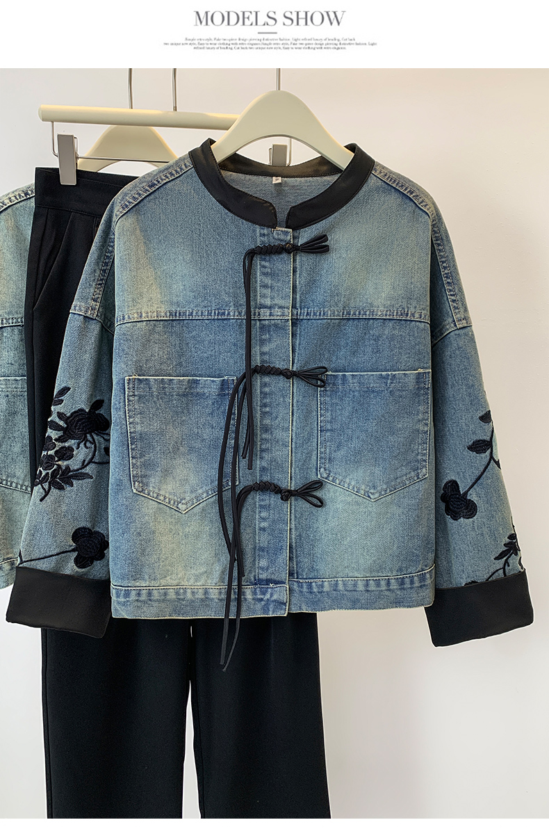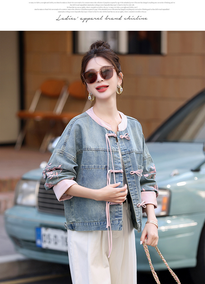 新中式盘扣设计感,刺绣长袖休闲牛仔外套HR-XYFS6779