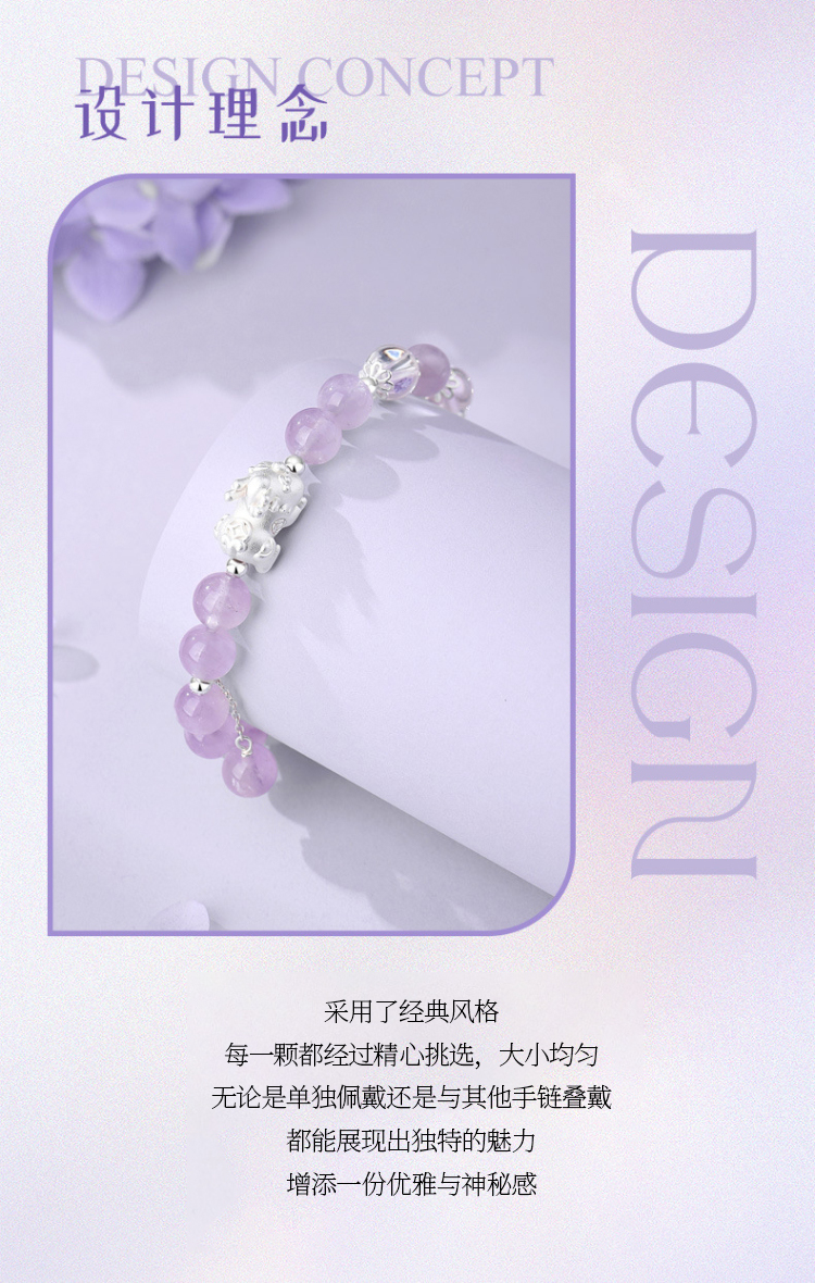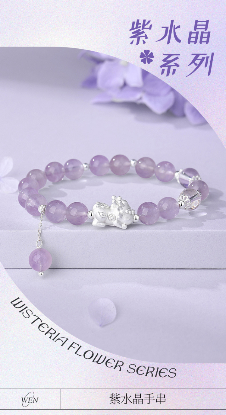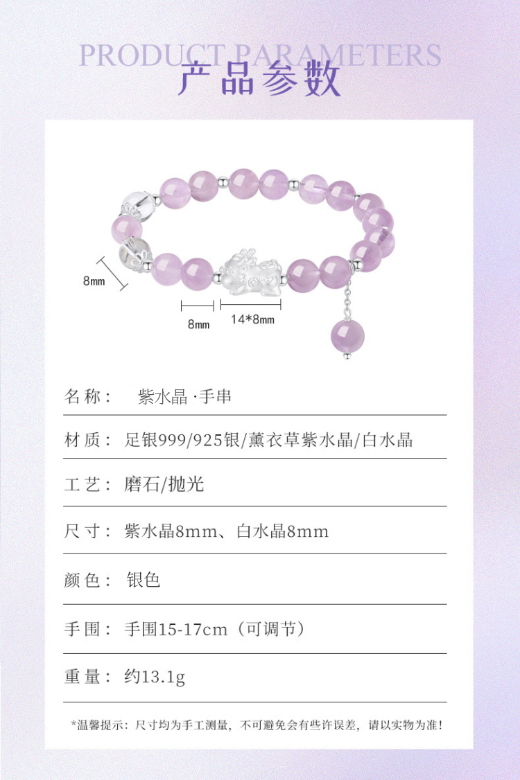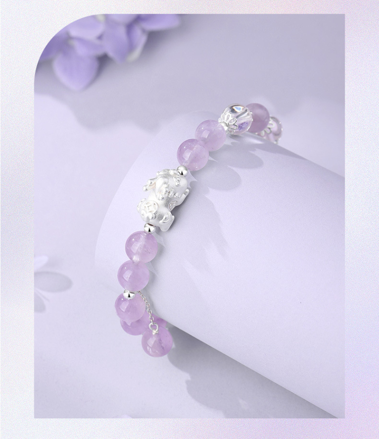 Winy999银貔极泰来紫晶手串配证书送女友闺蜜节日礼物
