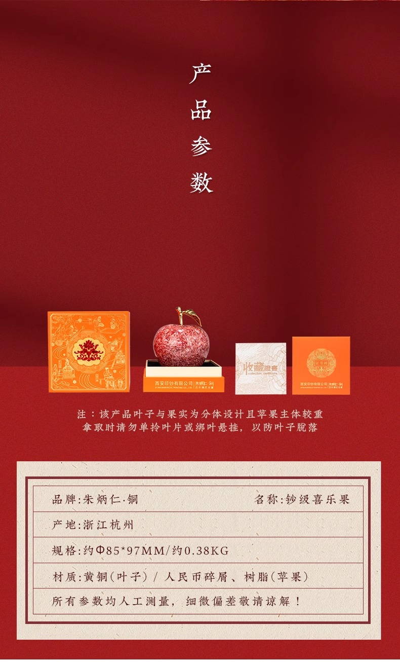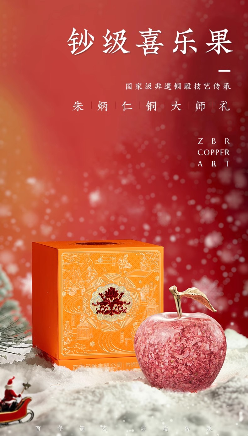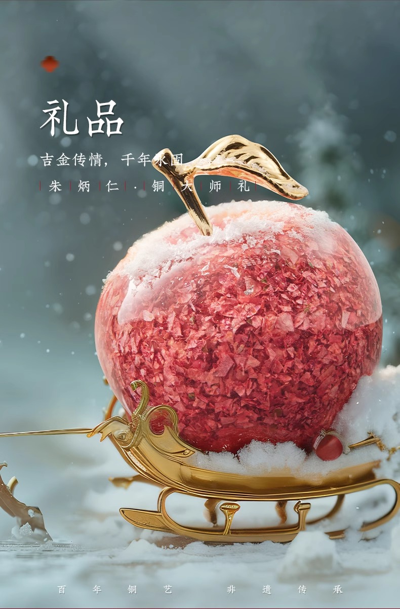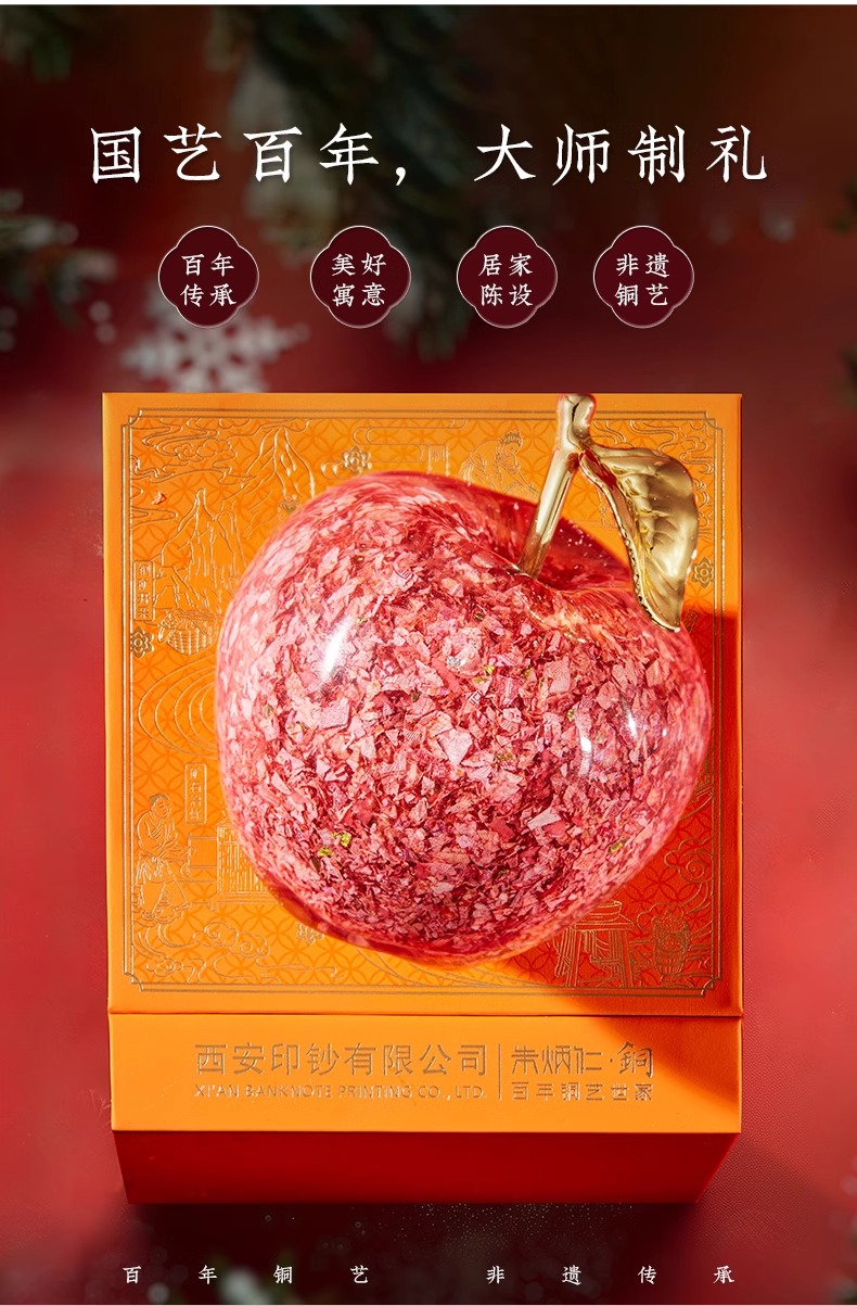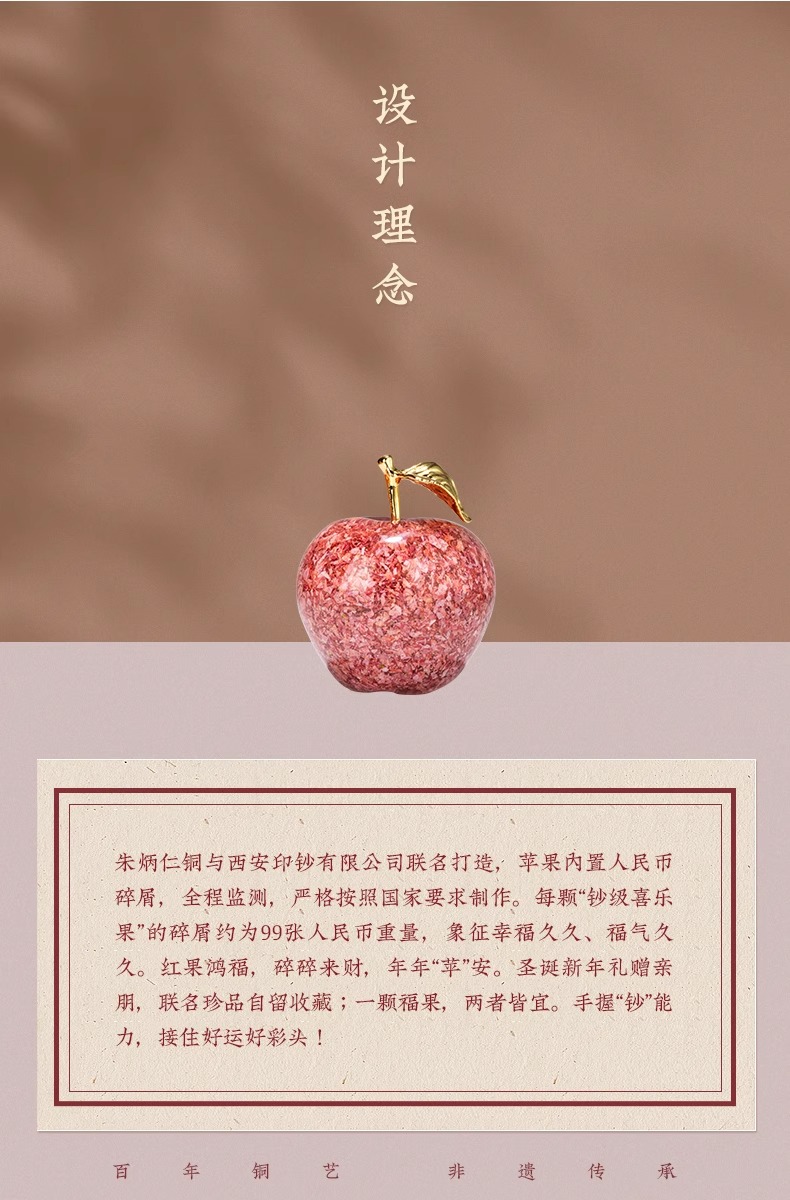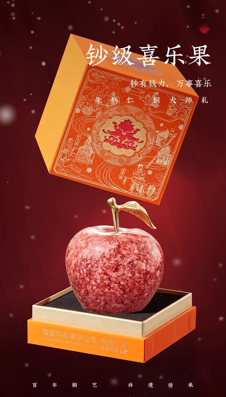 朱炳仁铜钞级喜乐果苹果摆件新年礼物平安果碎钞小苹果乔迁送礼