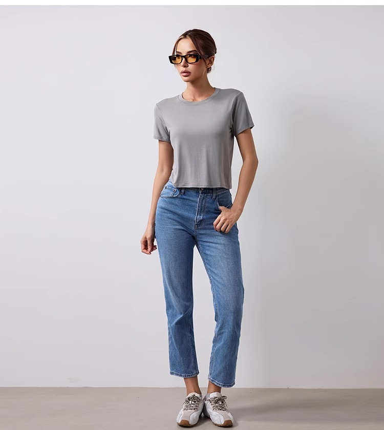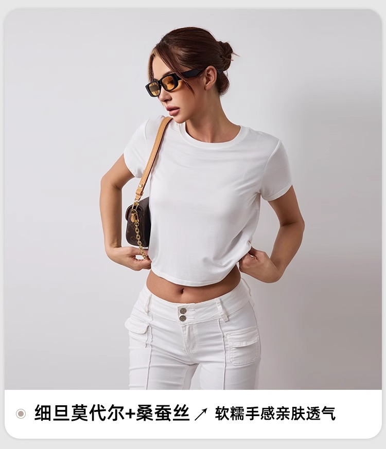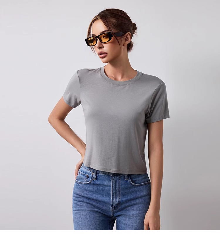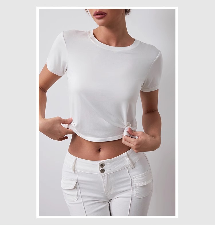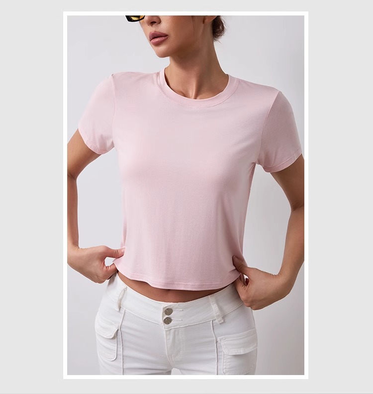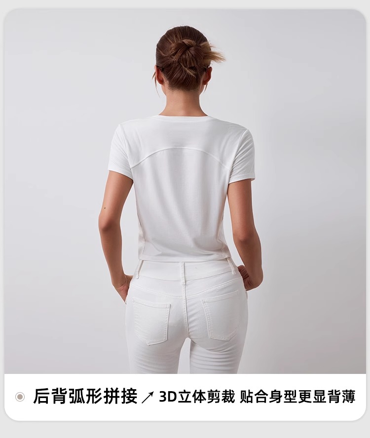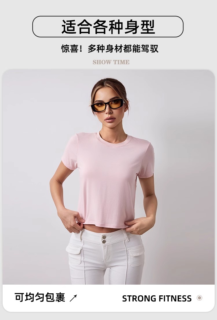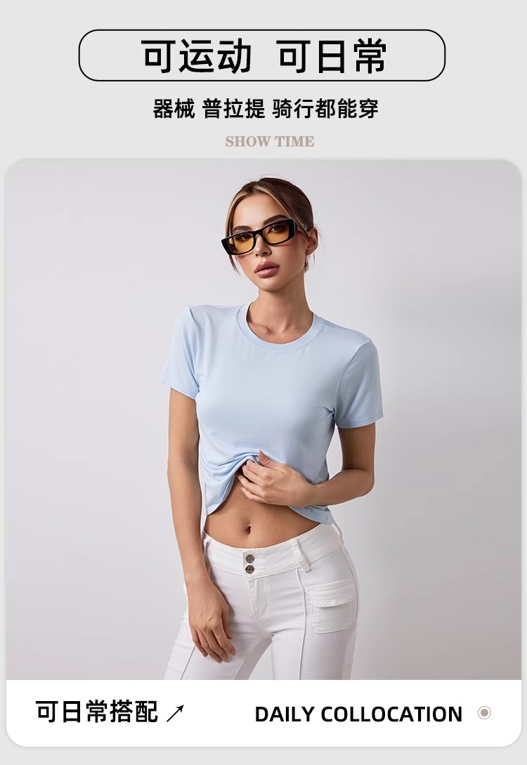 跃牌【周游世界系列】春夏新款瑜伽服女天丝桑蚕丝复古上衣弹力休闲短袖T恤TP0798