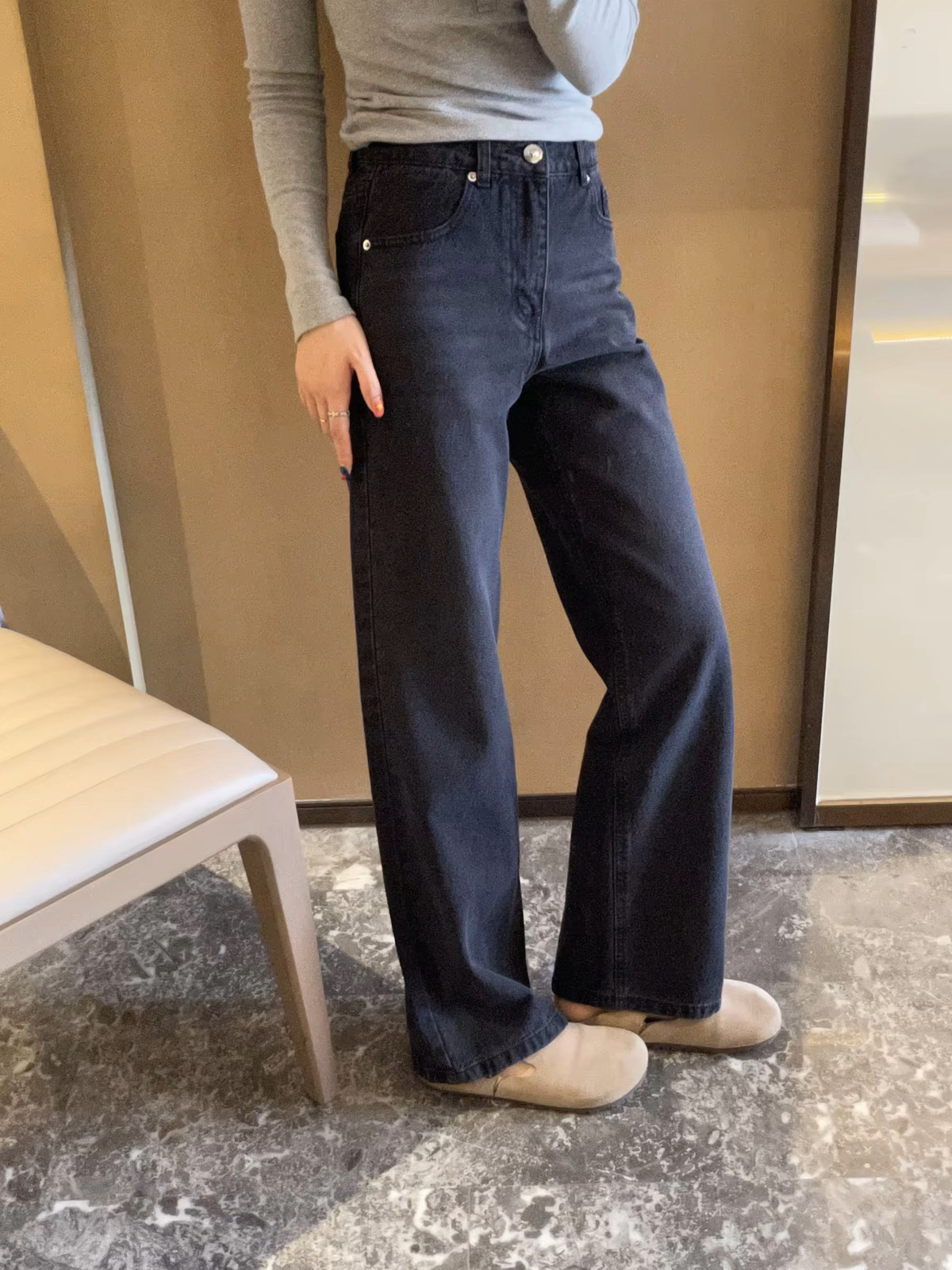 颜色;灰色马吉拉高腰牛仔裤25灰色新款直筒裤 显瘦长裤拖地裤 阔腿裤