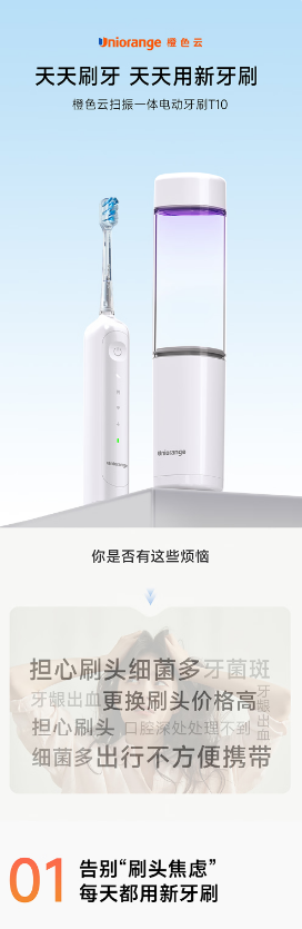 在追求健康生活的道路上,口腔护理至关重要。橙色云电动牙刷T10,宛如一颗璀璨的新星,带着满满的科技感和卓越的性能,闪耀登场。它如同一位专业的口腔护理卫士,以先进的科技和贴心的设计,为您的口腔健康保驾护航,开启全新的口腔清洁之旅,让您的笑容如阳光般灿烂夺目。