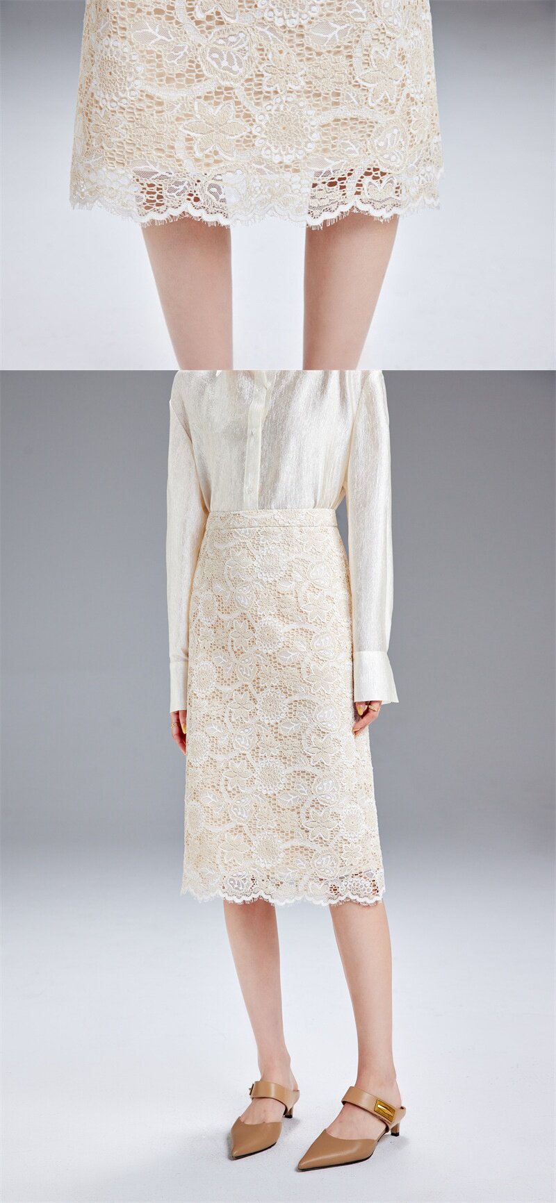 「自」全新升级【铂金会员183/天猫249/差价66】(12057)洛诗琳轻奢蕾丝半身裙女2026春季新款气质高腰显瘦直筒裙