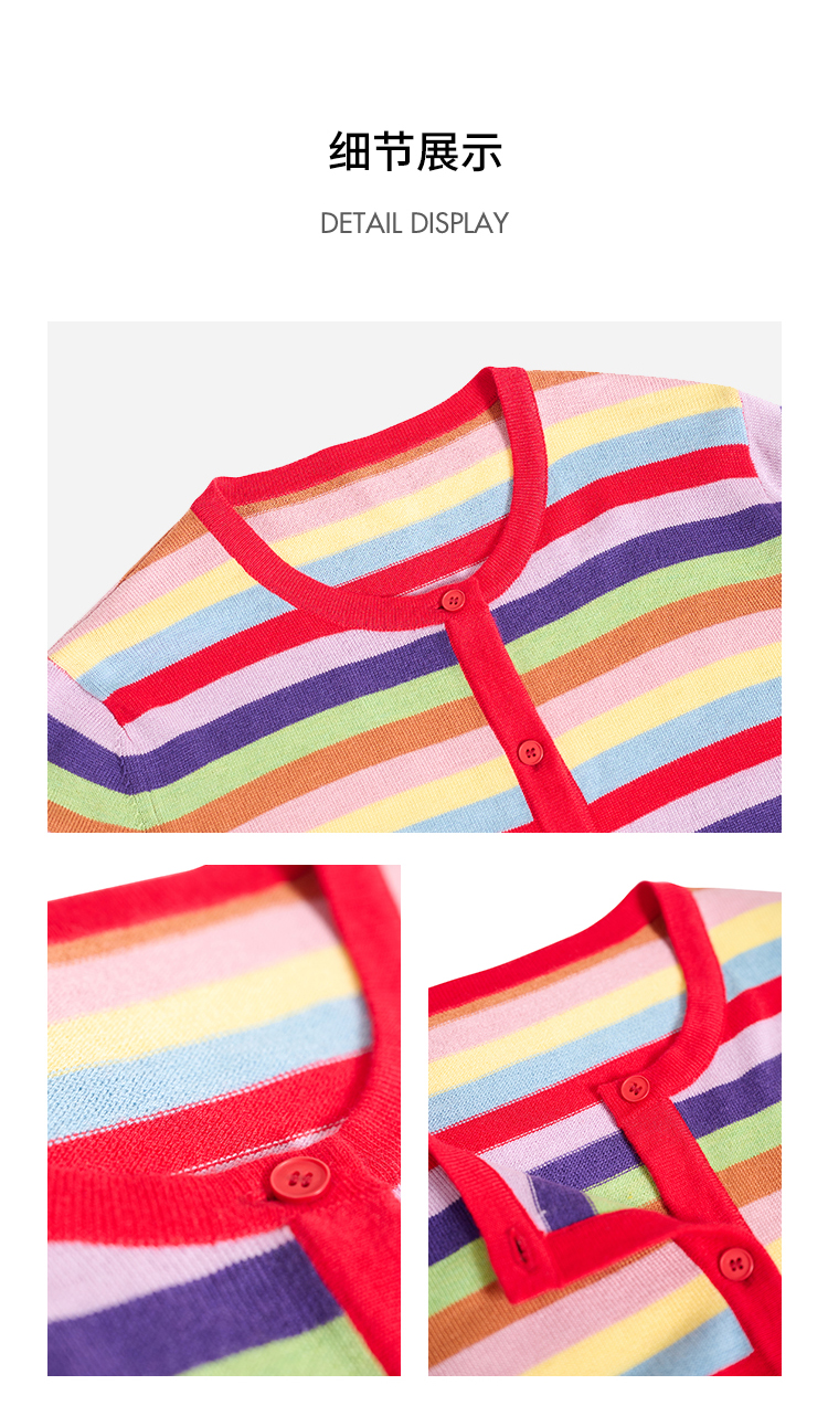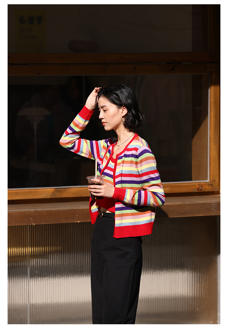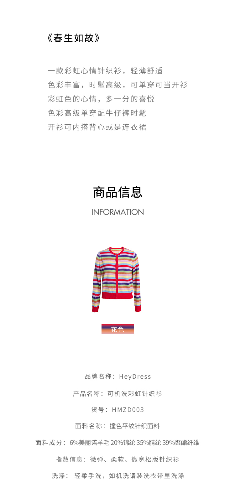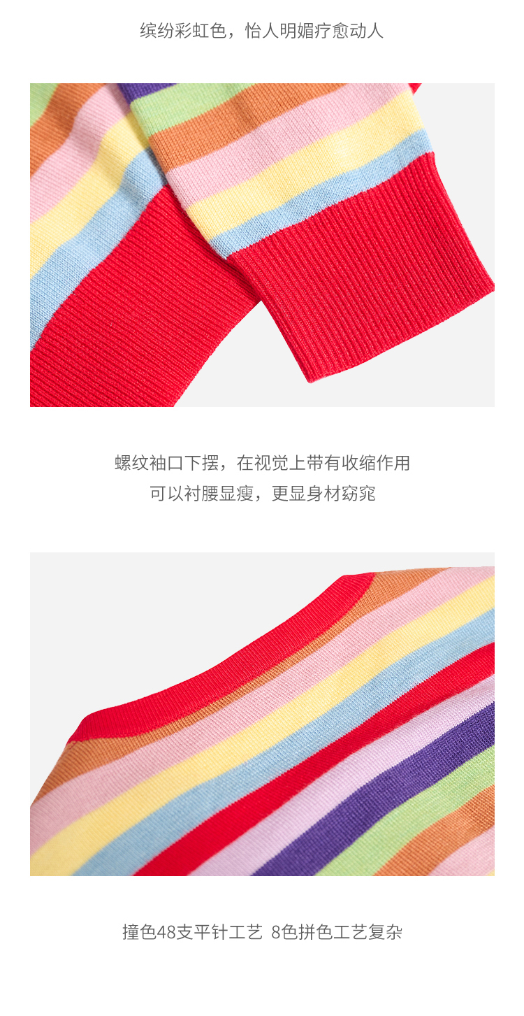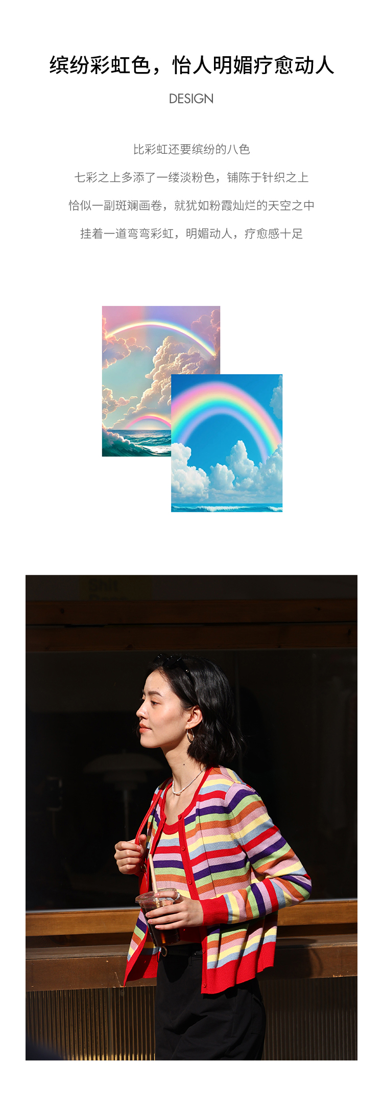 HeyDress彩虹针织开衫女春季法式条纹撞色设计感小众减龄短款上衣