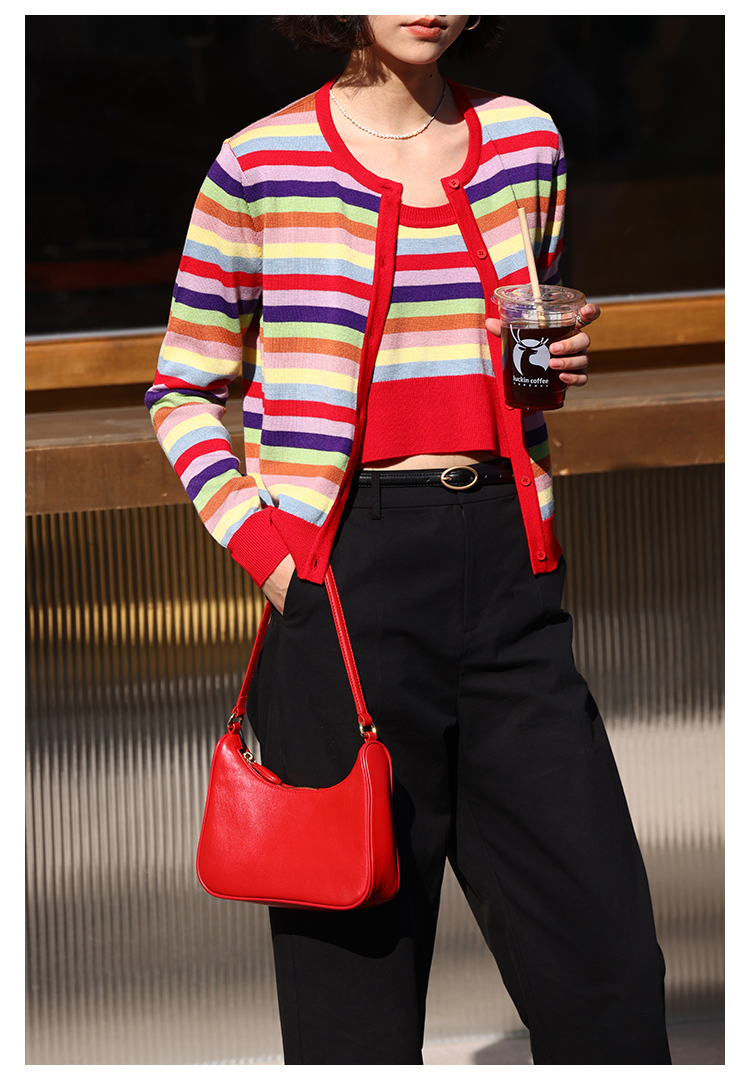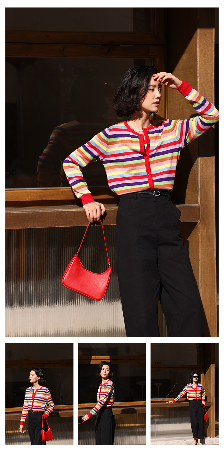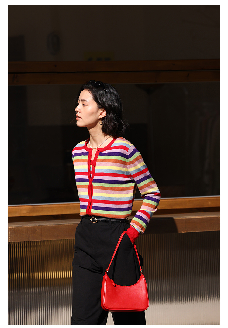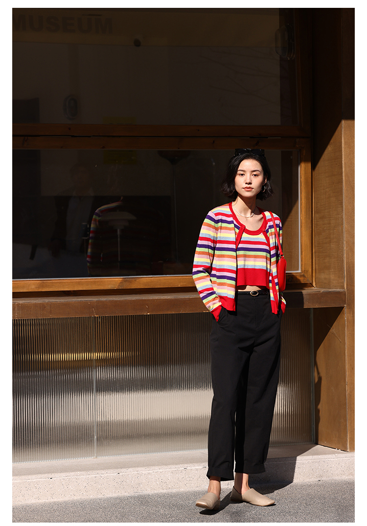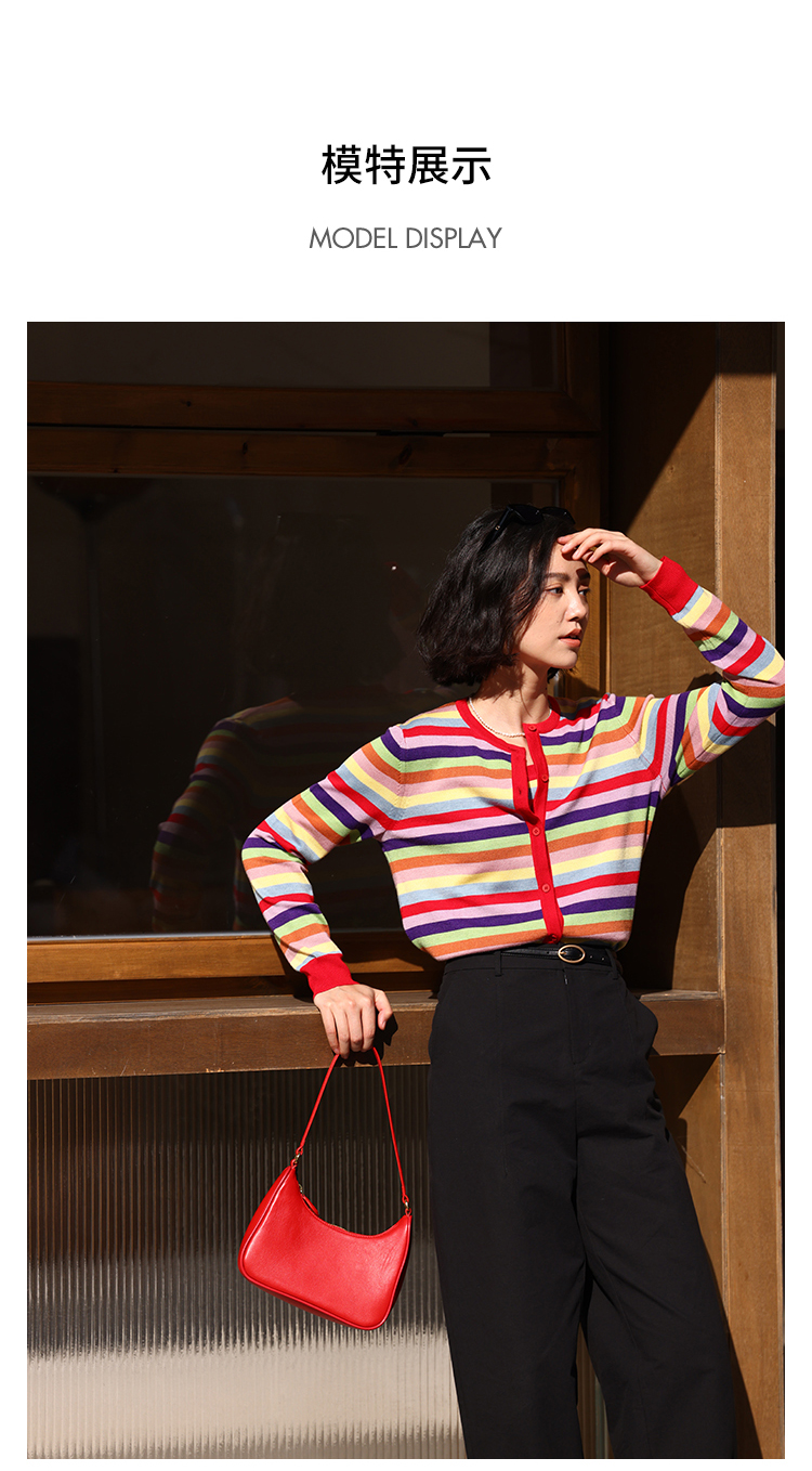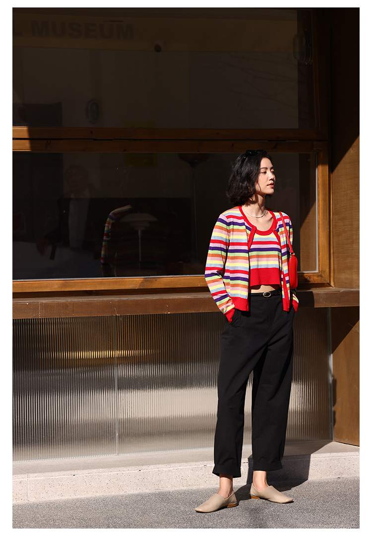 HeyDress彩虹针织开衫女春季法式条纹撞色设计感小众减龄短款上衣