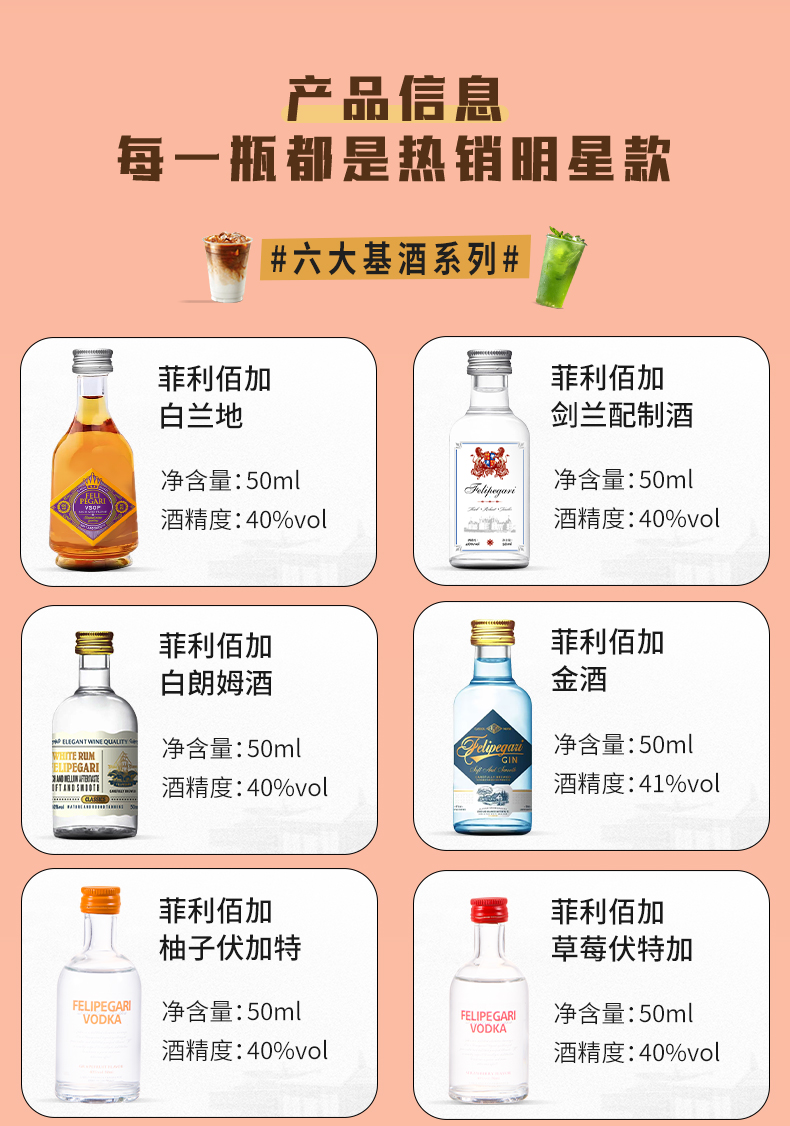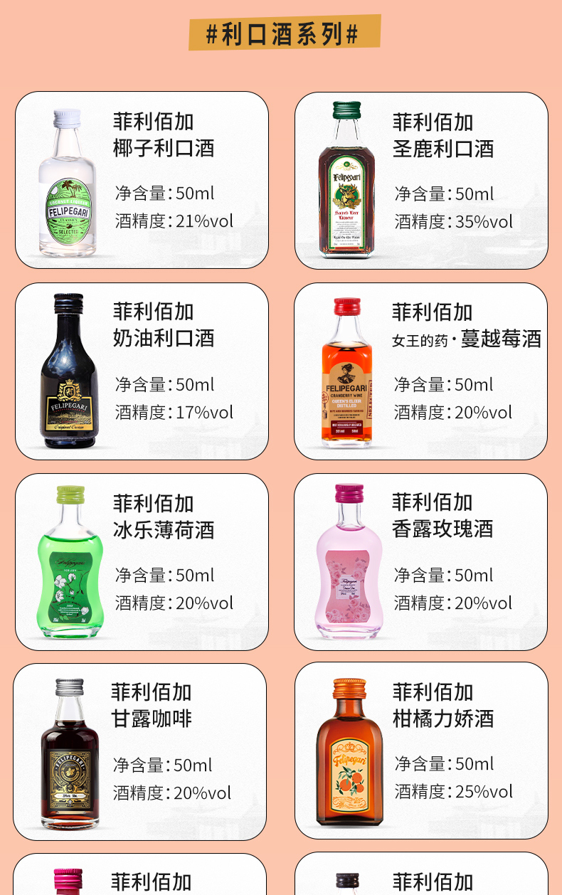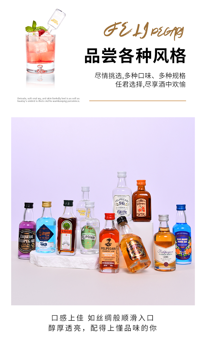 菲利佰加·白兰地威士忌伏特加网红洋酒小酒版18支组合套装