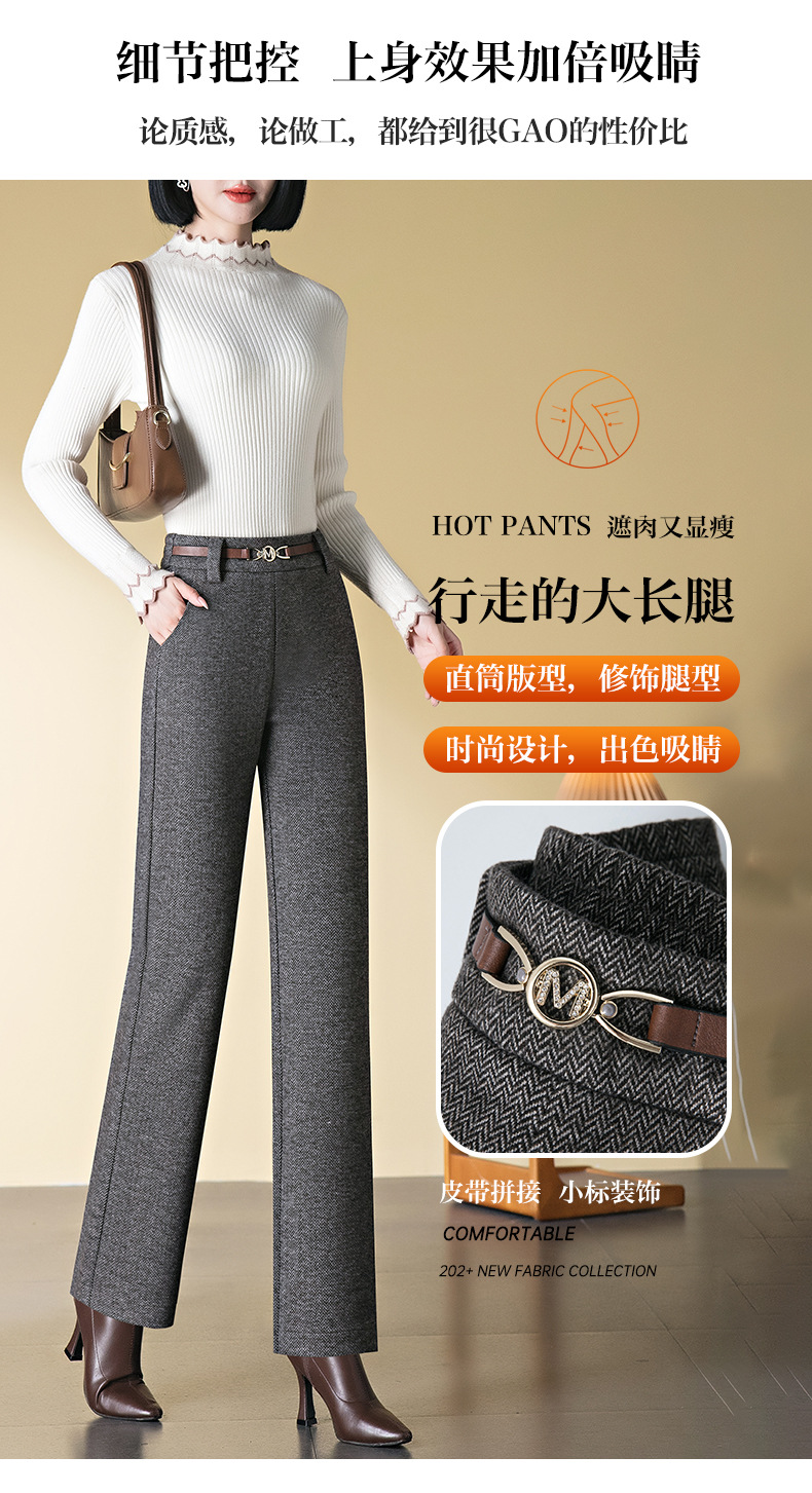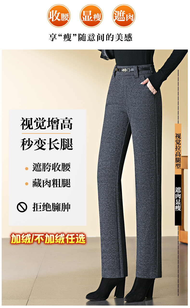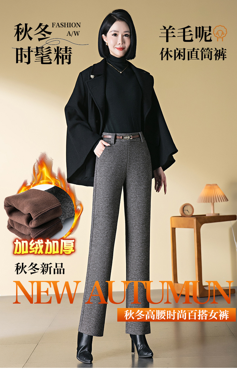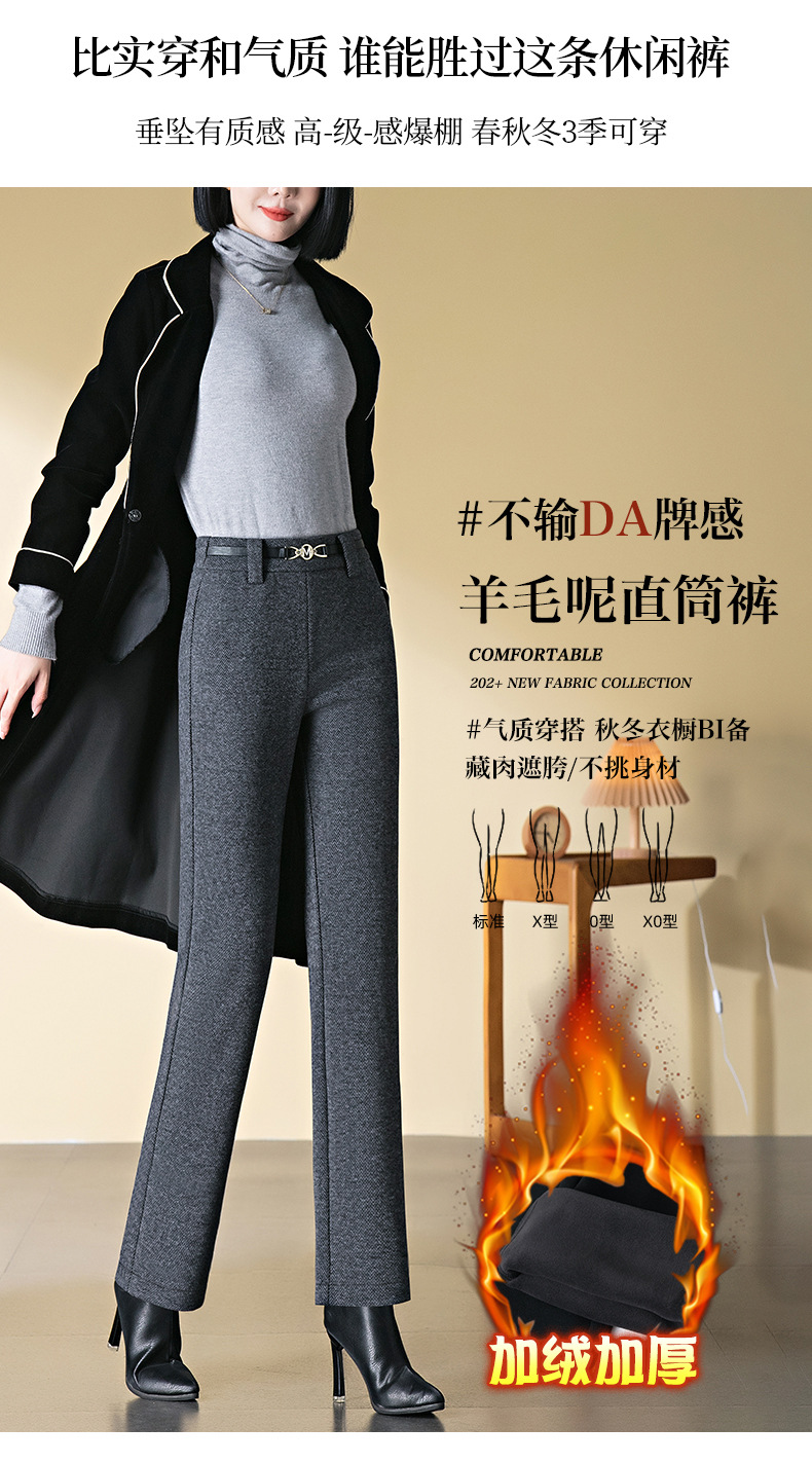 「自」全新升级【铂金会员183/天猫249/差价66】(04627)洛诗琳羊毛加绒直筒裤2025秋冬新款弹力高腰毛呢直筒裤女