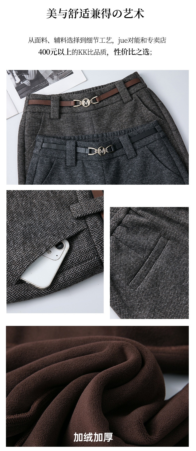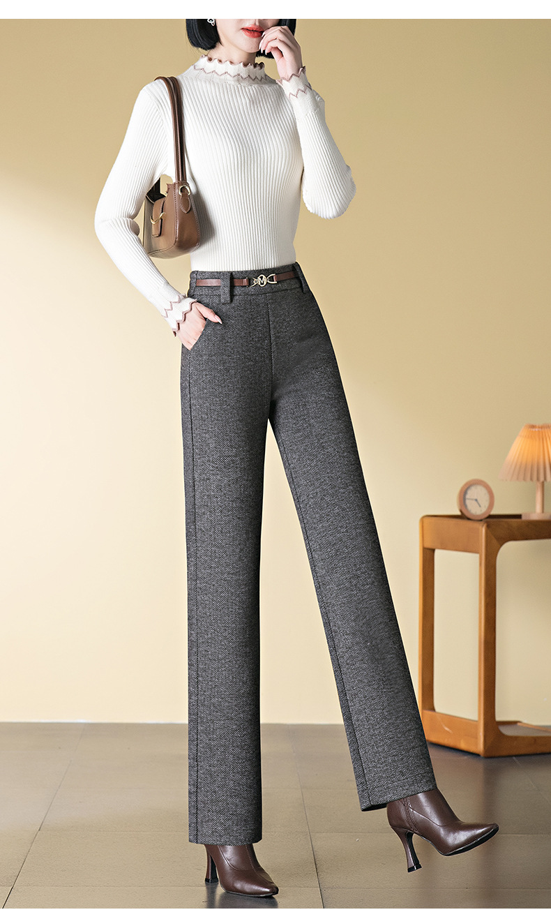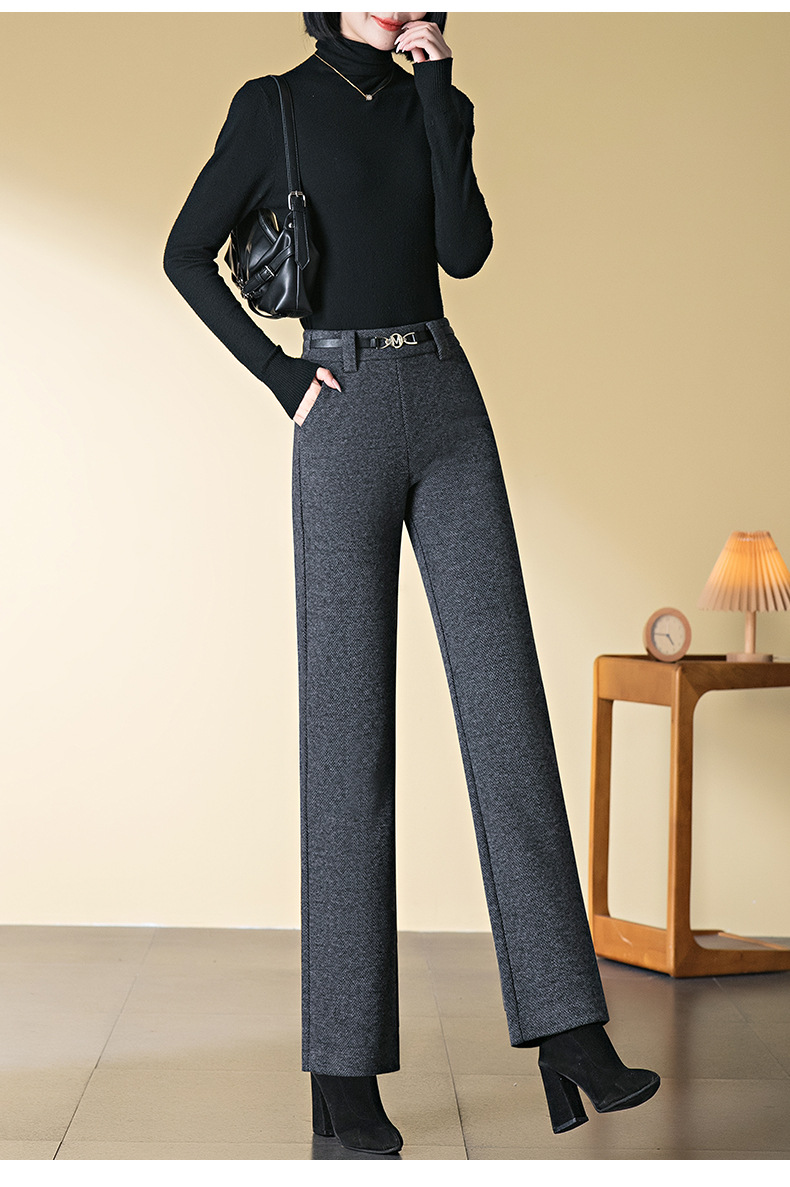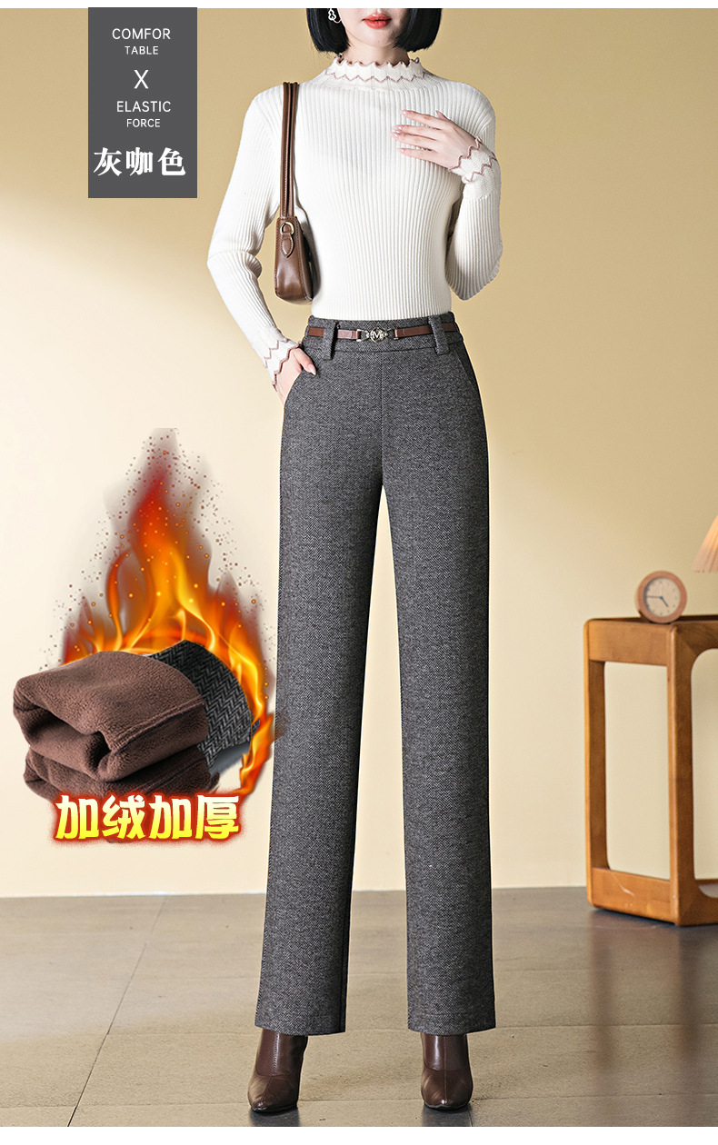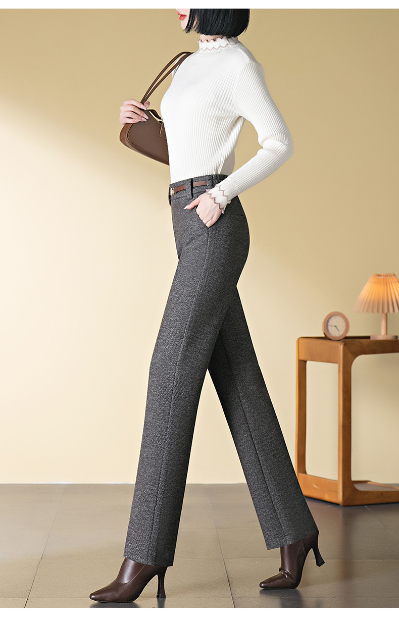 「自」全新升级【铂金会员183/天猫249/差价66】(04627)洛诗琳羊毛加绒直筒裤2025秋冬新款弹力高腰毛呢直筒裤女