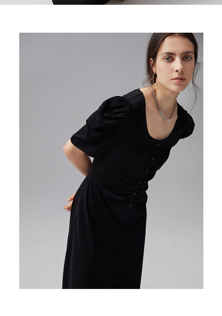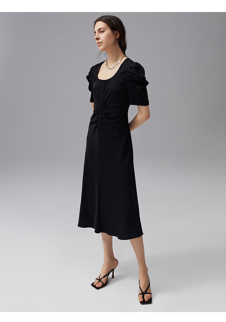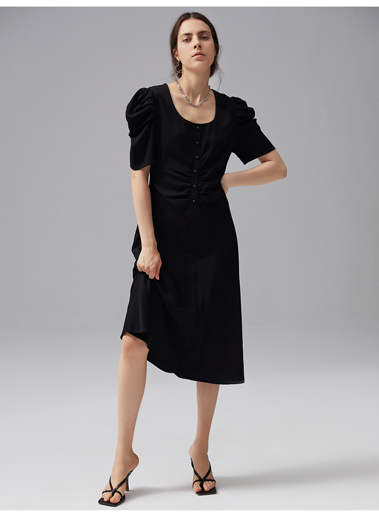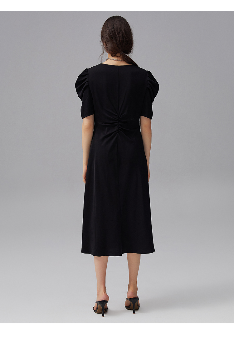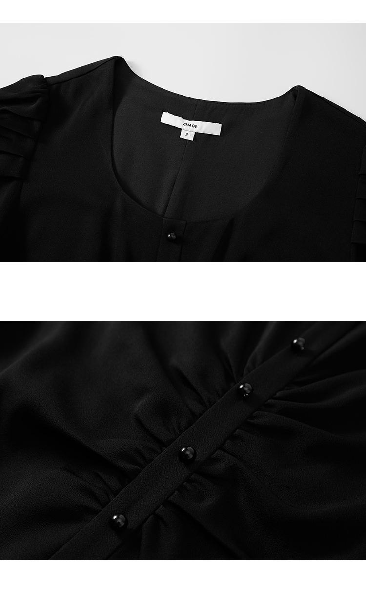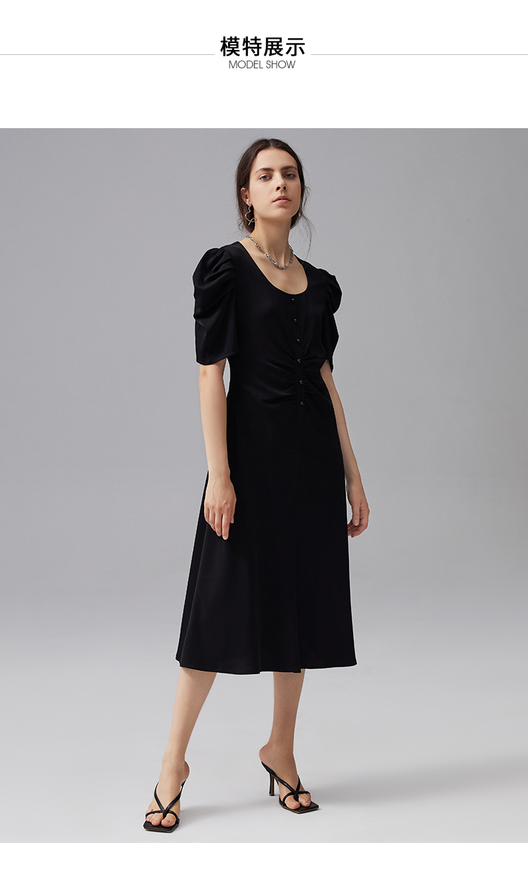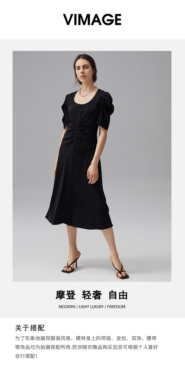 VIMAGE纬漫纪夏季新款雪纺收腰长裙高腰泡泡袖中长款连衣裙V1507192