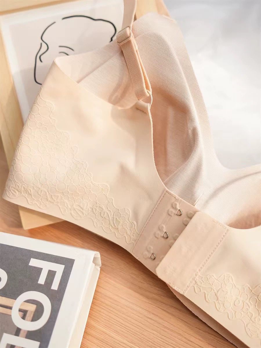 全托式果冻胶➕杯面立体刷花➕高弹夹层面料➕桑蚕丝抗菌锦莫内里➕超透气半固定式千孔杯➕隐形四排三扣背勾