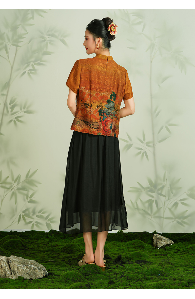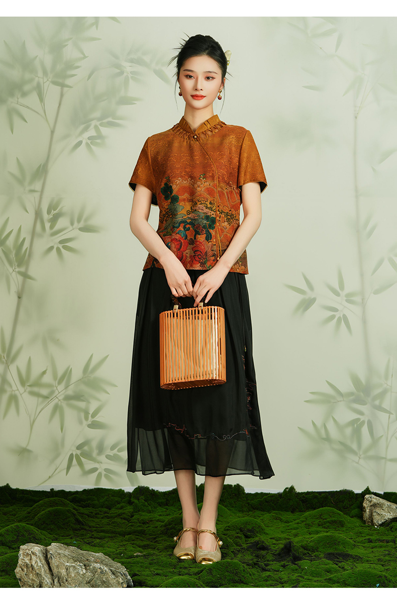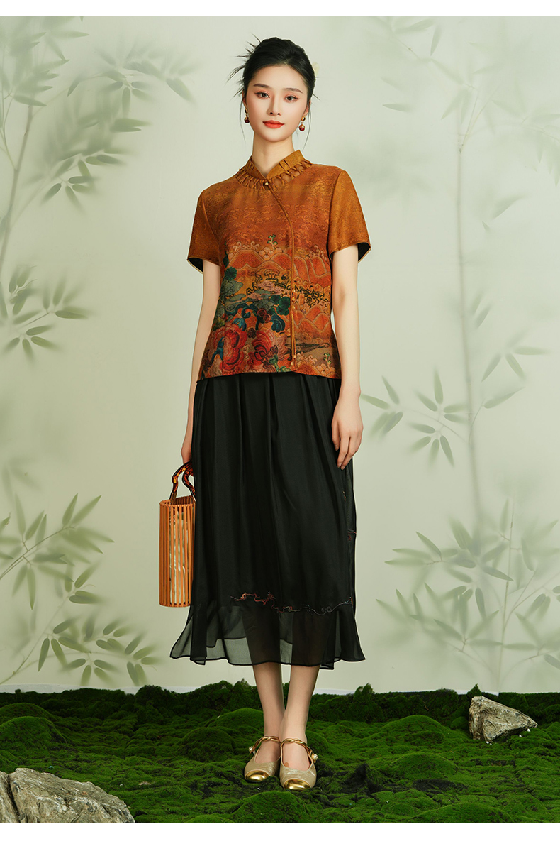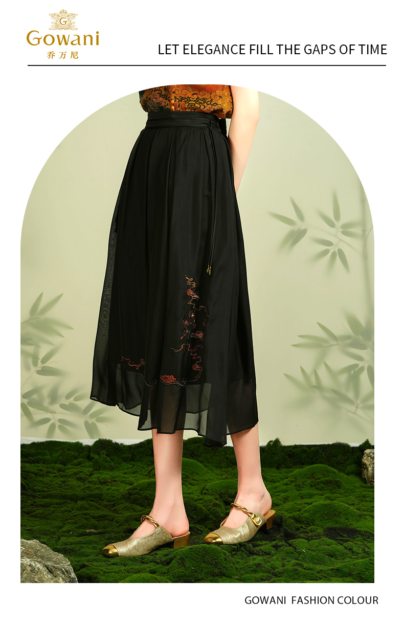 乔万尼100%桑蚕丝半身裙国风刺绣设计真丝半裙EM2D812