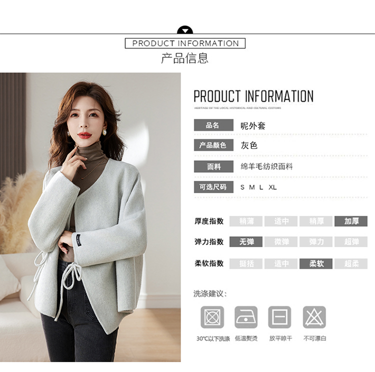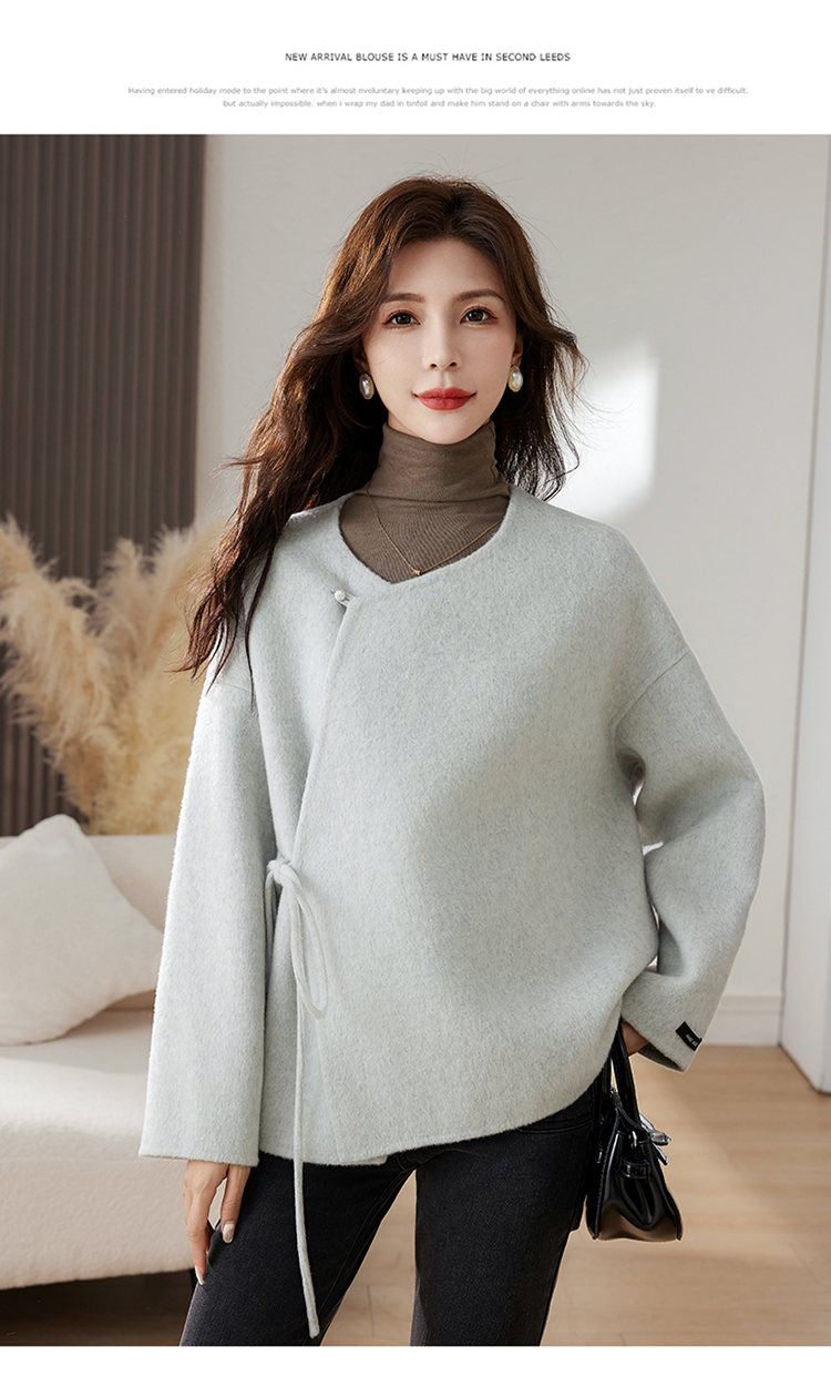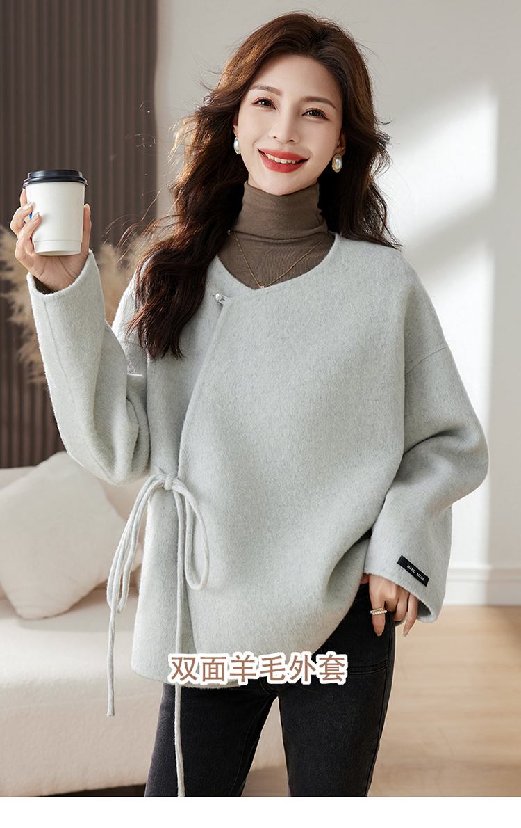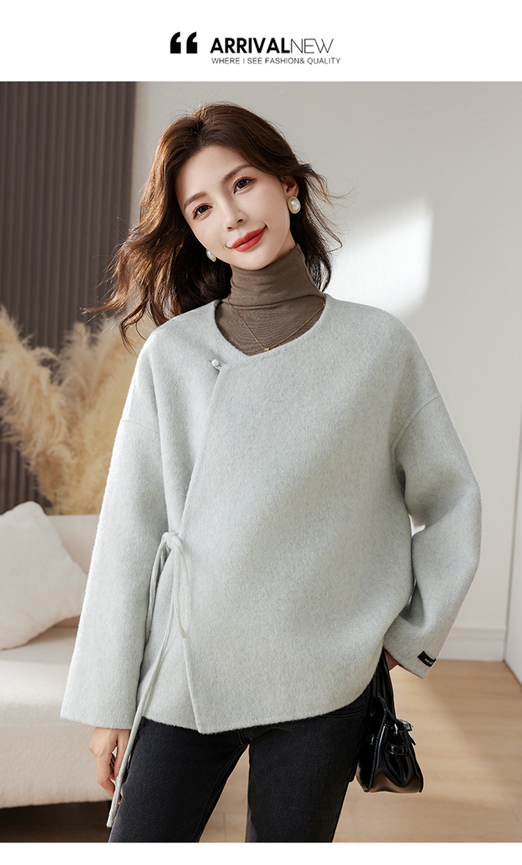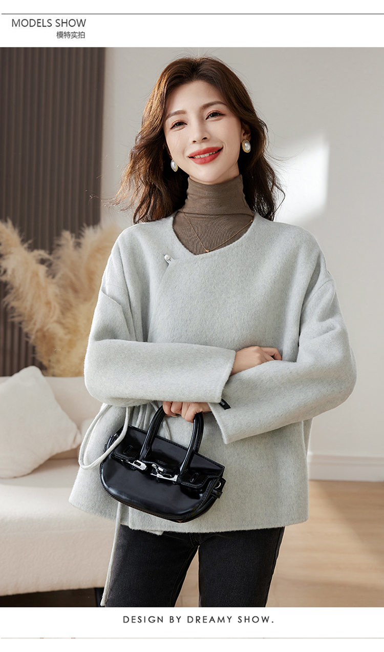 时尚新中式,纯手工缝制双面羊毛呢子大衣外套HR-HLGUO2393
