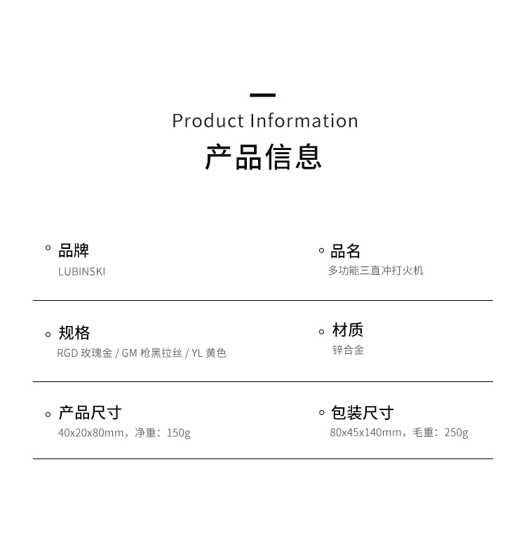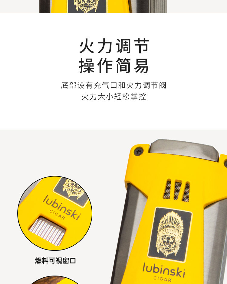 Lubinski鲁宾斯基多功能雪茄打火机双尺寸雪茄钻三喷出火大容量