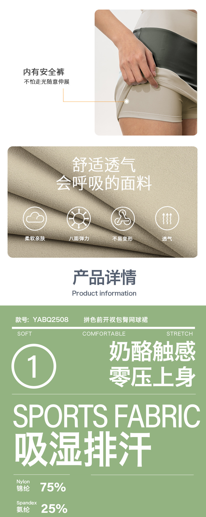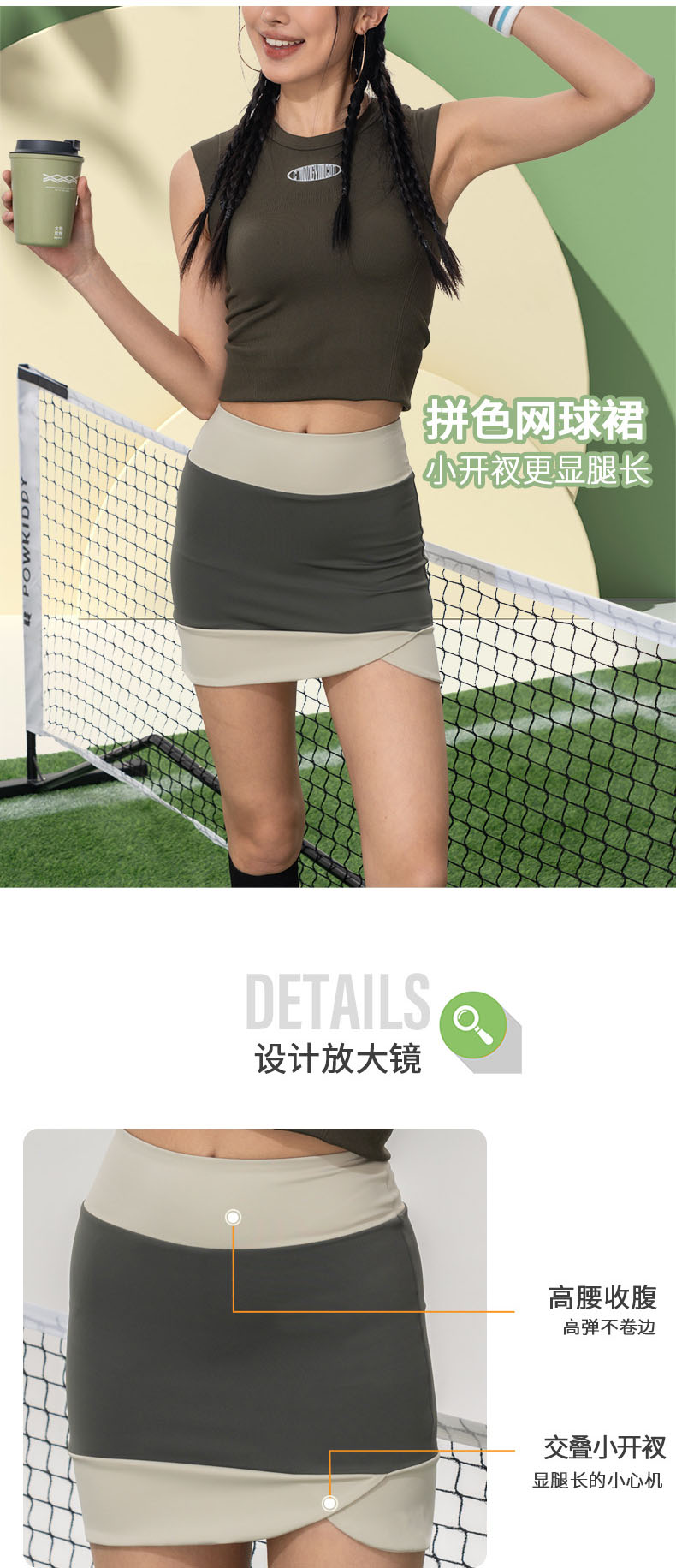 Gymicon能量符号 新款撞色瑜伽网球裤裙透气女高腰显瘦运动训练短裙YABQ2508