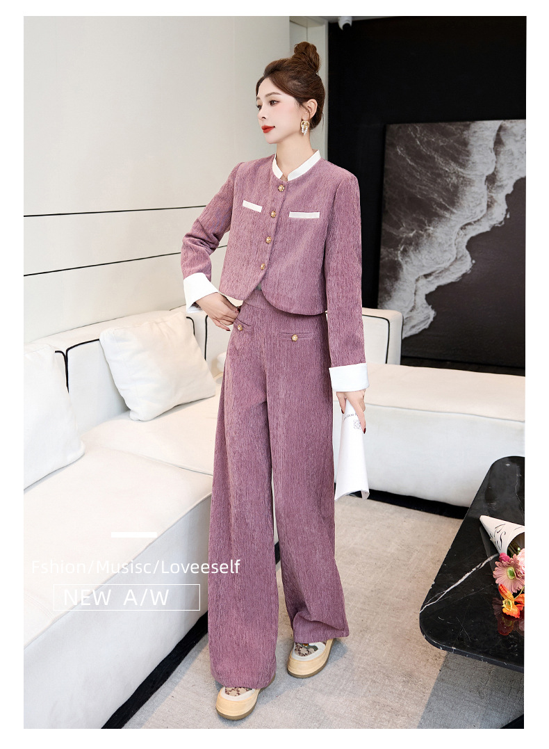 时尚雪尼尔外套,长袖长裤套装两件套LJX-877