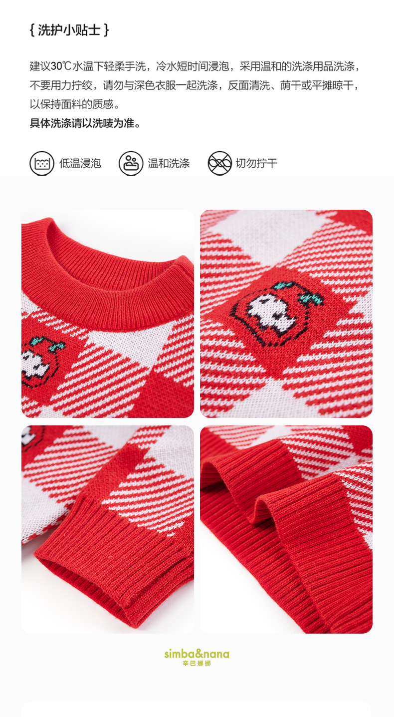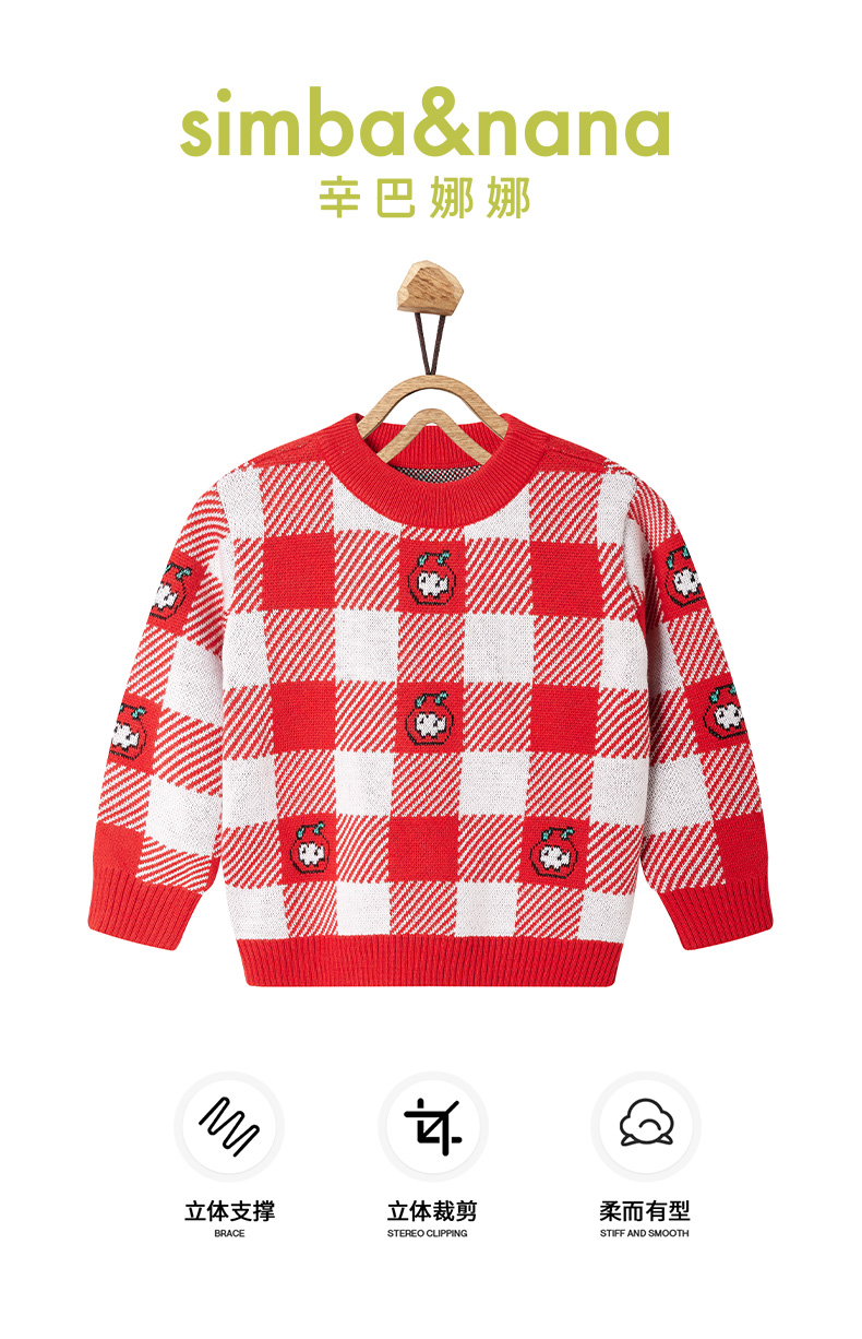 【辛巴娜娜】simbanana洋气宝宝格纹秋冬款女孩小童衣服半高领保暖上衣