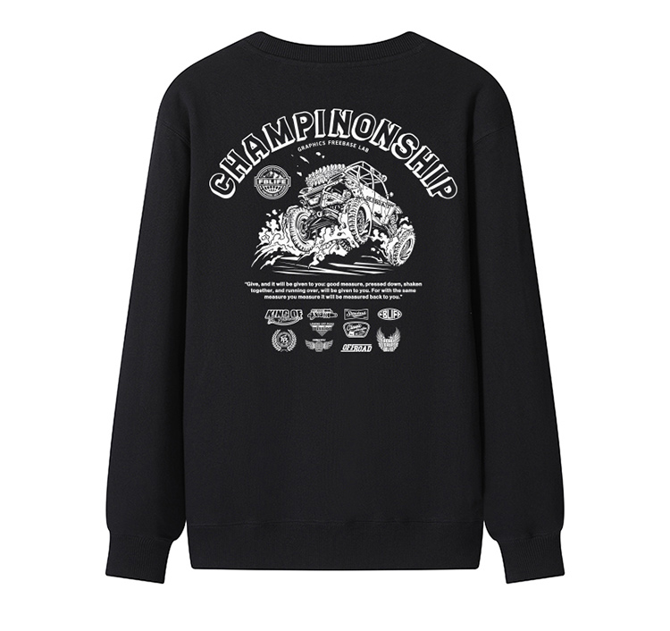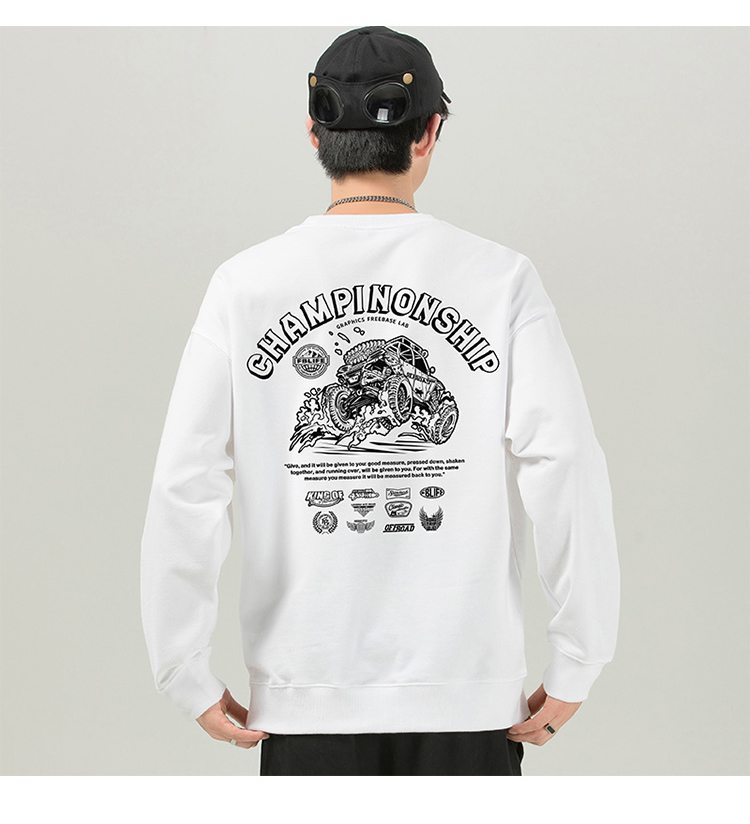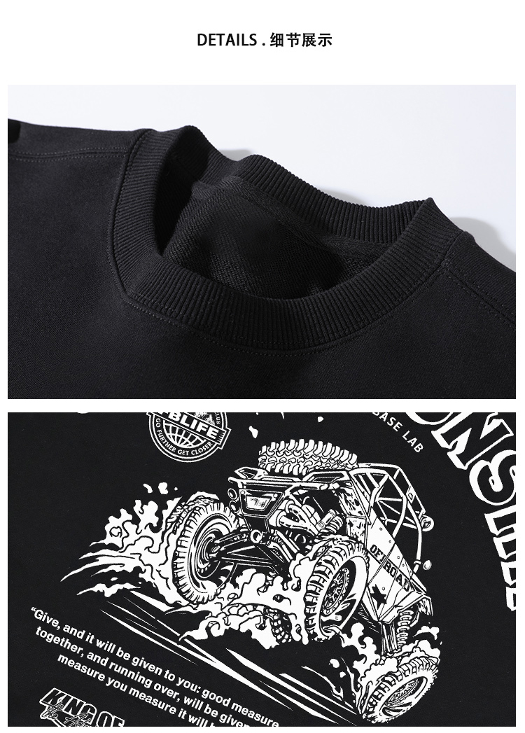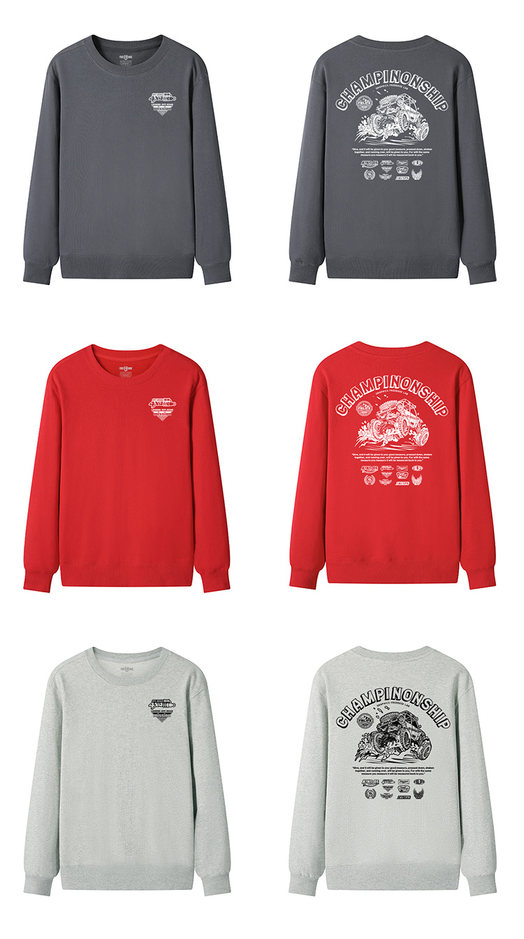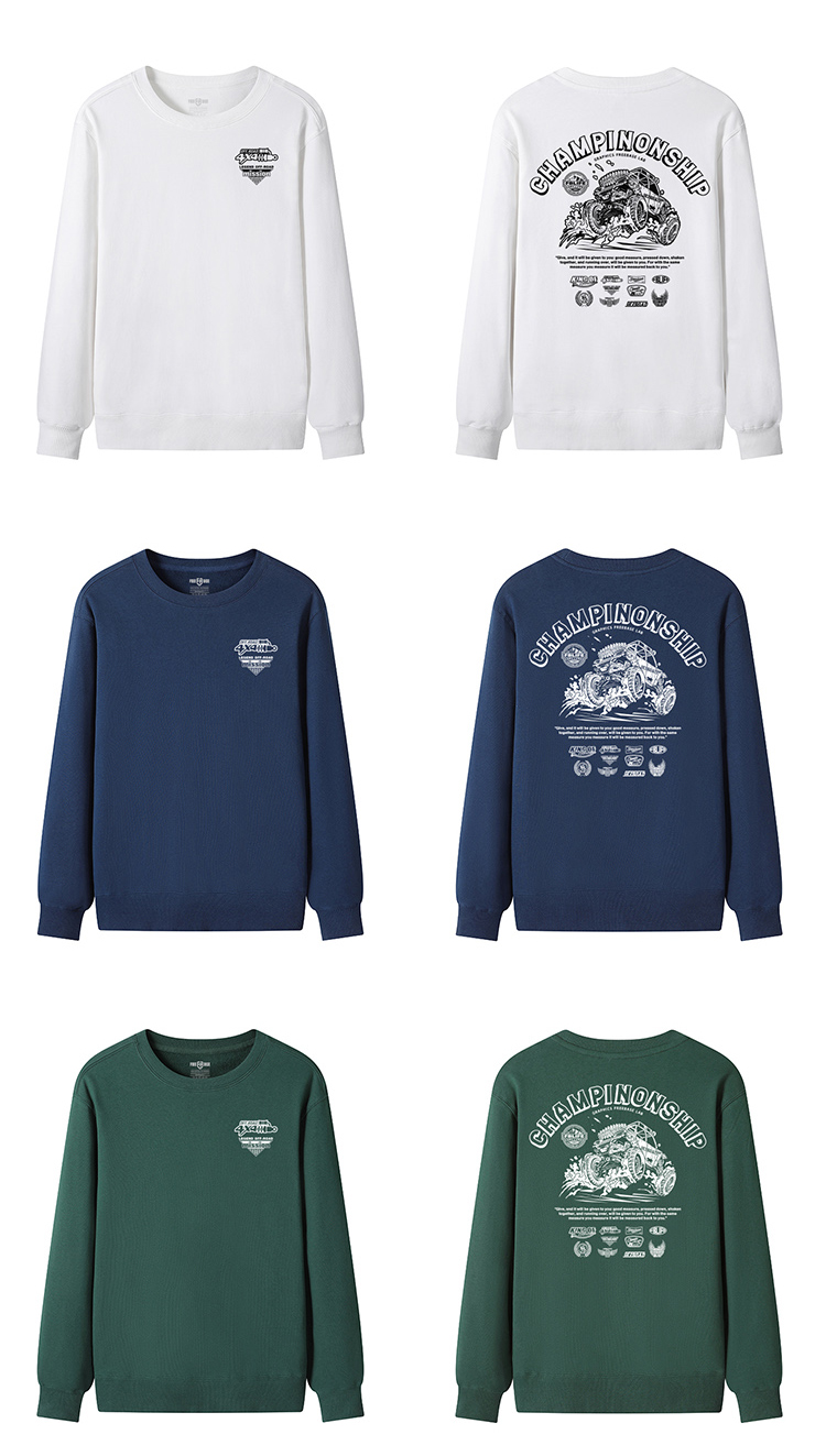 自由基地秋冬新款毛圈圆领套头卫衣原创设计越野车图案情侣通勤 NMT-2062