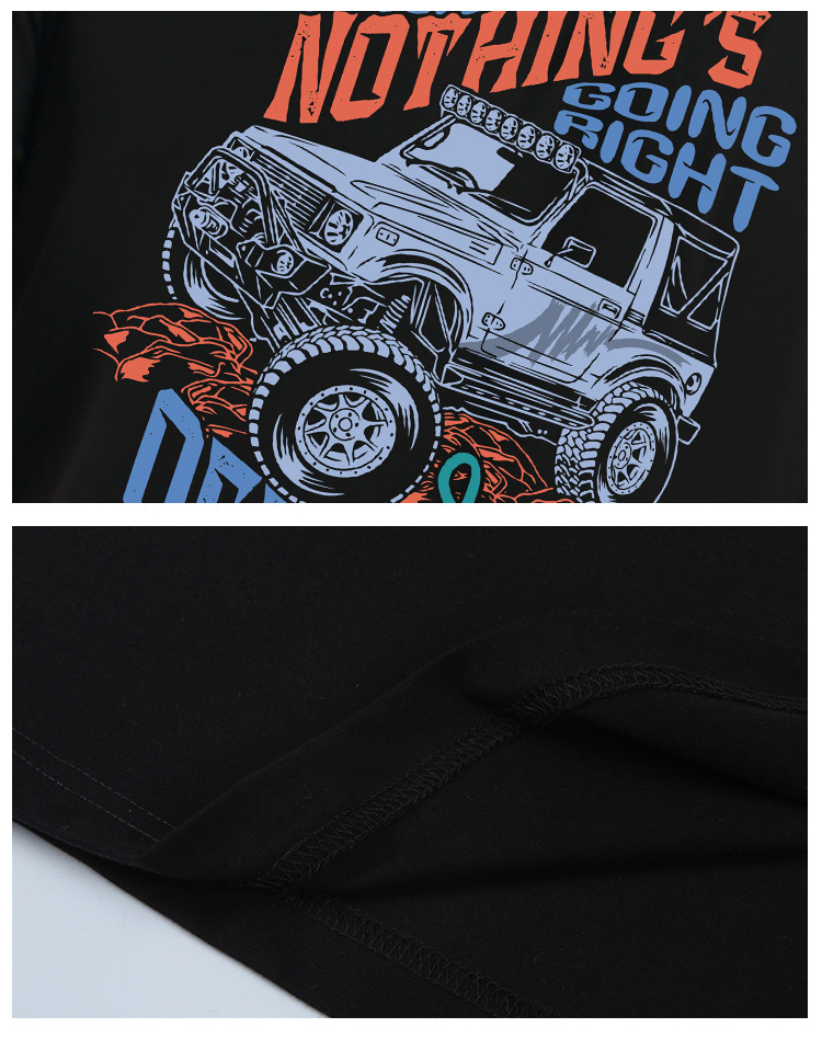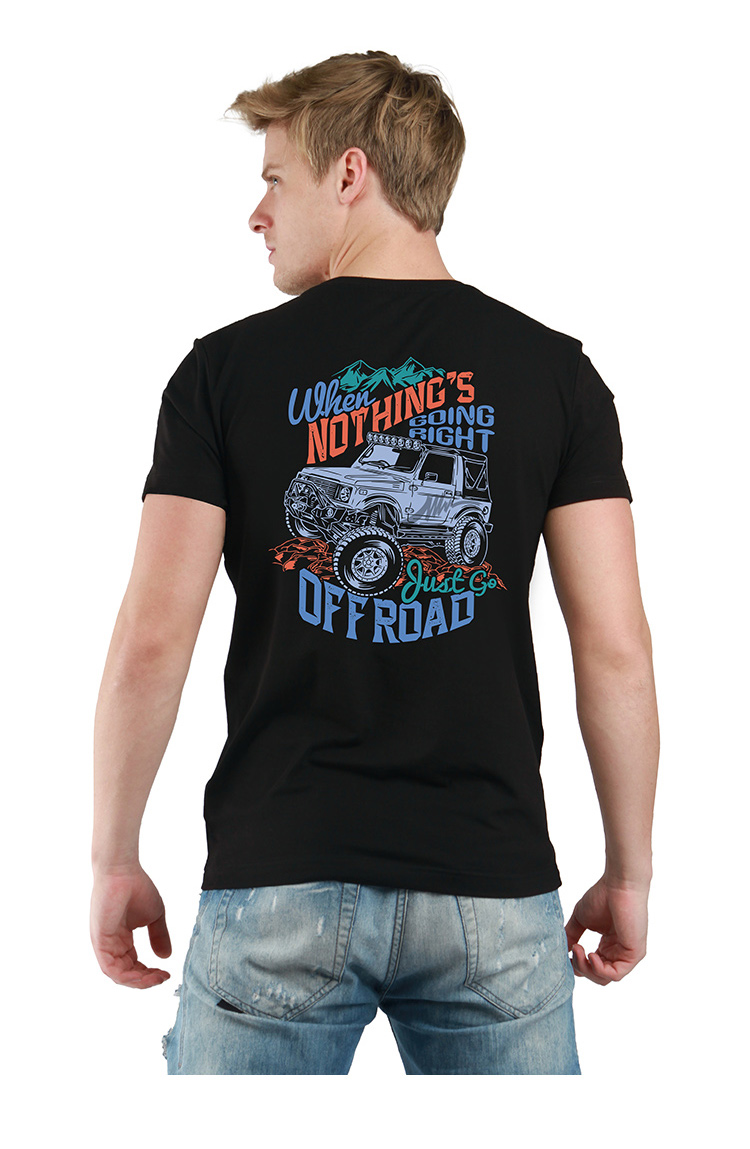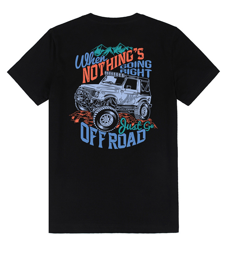 自由基地简约个性越野车图案印花户外休闲T恤夏季潮流复古机车衫 NMT-1663