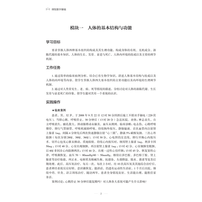 本教材是以高职院校医疗保险实务专业学生在从事医务保险、健康管理等工作中需要的基础知识为线索来设计的。内容突出对学生职业能力的训练,理论知识的选取紧紧围绕工作任务完成的需要来进行,同时又充分考虑了高等职业教育对理论知识学习的需要。并融入大量的微课、视频、案例和在线练习等线上内容,拟为学生展现全方位多形态的教学体验。编写完成后的教材可以作为课堂教学、学生自学、具有较强的实用性,可以成为保险行业业务人员的参考手册。