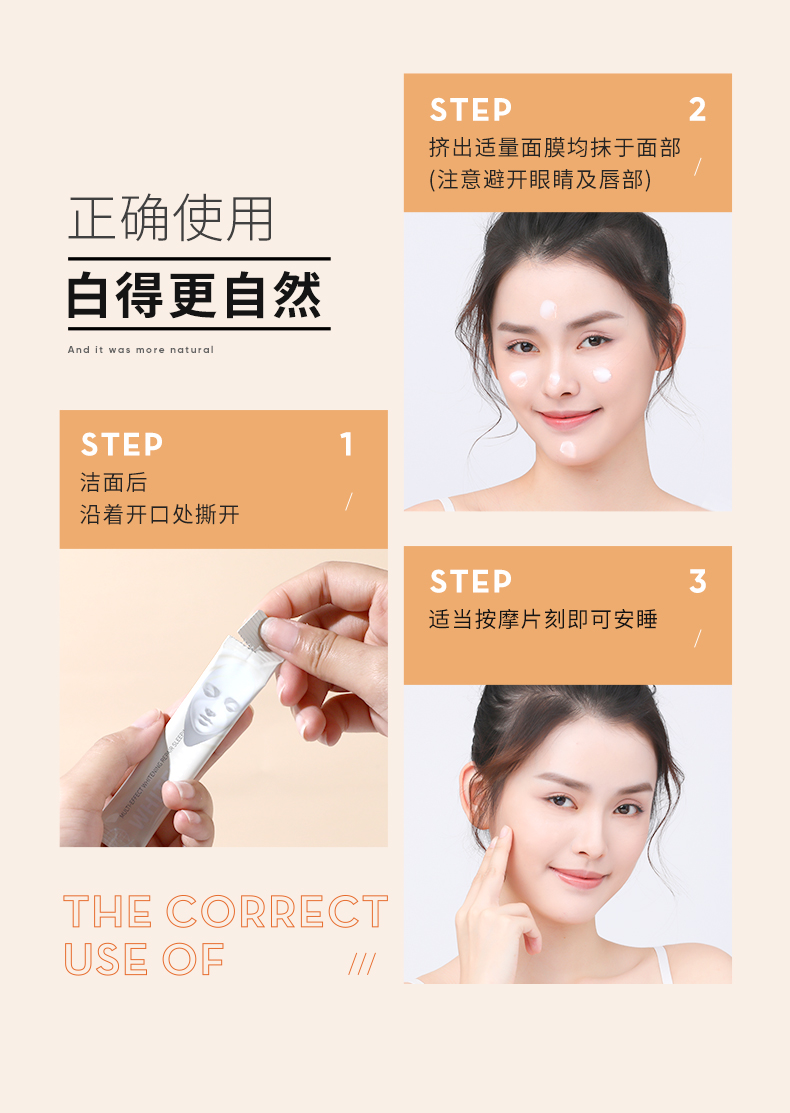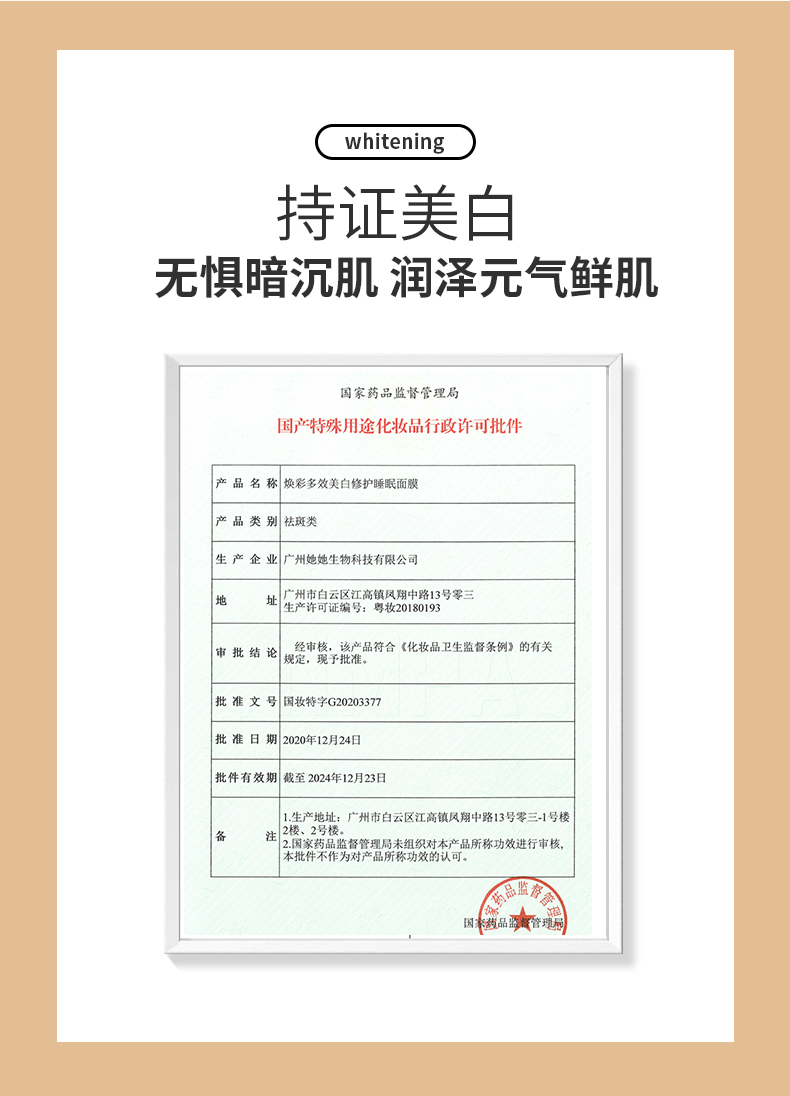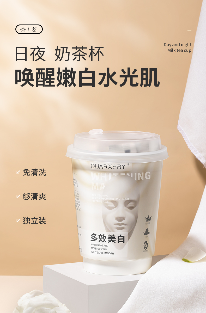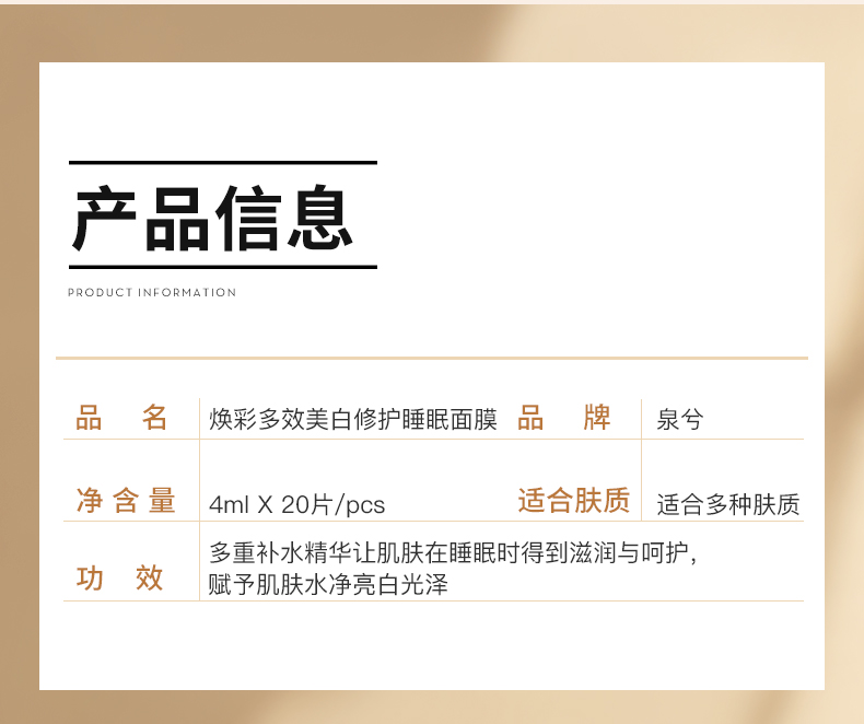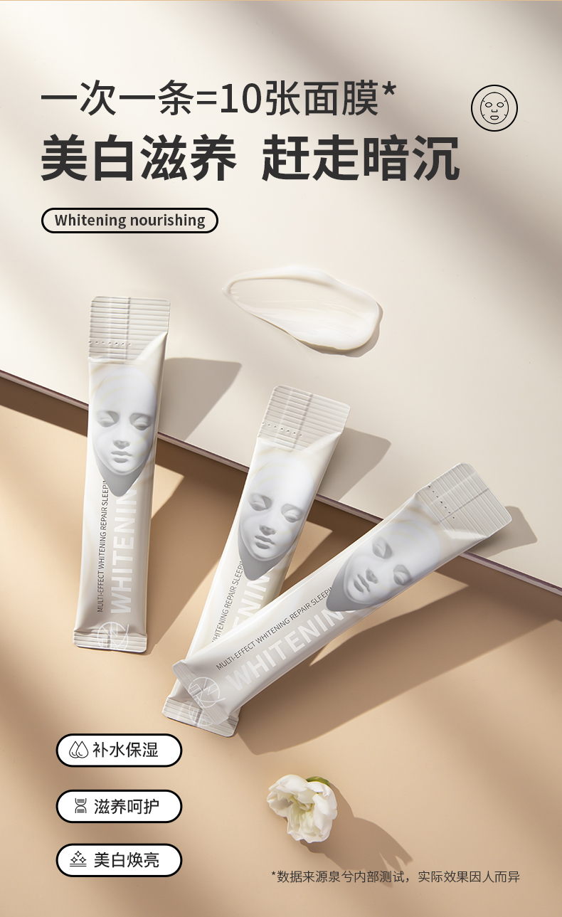 【买1送1】泉兮焕彩多效美白 修护睡眠面膜 持证美白双重美白精华 让皮肤白如灯泡 一次一条省心 免洗抹上就睡