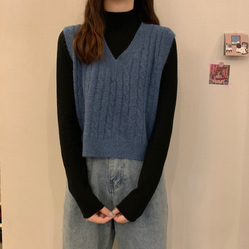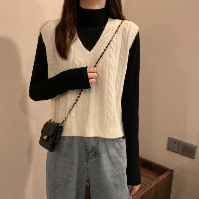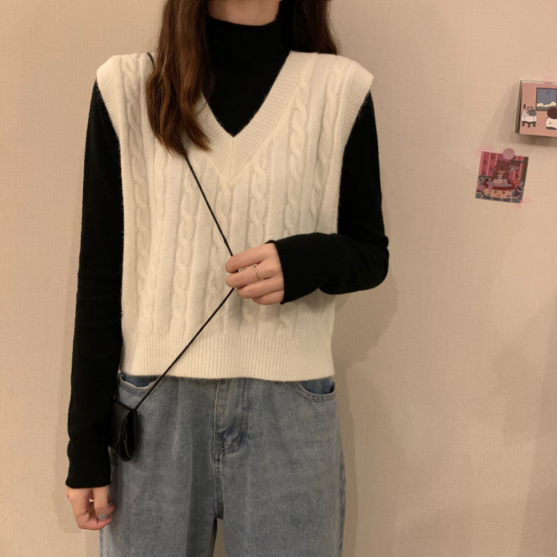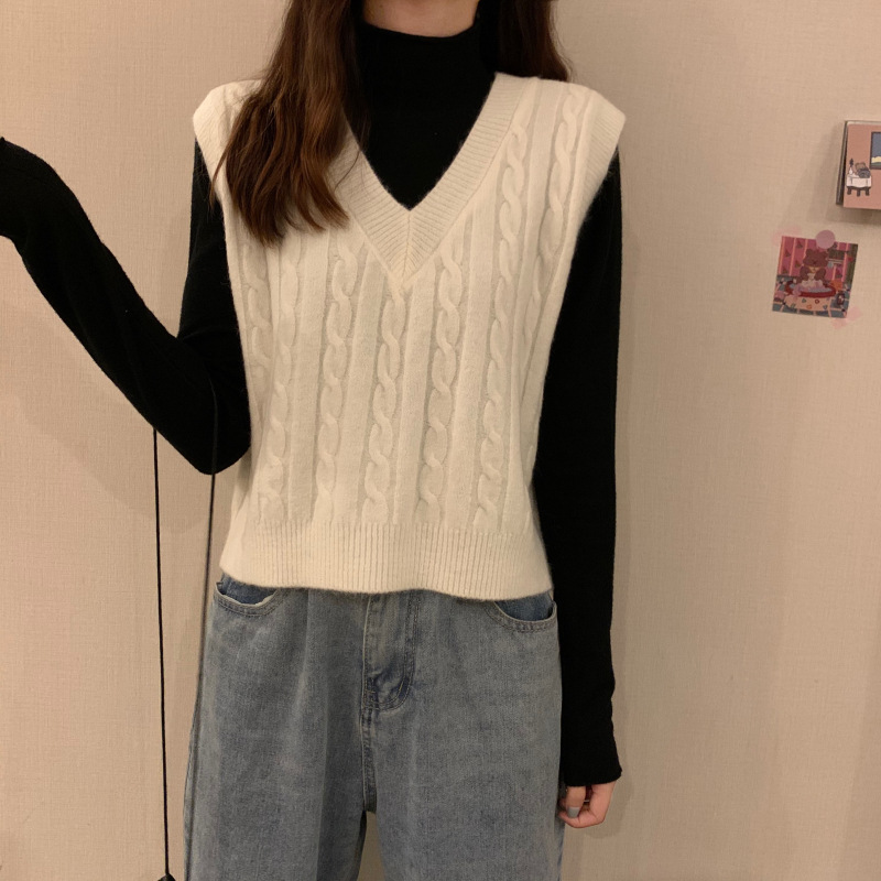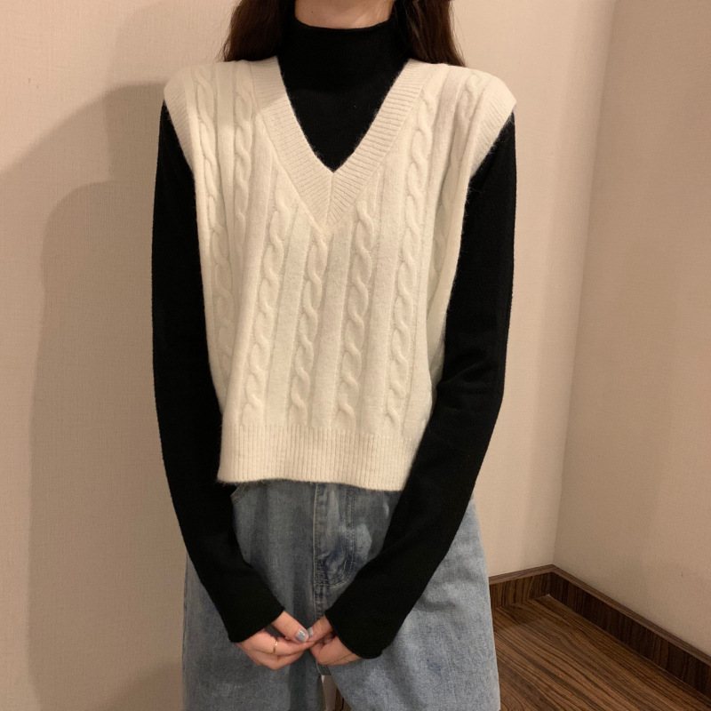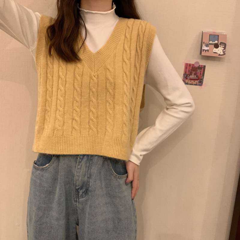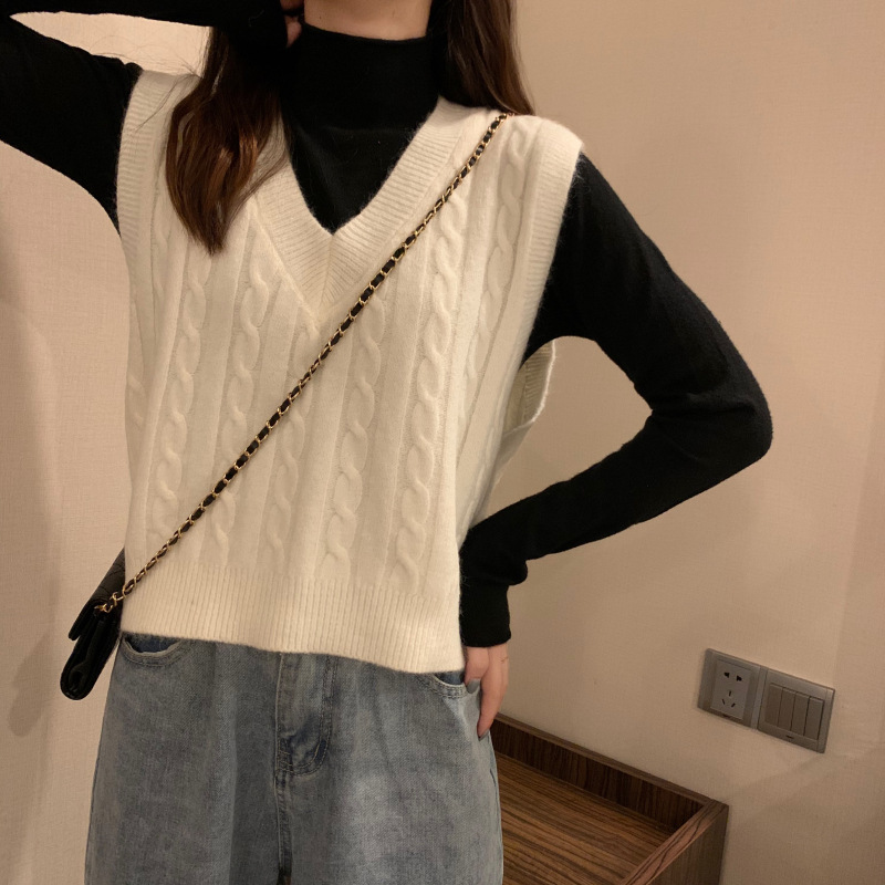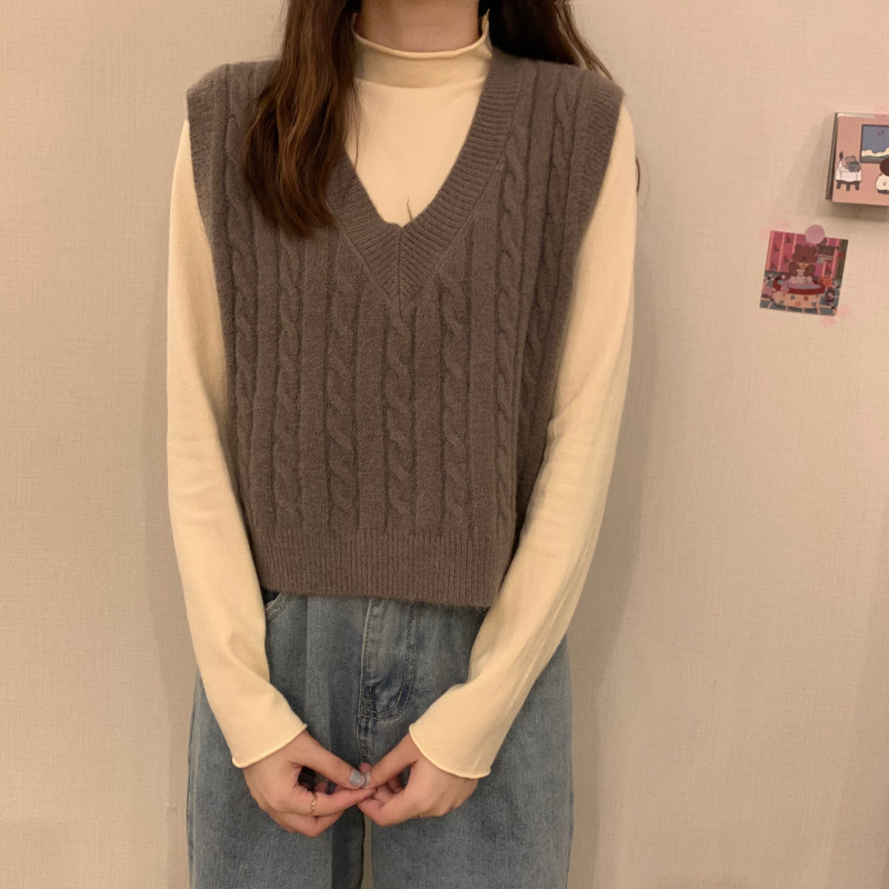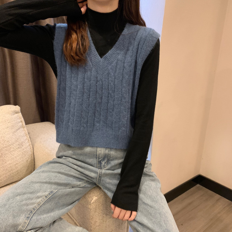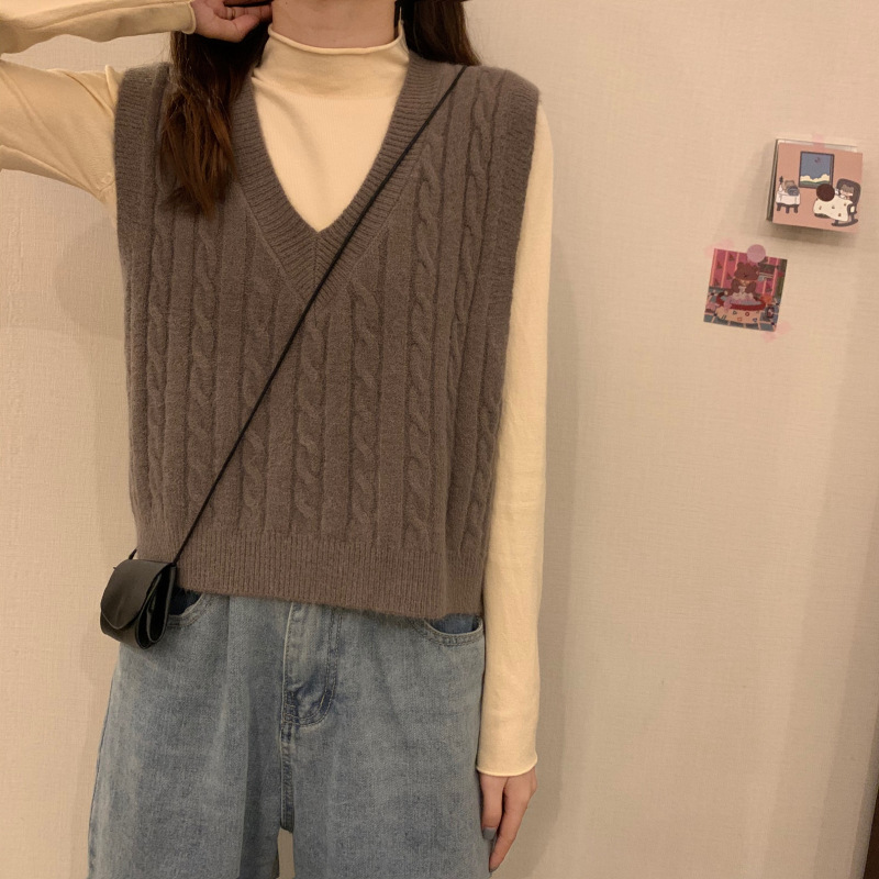 【复古港味设计风格,凸显了浓郁的怀旧情怀~!】复古港味V领,麻花针织衫马甲 2023女装秋季新款,宽松外穿薄款毛衣lm