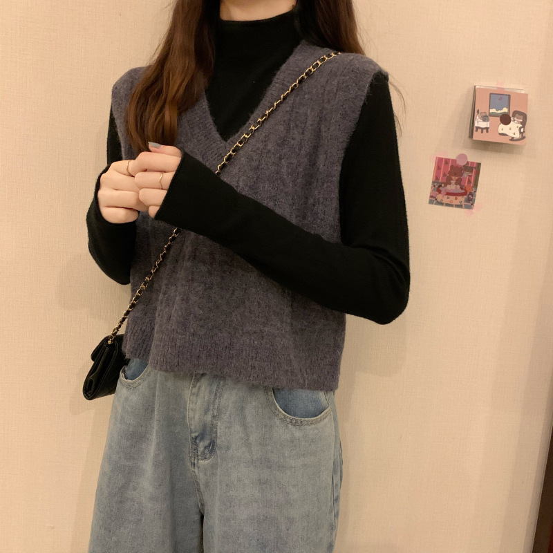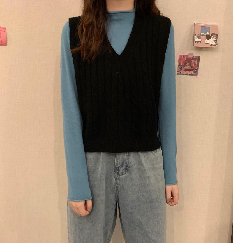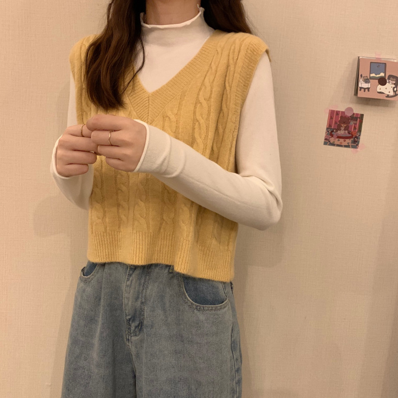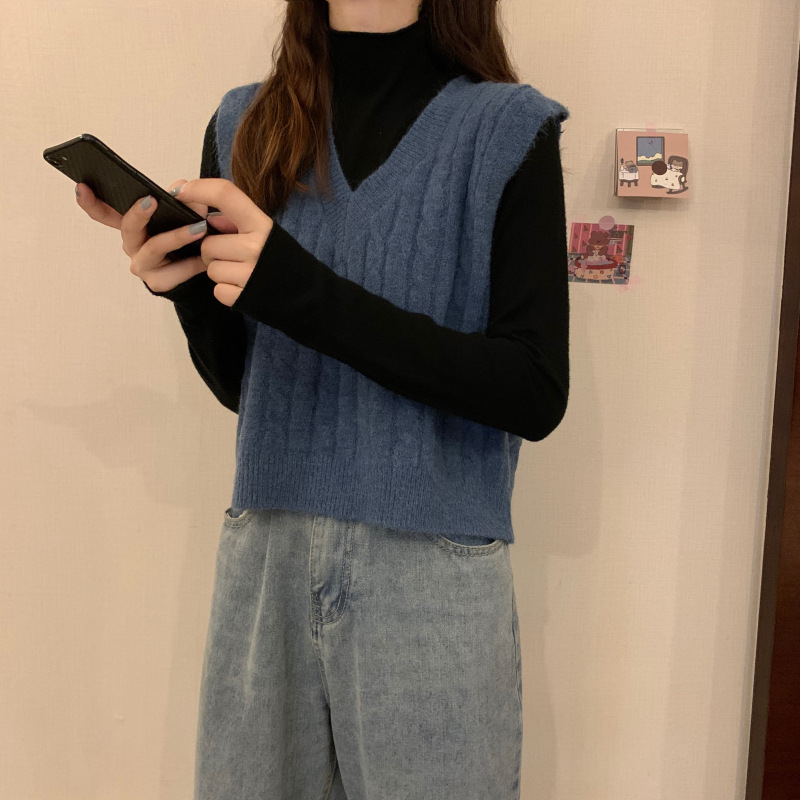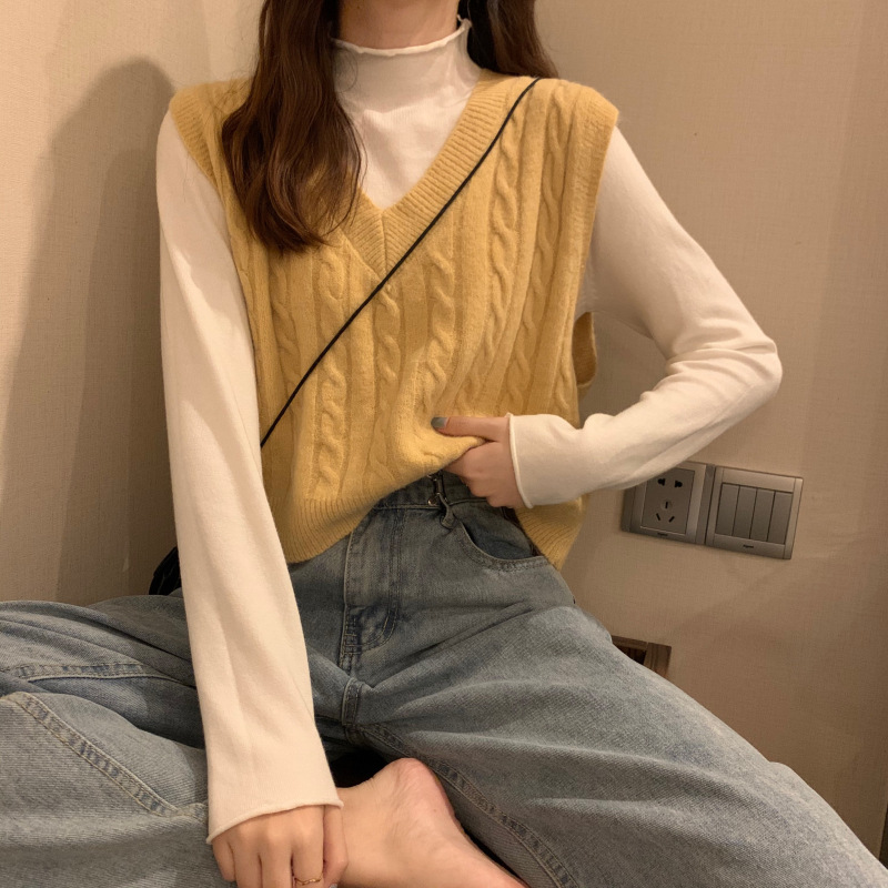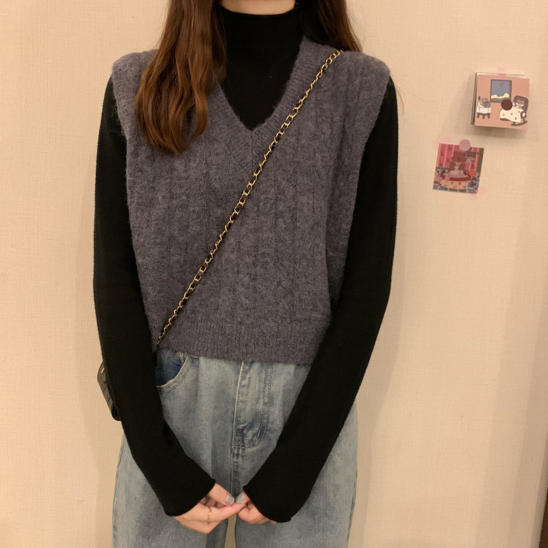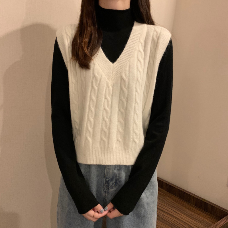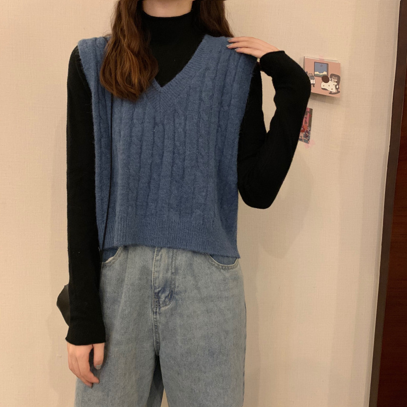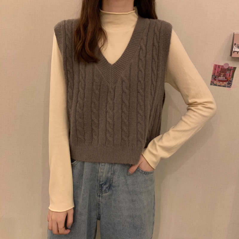 【复古港味设计风格,凸显了浓郁的怀旧情怀~!】复古港味V领,麻花针织衫马甲 2023女装秋季新款,宽松外穿薄款毛衣lm