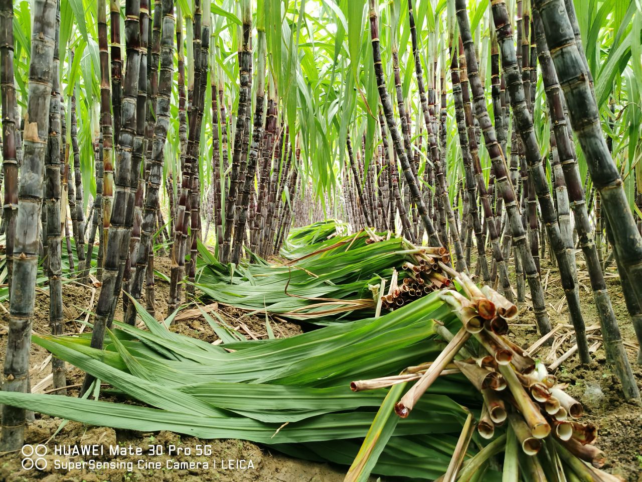 最后再经历四次的撇老叶。历经270天,一棵有机甘蔗就成熟了