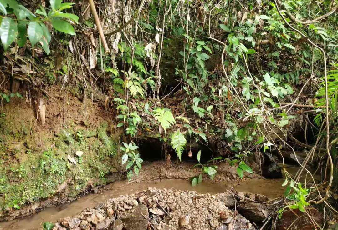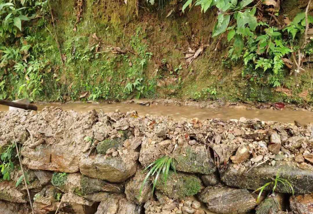 人工修砌山泉水沟渠,引水灌溉蔗田。