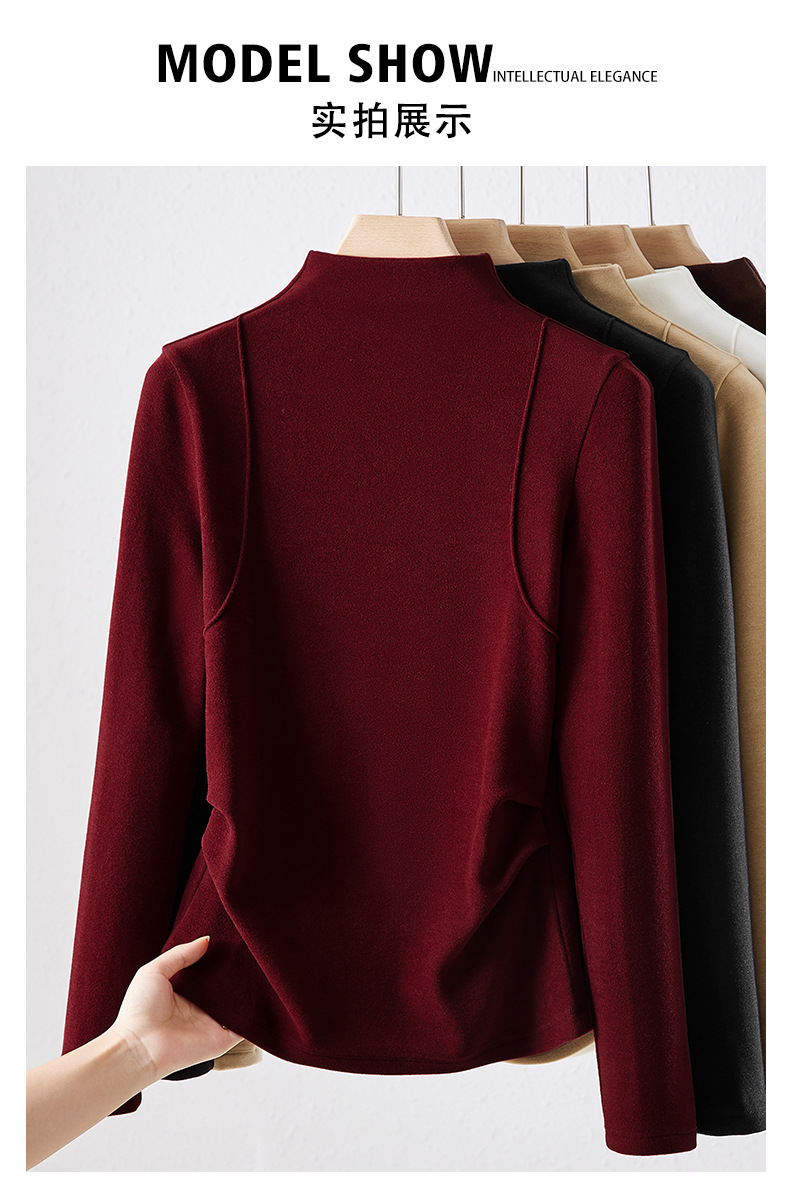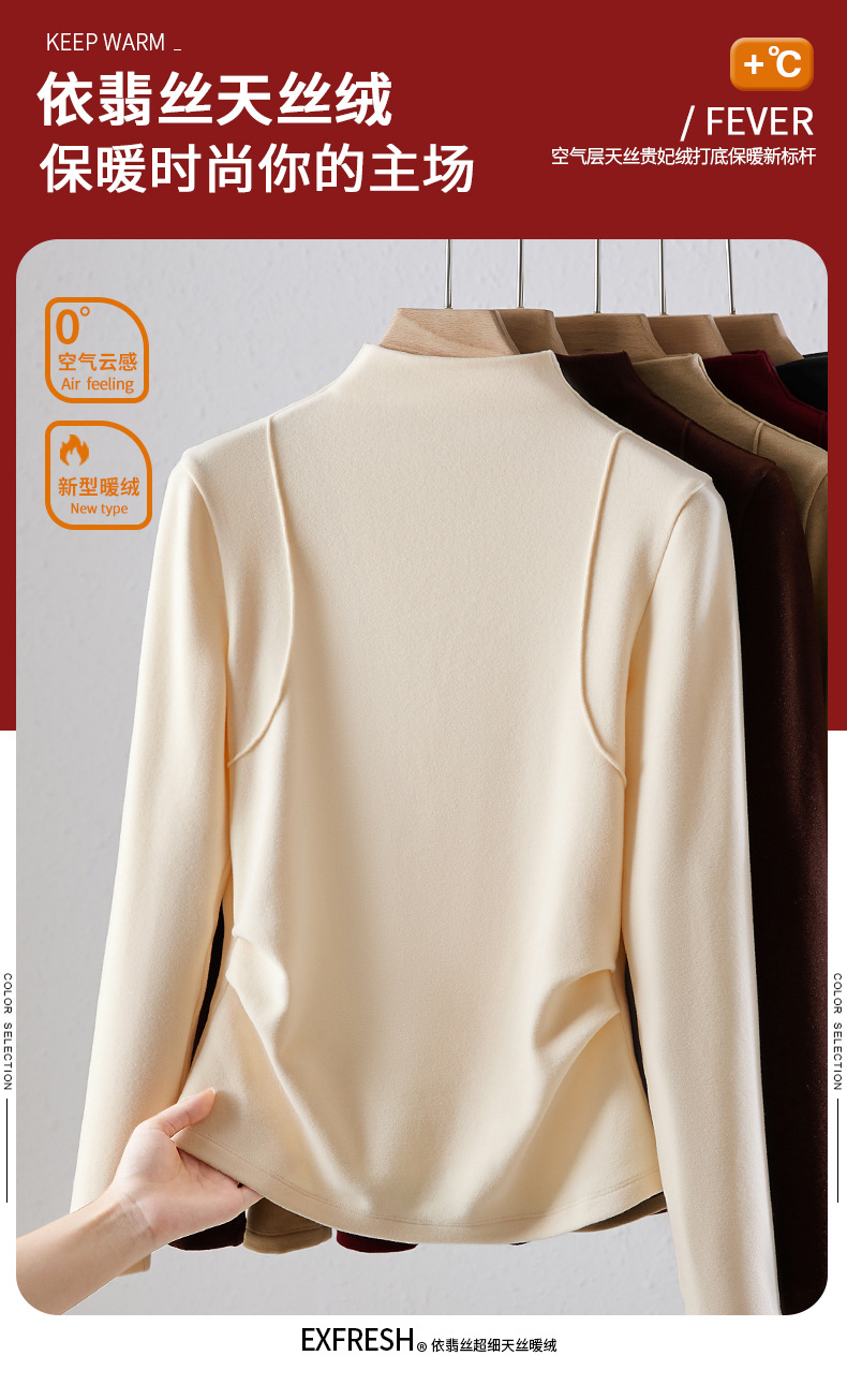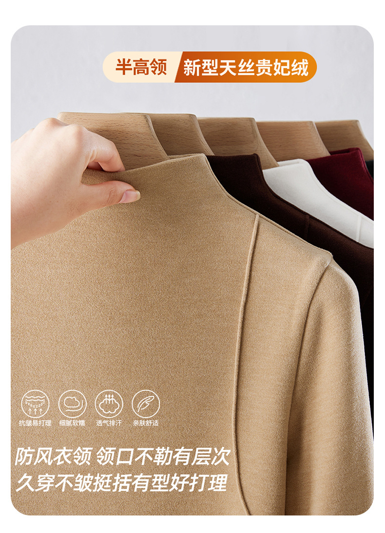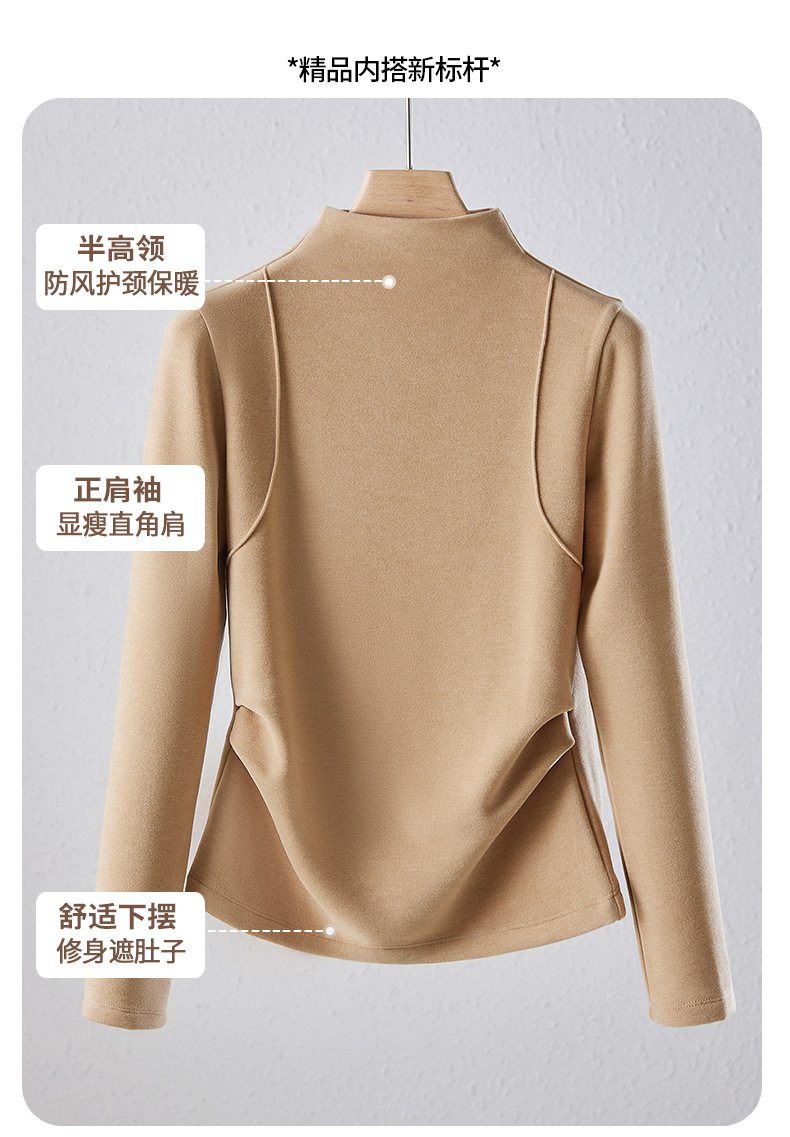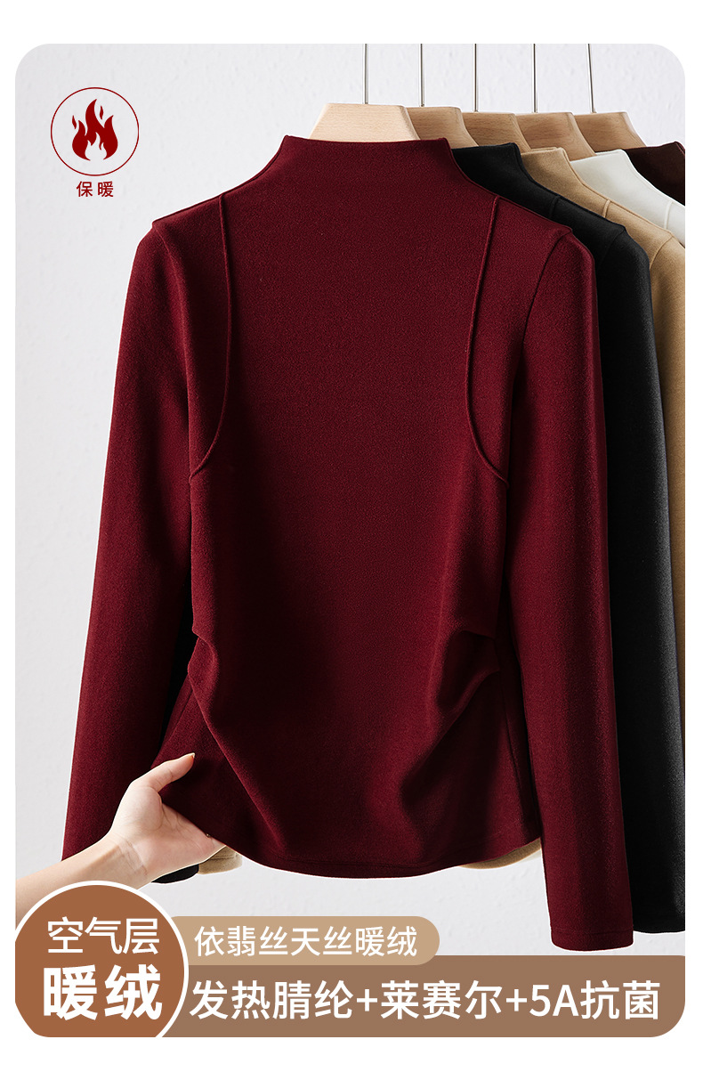 「自j」全新升级【铂金会员119/天猫159/差价40】(02505)洛诗琳半高领空气层暖绒打底衫2025秋冬加绒高级感打底上衣