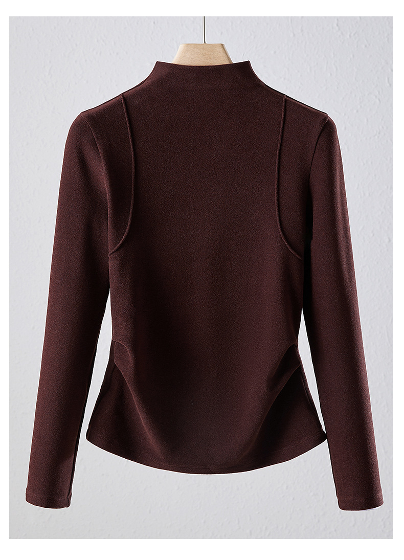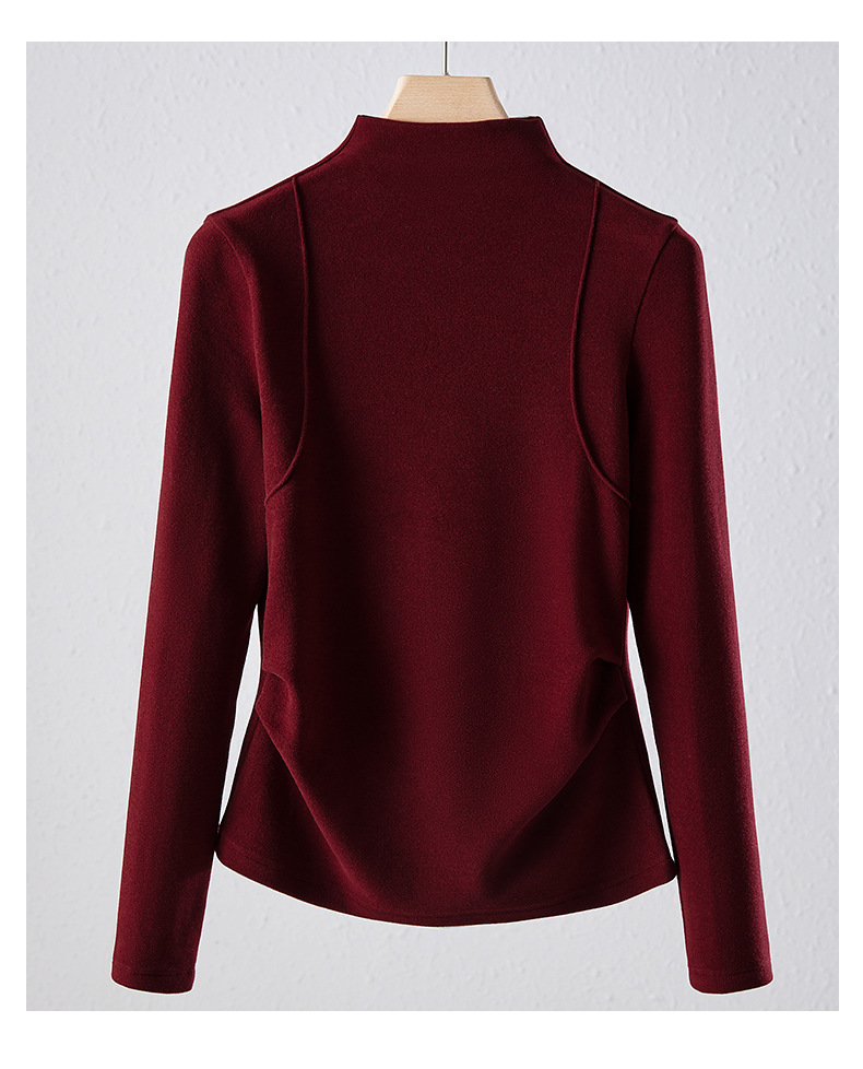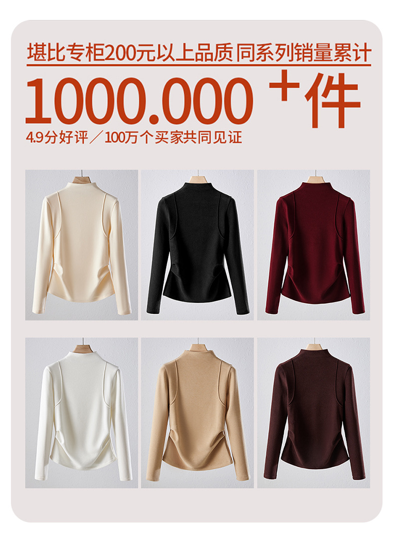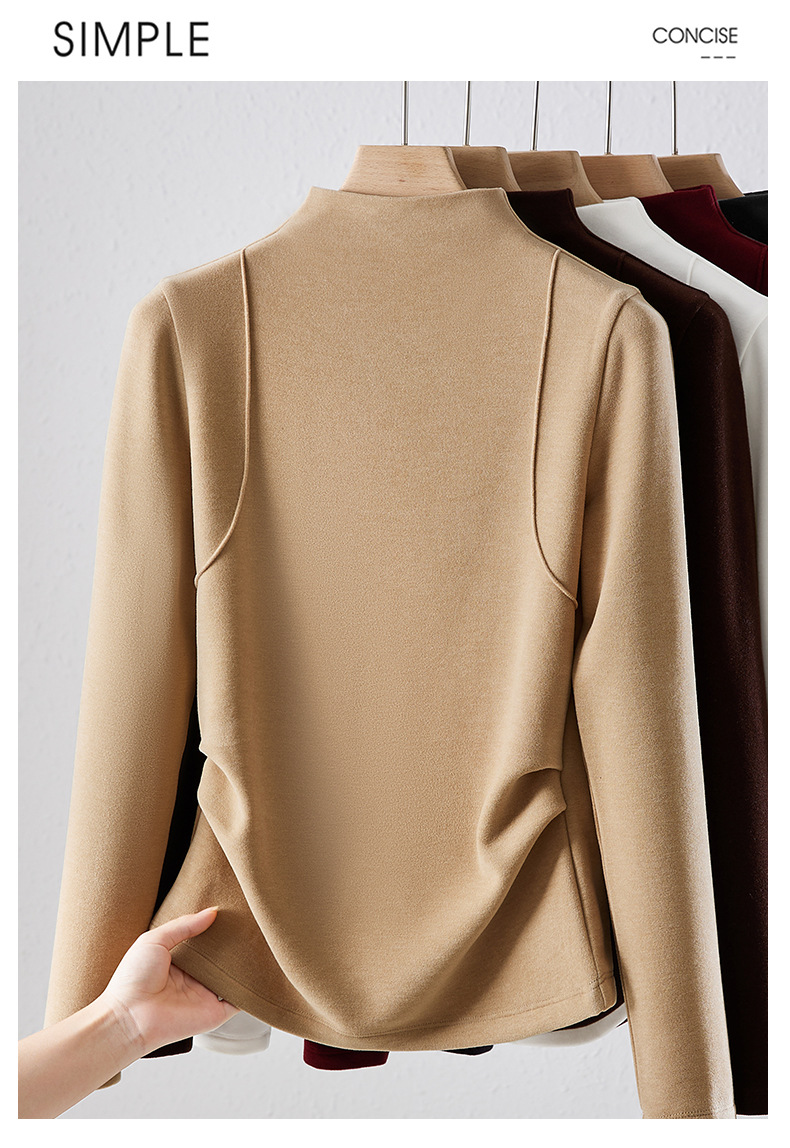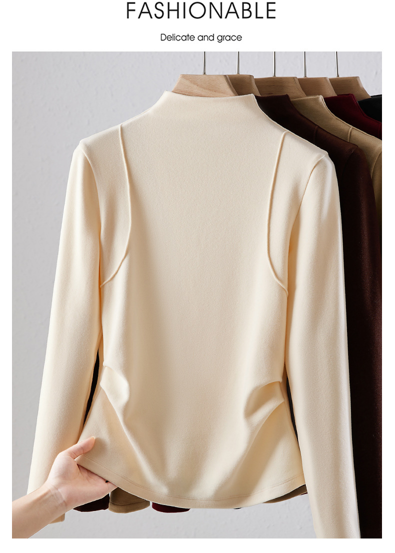 「自j」全新升级【铂金会员119/天猫159/差价40】(02505)洛诗琳半高领空气层暖绒打底衫2025秋冬加绒高级感打底上衣