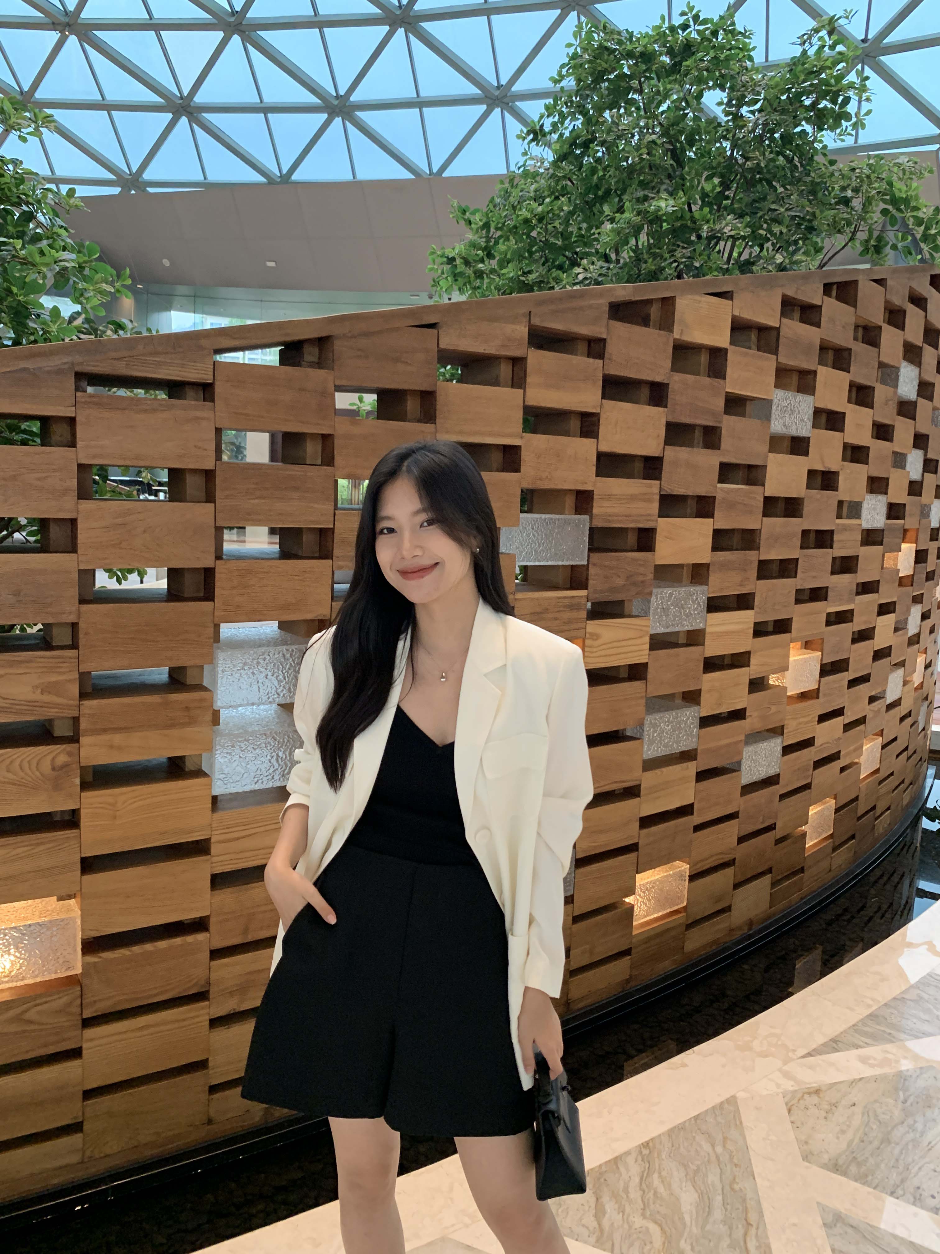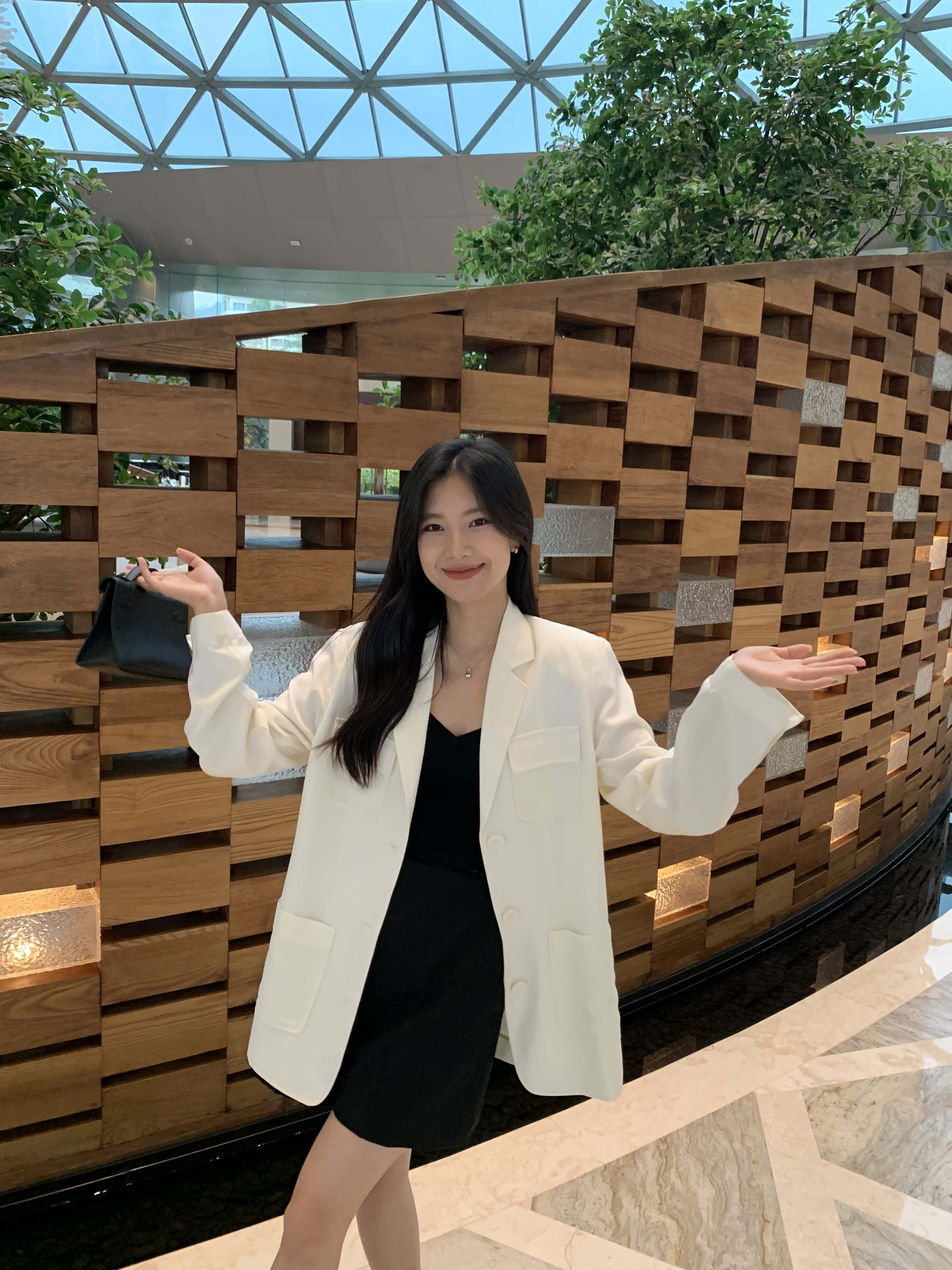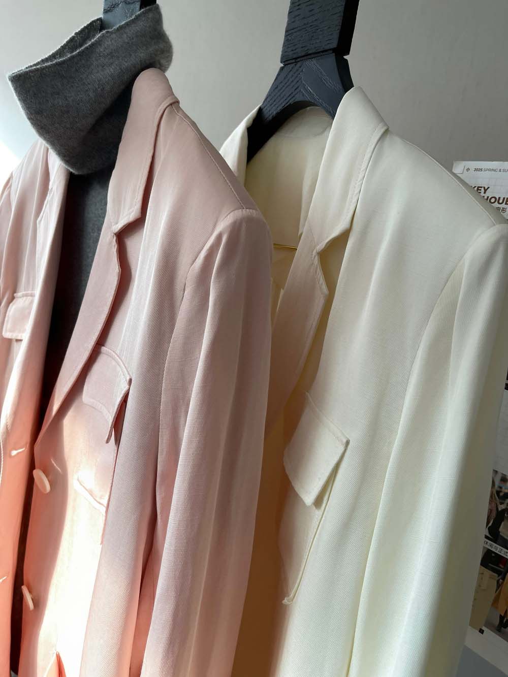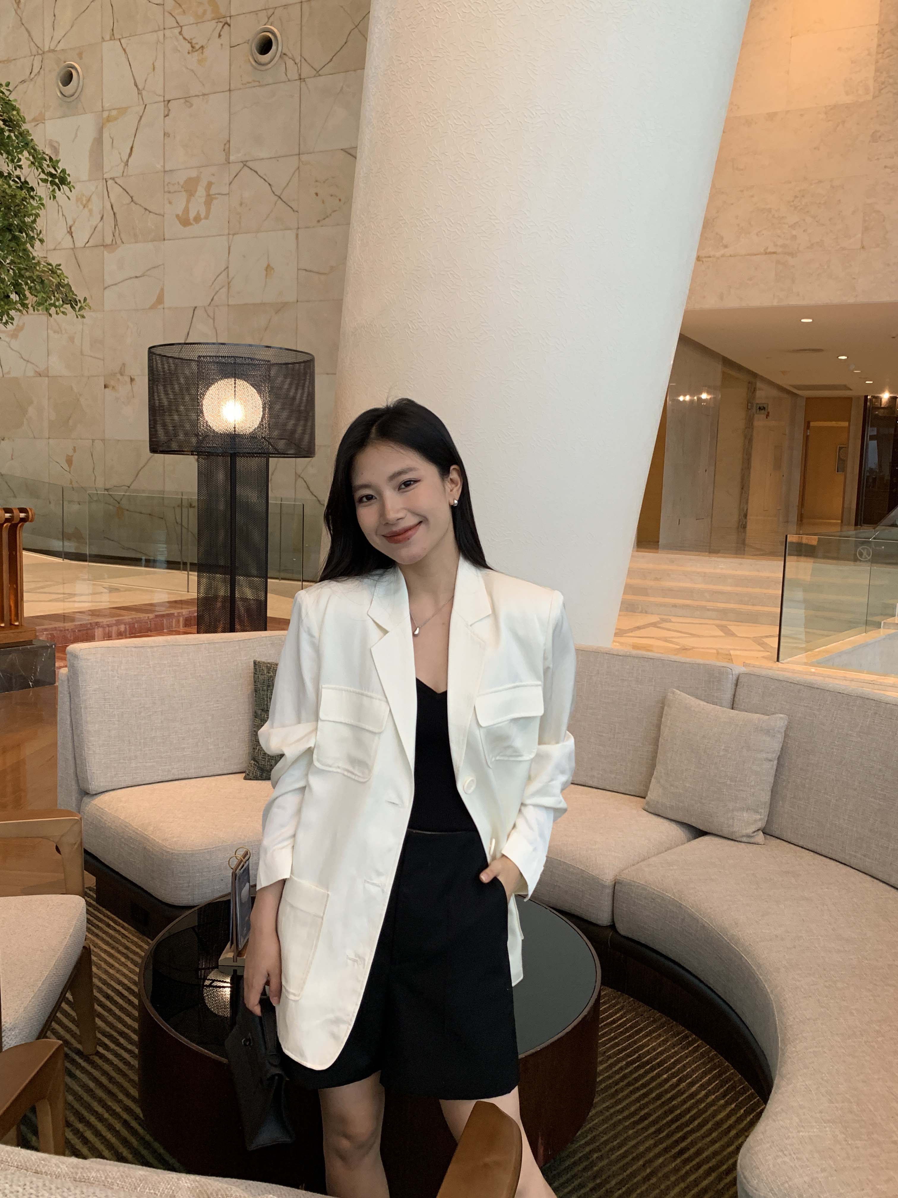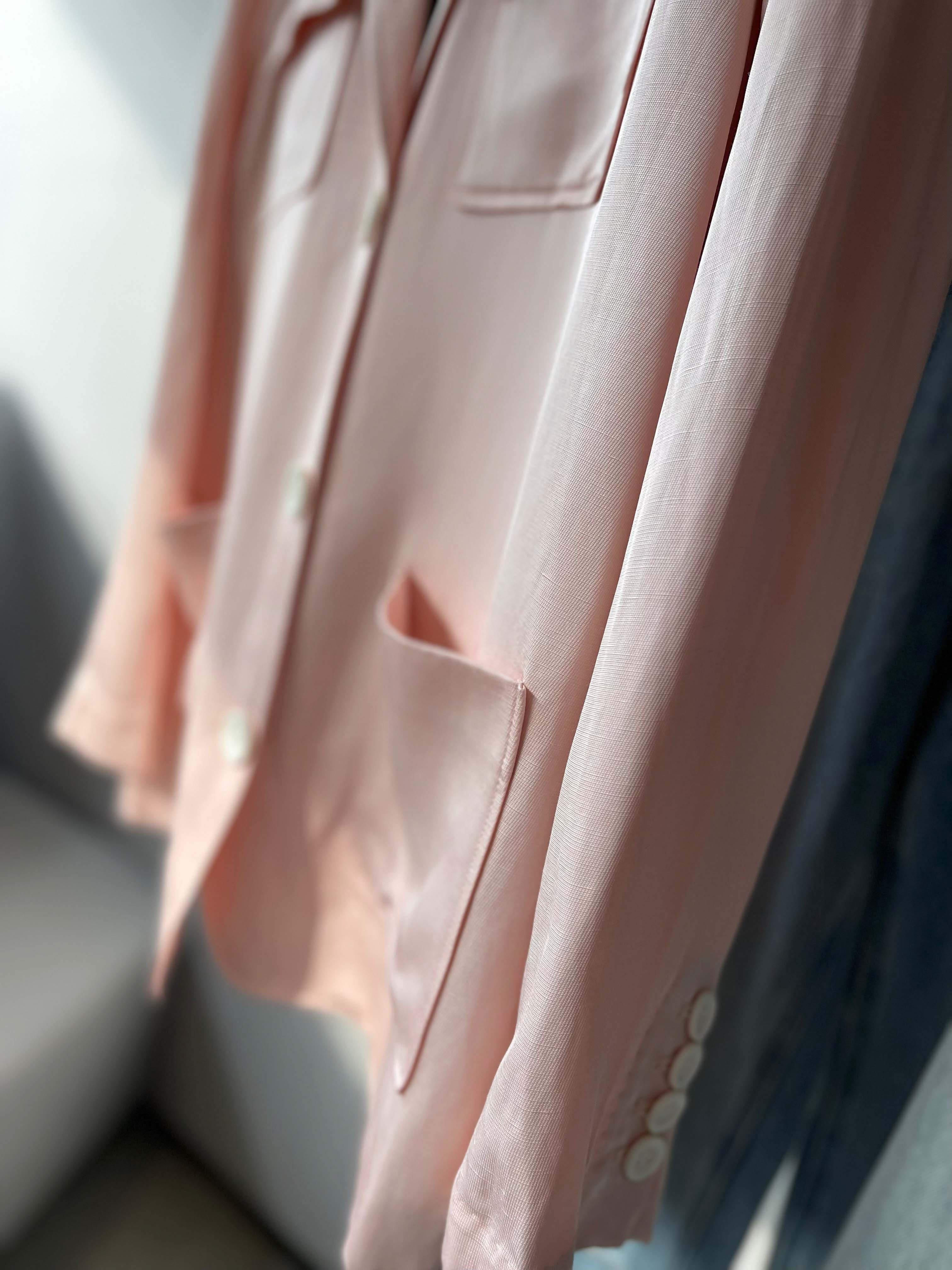 选用天丝亚麻斜纹,面料挺括有品质感,利落帅气。