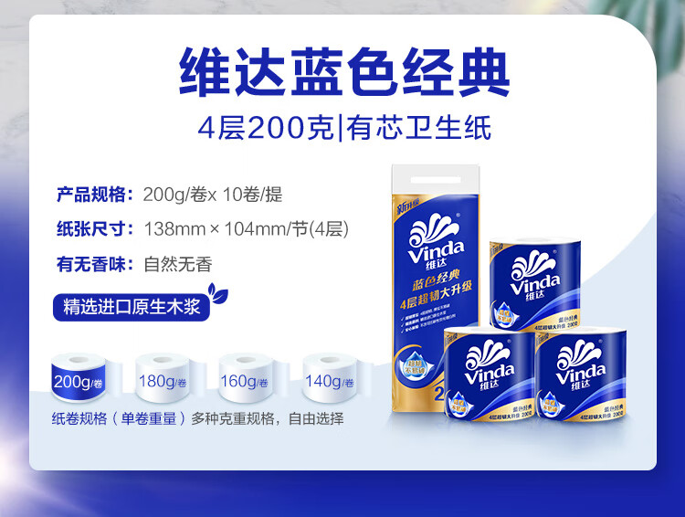【仅限自提】维达卷纸 蓝色经典200克 10卷