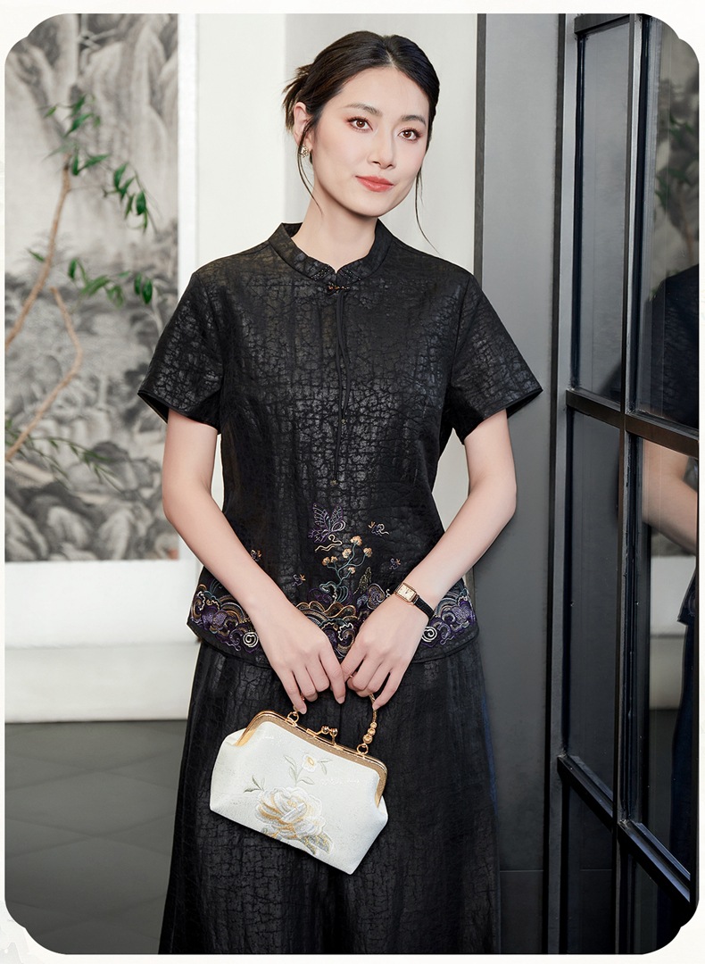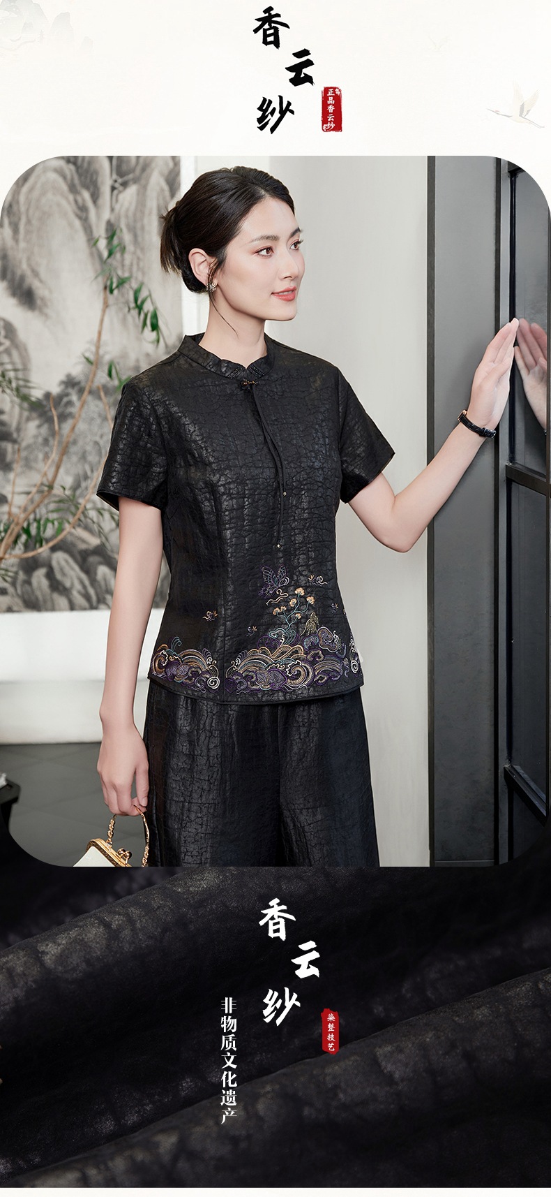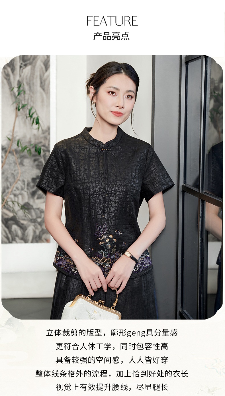 KQ-54817+54816龟裂纹品质显年轻夏季香云纱真丝桑蚕丝收腰显瘦气质两件套装