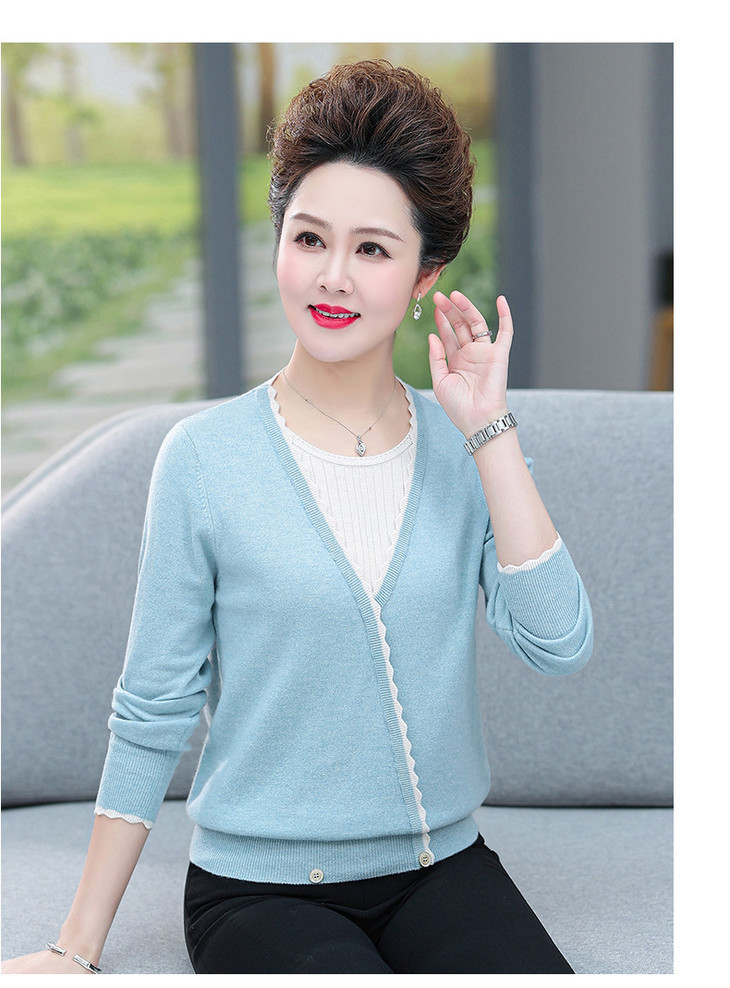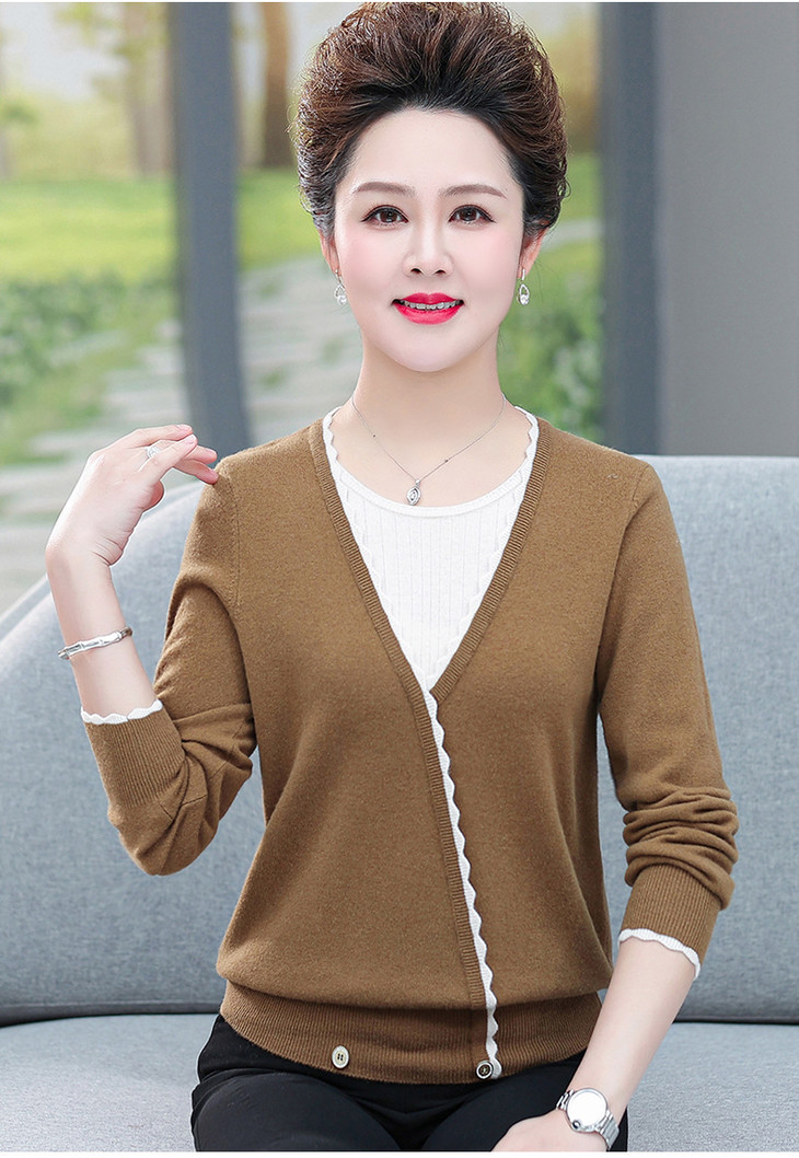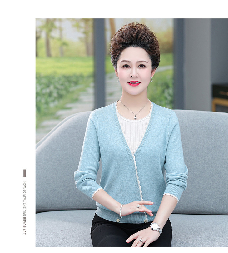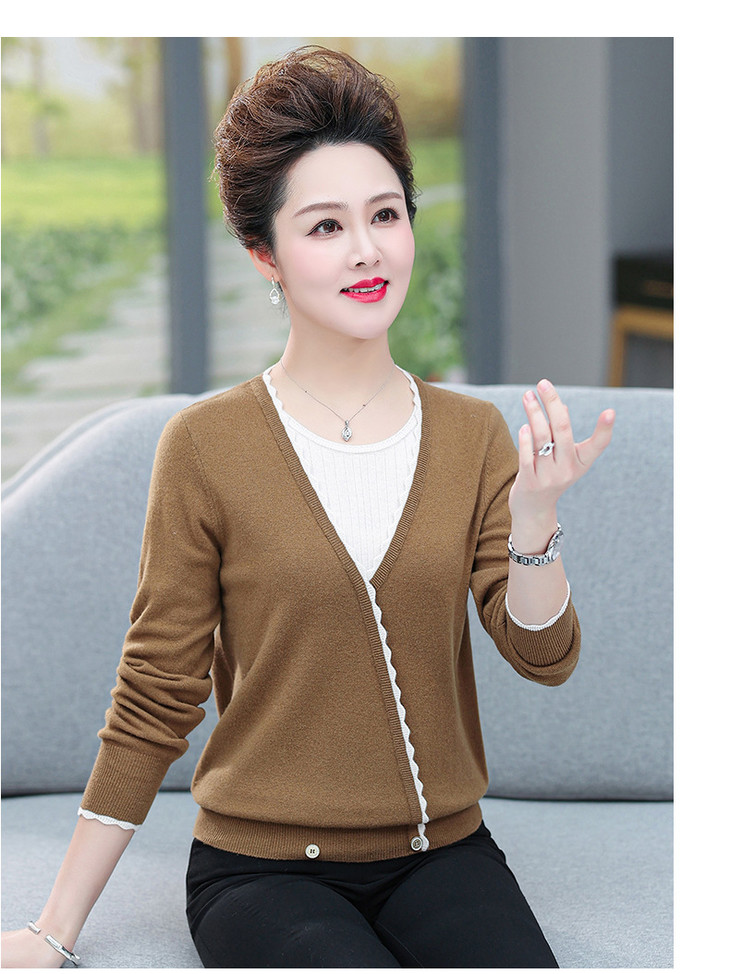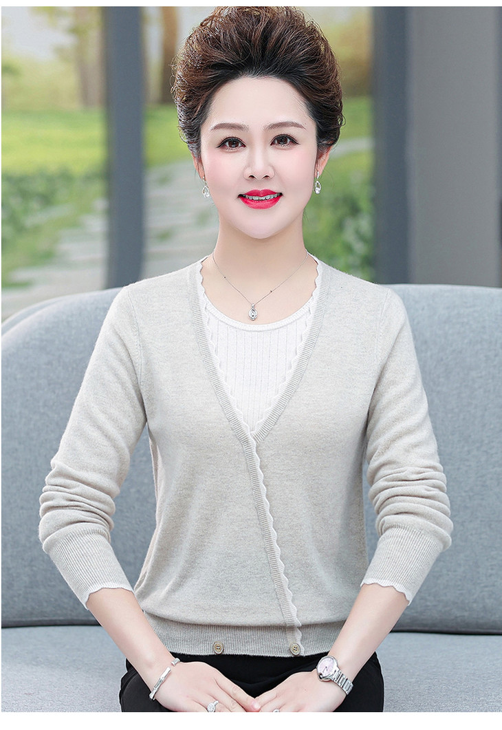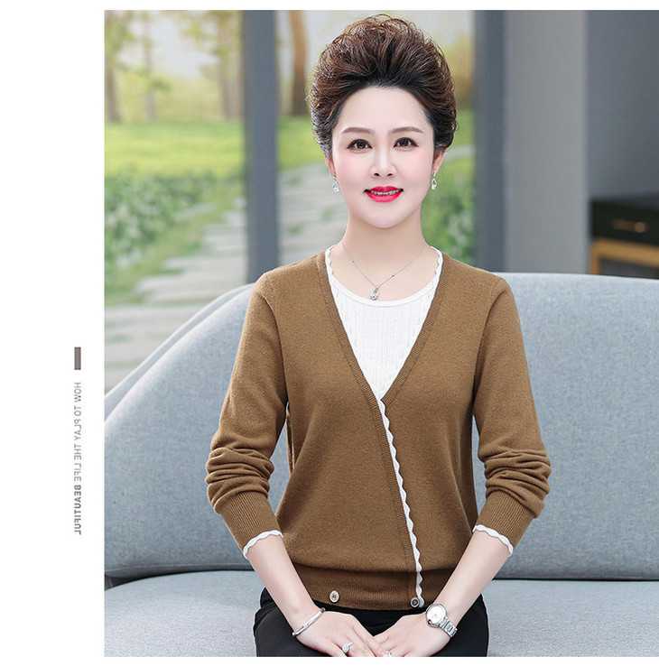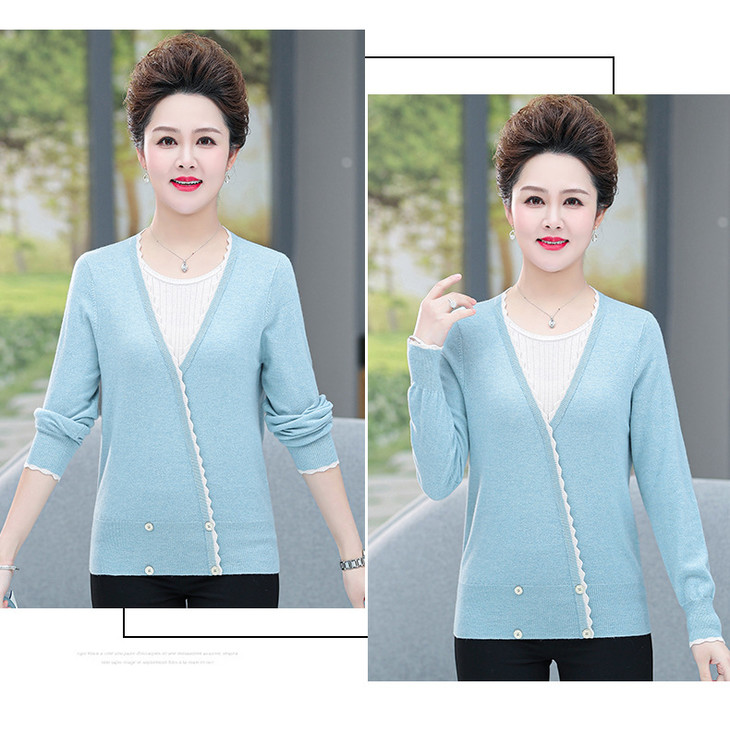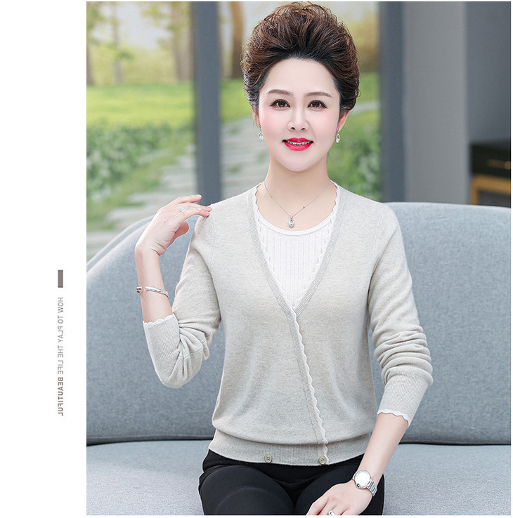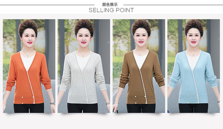 QY TT21397高贵假二件纯色妈妈装羊毛衫