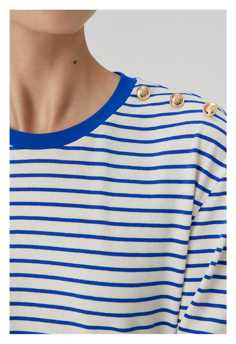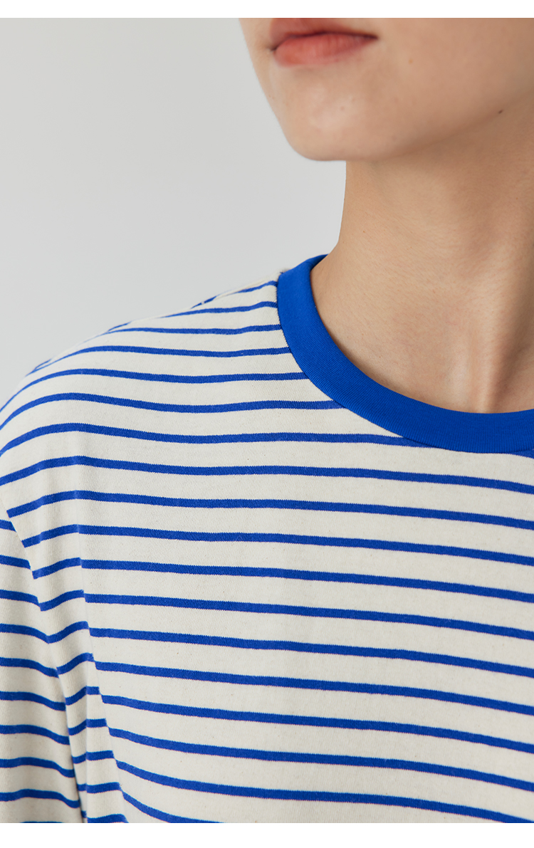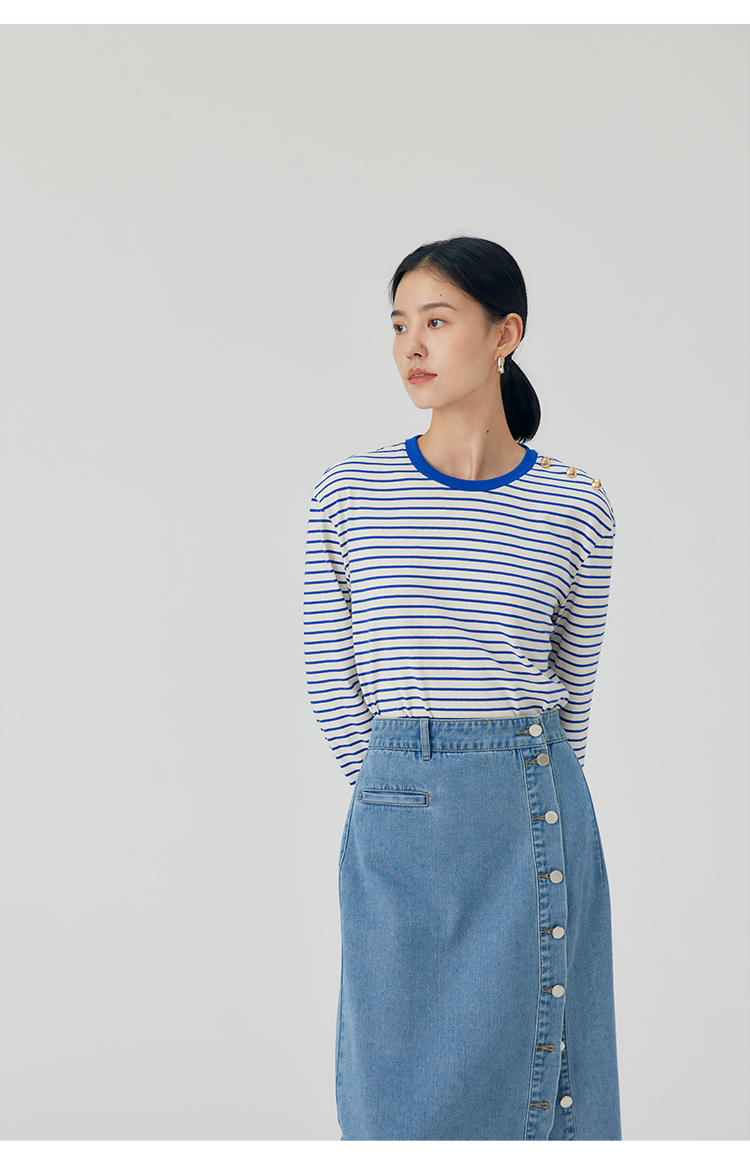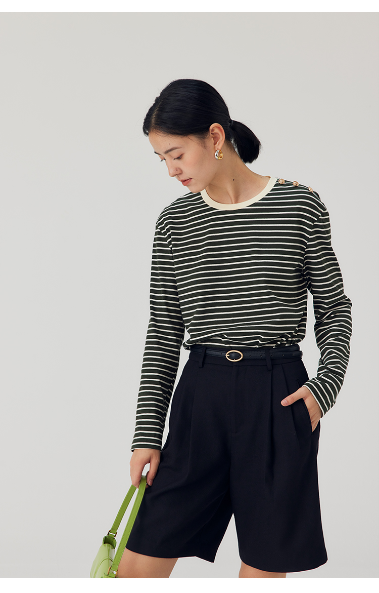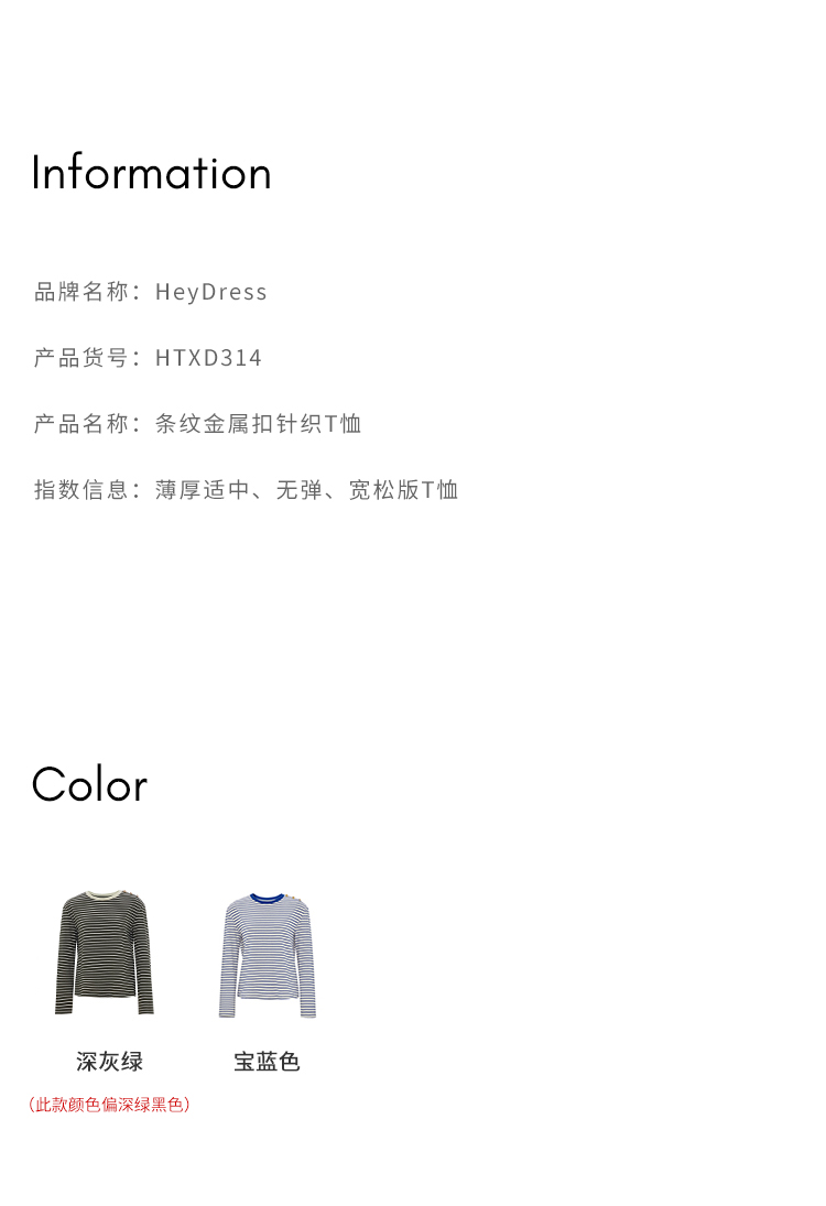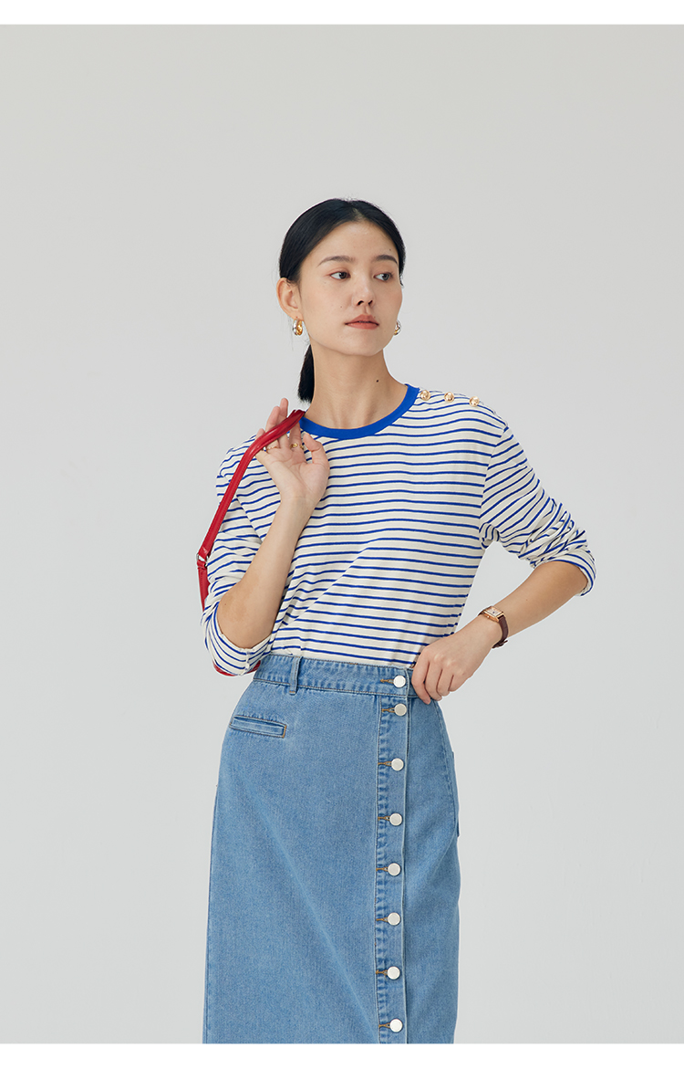 HeyDress条纹针织衫女秋季法式撞色条纹设计感长袖纯棉t恤打底衫