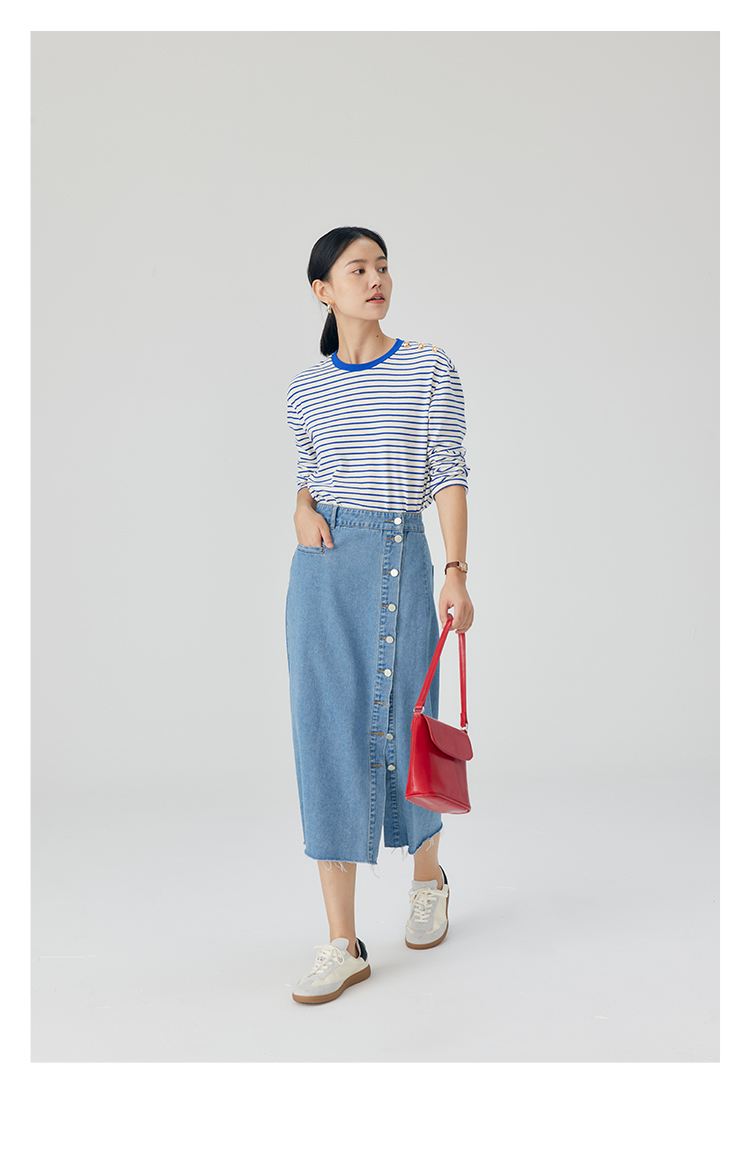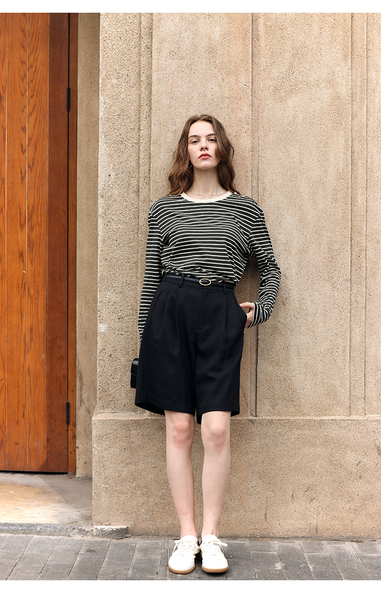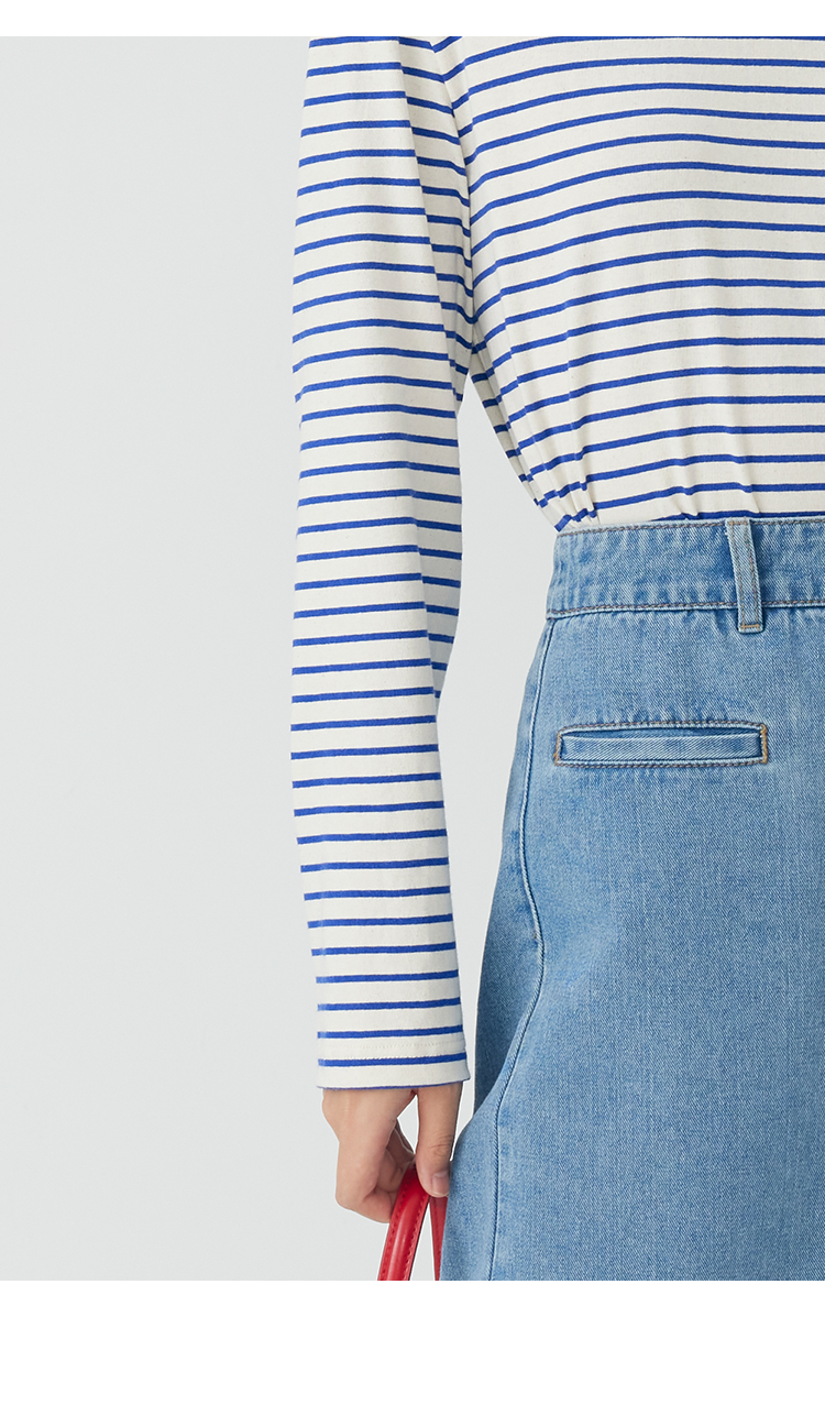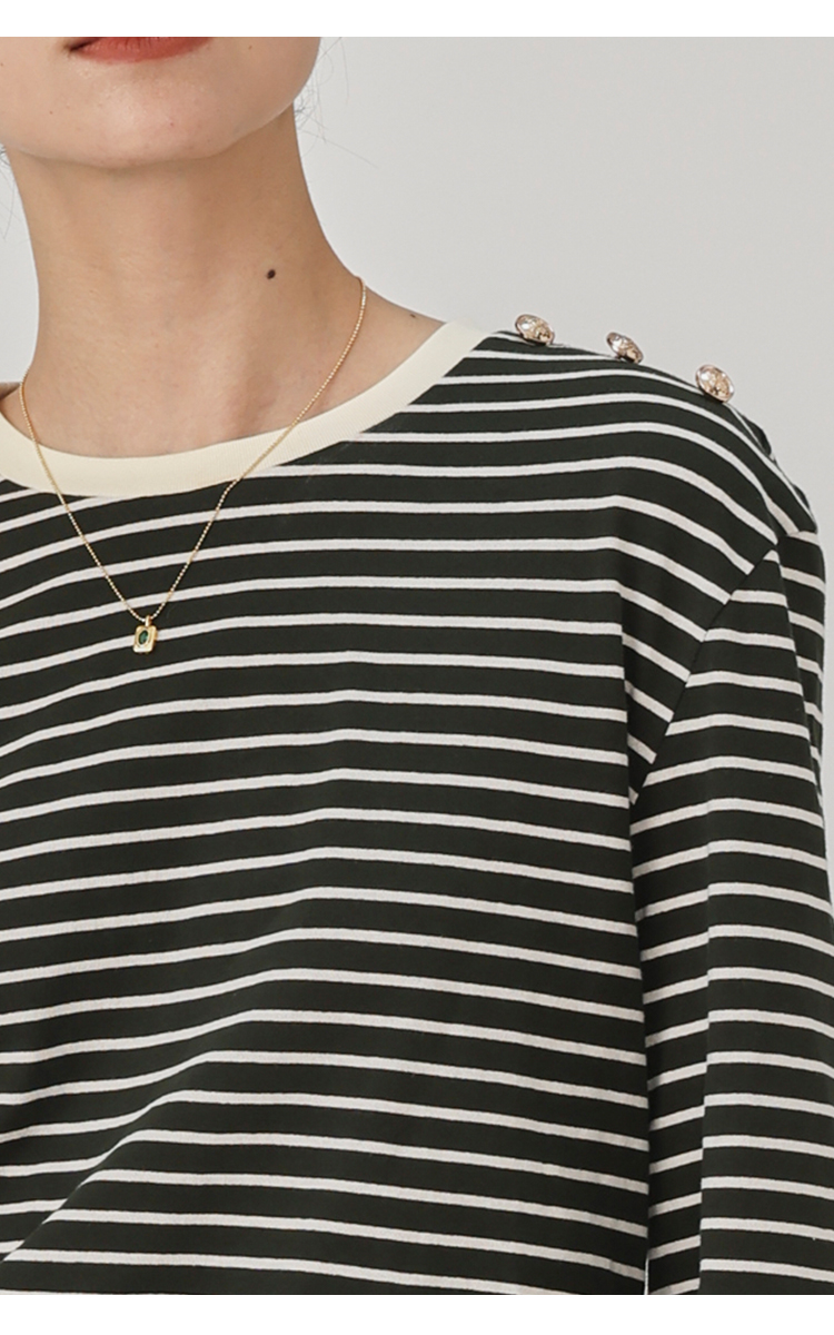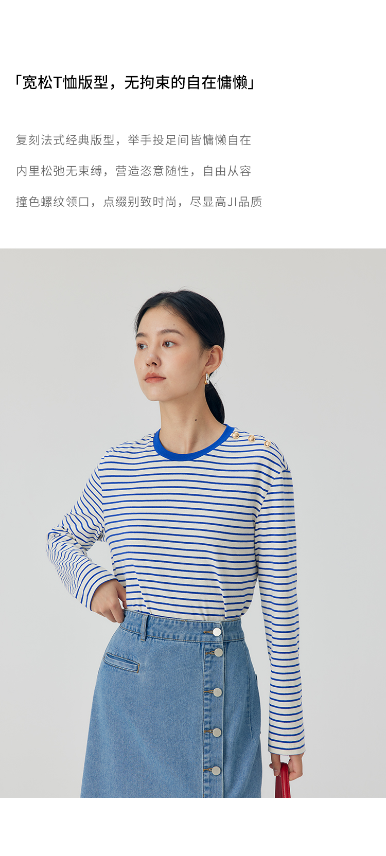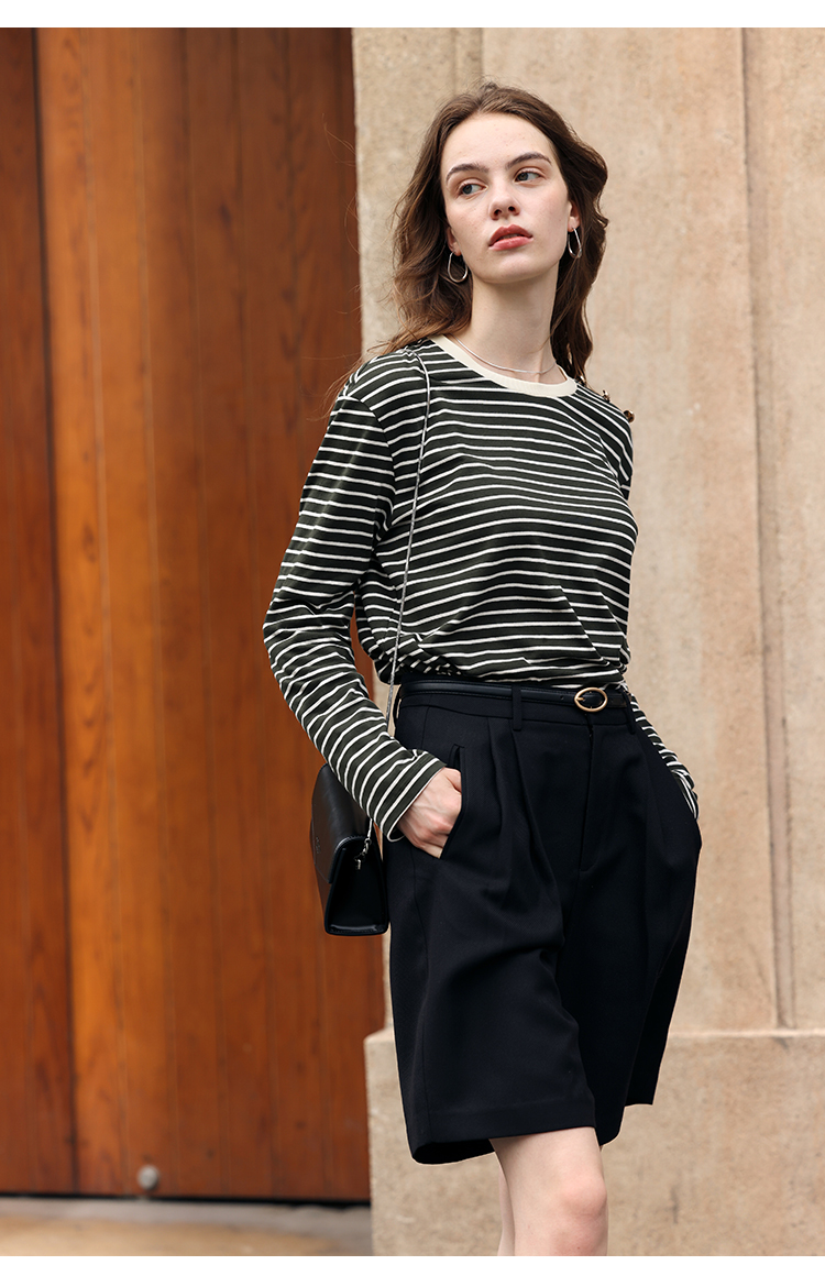 HeyDress条纹针织衫女秋季法式撞色条纹设计感长袖纯棉t恤打底衫