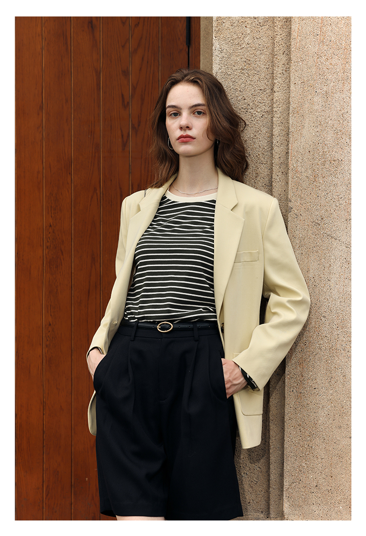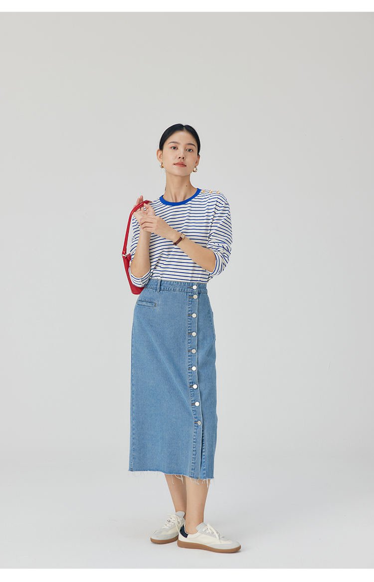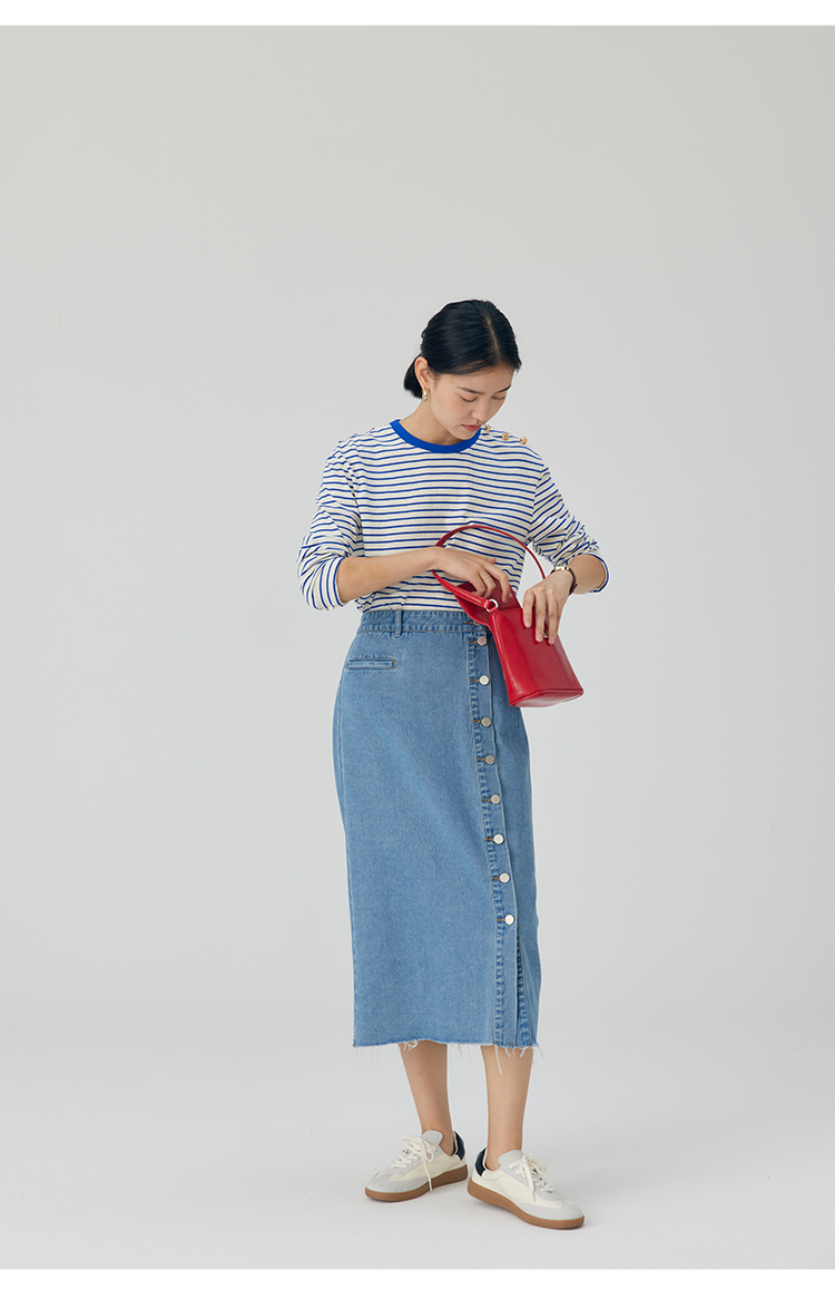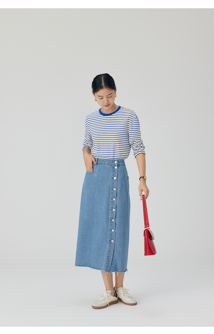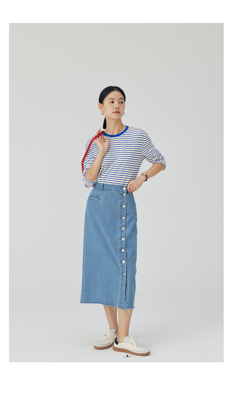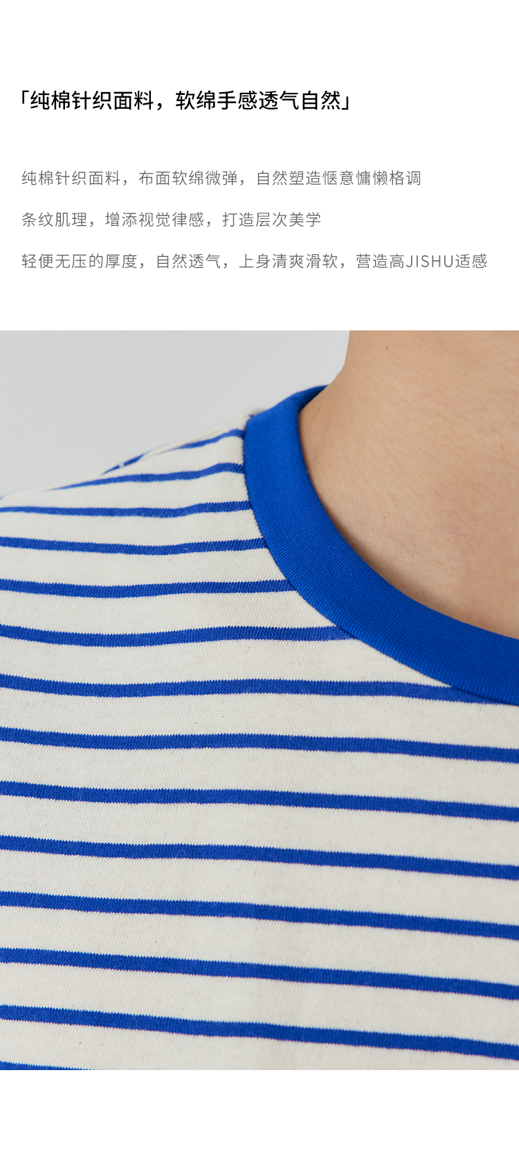 HeyDress条纹针织衫女秋季法式撞色条纹设计感长袖纯棉t恤打底衫